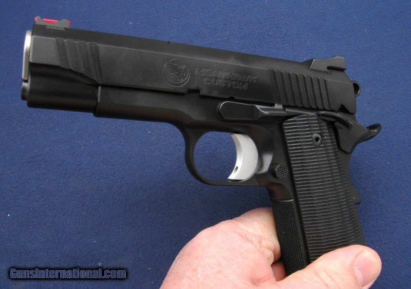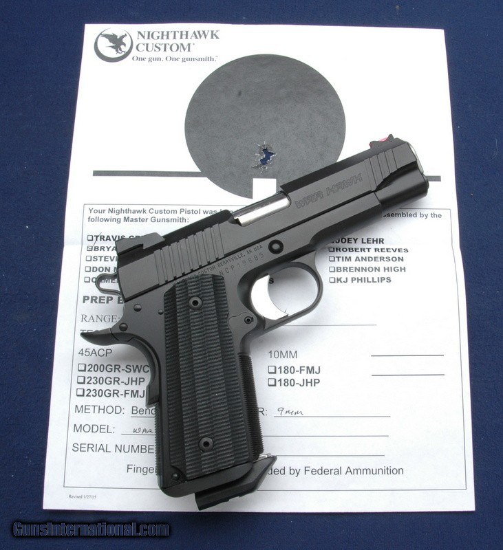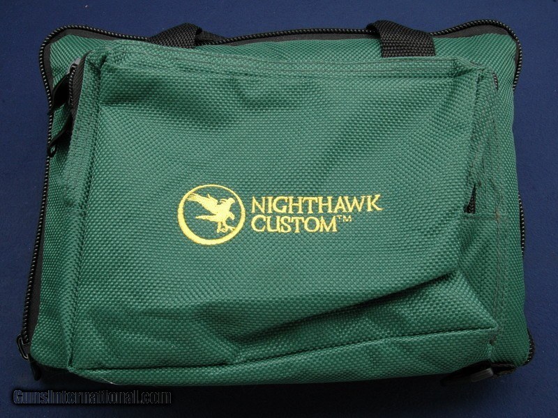 Description: This Nighthawk Warhawk 9mm has only been test fired 100 rounds by the original owner. Never carried, otherwise a safe queen. Not a mark on it, no finish wear. Comes with 3 8-rnd magazines, the original Nighthawk pouch, all papers and the factory test target. As you can see, the 15 yard test target could not be better. This is also a smoking deal- priced to sell!! Well under retail, it is a screamer. $35 shipping to the lower 48, 3% surcharge for using a CC. If you choose to pay with a personal check, we will hold the item for up to 10 days to make sure that it clears. Please expedite such pymts as we will hold an item on your word for 5 days. SOLD Handgun Caliber: 9x19mm Parabellum (9mm Luger, 9x19mm NATO) |