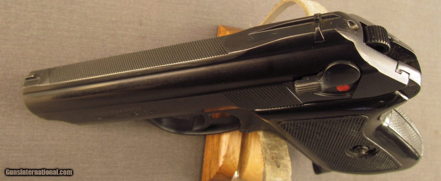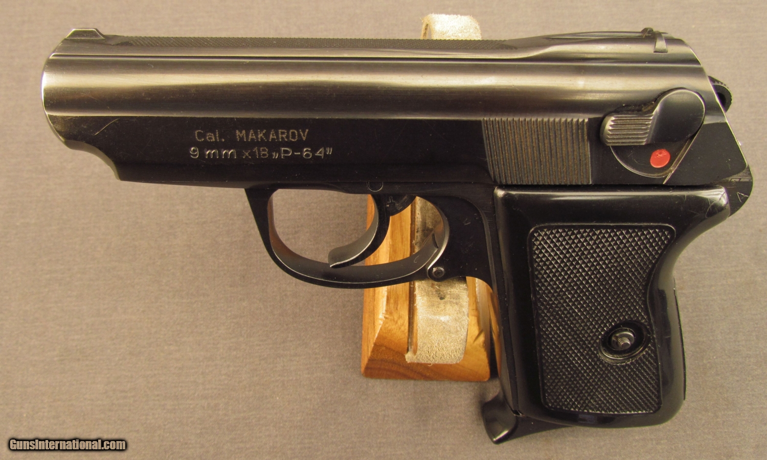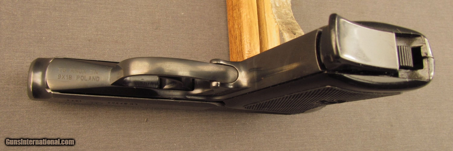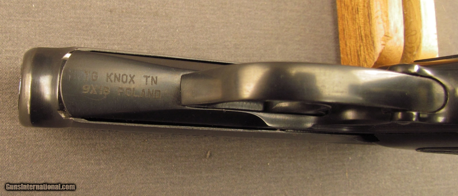 Description: Serial #LK07267, 9mm Makarov, 3 1/4” barrel with an excellent, bright bore. This is a seldom encountered, “11” marked (Radom factory code), 1972 dated pistol that also has a small and unobtrusive import mark on the underside of the frame ahead of the trigger guard. The metal retains 98-99% of the original blue finish with some very mild silvering along the high edges and at the muzzle. The checkered black resin grips are in excellent condition with only some minor handling marks and blemishes on either side. The pistol comes with a single original finger-rest magazine and is an excellent example of a very well-made, Cold War era, Eastern Bloc service pistol. FFL SOLD Manufacturer: Polish Model: P-64 Serial Number: LK07267 Caliber Info: 9mm Gauge Info: 9mm |