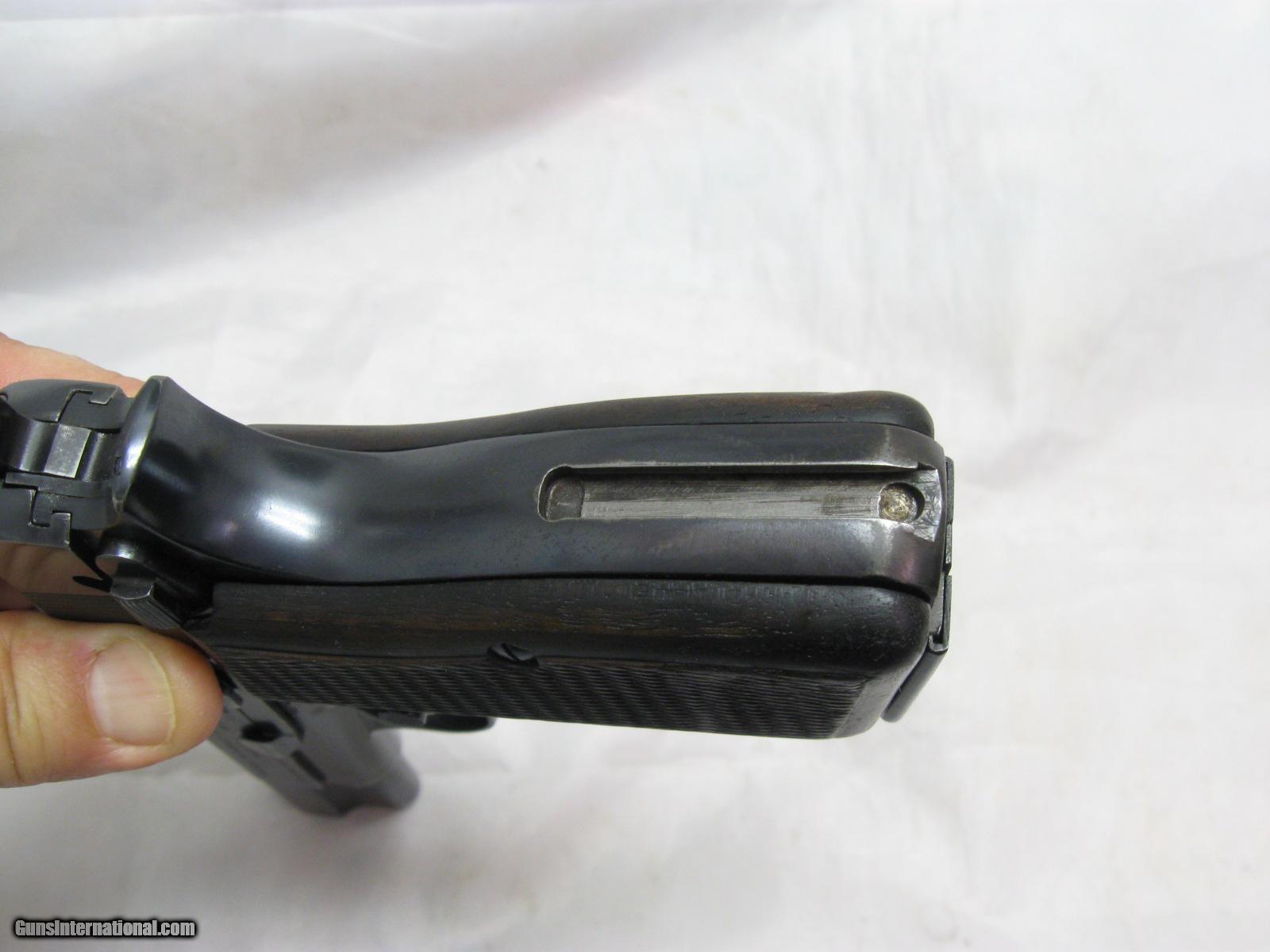 Description: This is a very early Belgian Army High-Power pistol, made around 1936-1937 at the FN factory and chambered in 9mm Para. It retains about 97% of its original beautiful pre-war blueing, with just some minimal holster wear as per pictures. It is all matching, including the frame, slide and the barrel. Very good bore with strong rifling and light frosting in the grooves. Original grip panels, in excellent condition, with original red paint on the inside. Original Belgian pre-war magazine with green phosphated body and a split tail floor plate. Profusely marked with Belgian Army proofs and acceptance marks. It also has a rarely seen tangent rear sight, that was present on pre-war belgian pistols. Only under 45000 of these guns were made before the factory was overrun by the advancing german forces in 1940. These pistols were based on John Browning design, but had a high capacity double stack magazine that held 13 rounds. It was a sidearm of choice for front line German troops throughout the WWII. No import marks. As I had not fired this gun, a thorough gunsmith inspection is recommended before firing. 3-day inspection. All applicable laws would be followed. FFL or C&R required, except in states, municipalities and other localities, where a full 01FFL is required for transfer( NJ is one example). No sales to states that prohibit high-capacity magazines(CA, NY and others),unless you have a special high-capacity permit from your state. If you are not sure - please, contact me. No sales to Chicago, NY City. Please, make sure that your dealer will accept the gun from a C&R licensed individual. I will pay 1/2 of UPS NEXT DAY AIR charges in CONUS. Buyer is responsible for the other half and the insurance. SOLD Curio/Relic: Yes |