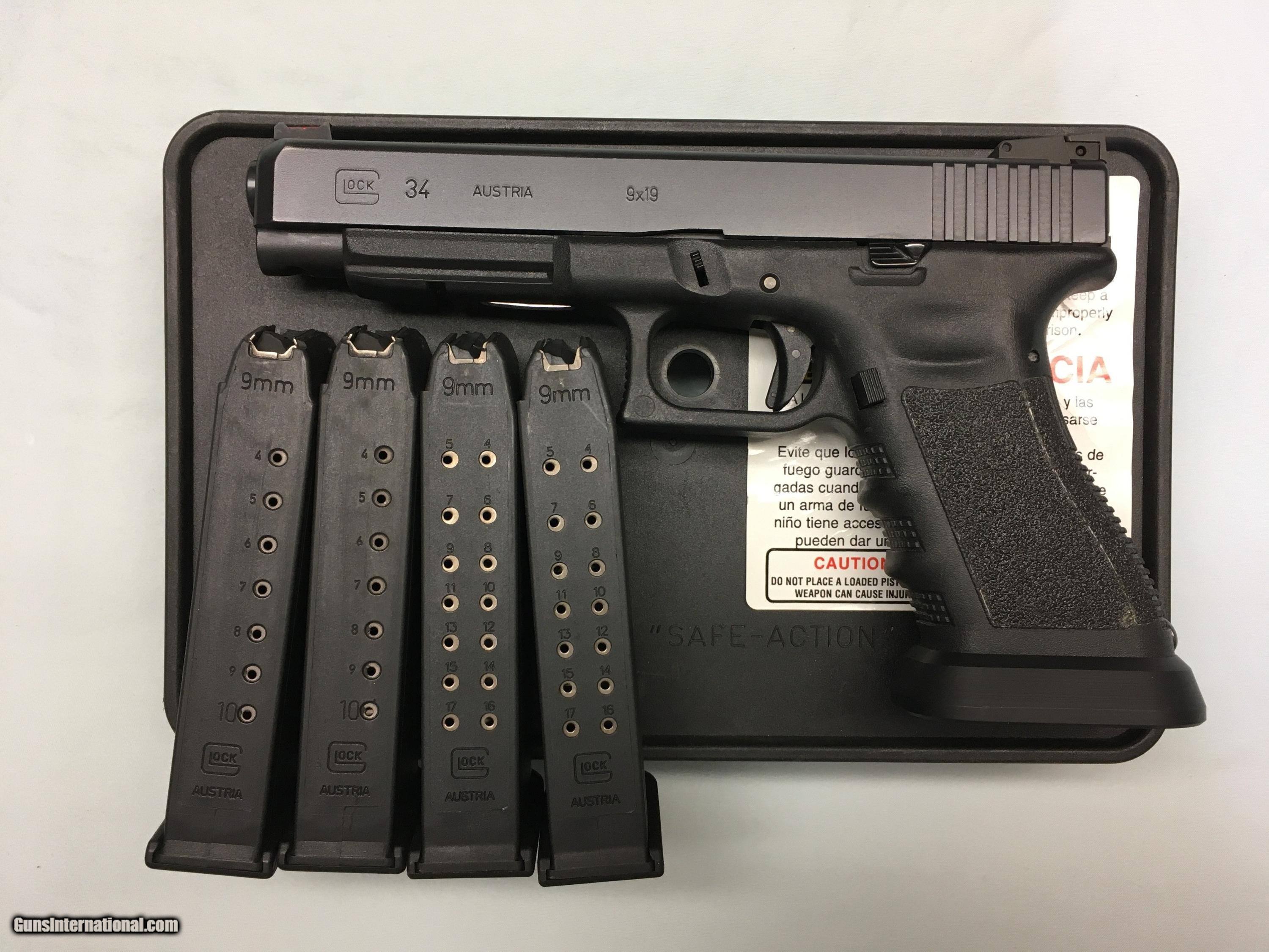 Description: Glock 34 with mutiple upgrades suitible for many action pistol events such as USPSA, IDPA, 3gun and Steel Challenge in excellent condition. This is a Gen 3 model with low round count. Upgrades include Dawson Precision adjustable rear and fiber optic front sight, mag well, and two 17 round high cap and two 10 round mags. Free shipping to your FFL. SOLD Handgun Caliber: 9x19mm Parabellum (9mm Luger, 9x19mm NATO) Manufacturer: Glock Model: G34 Condition: excellent |