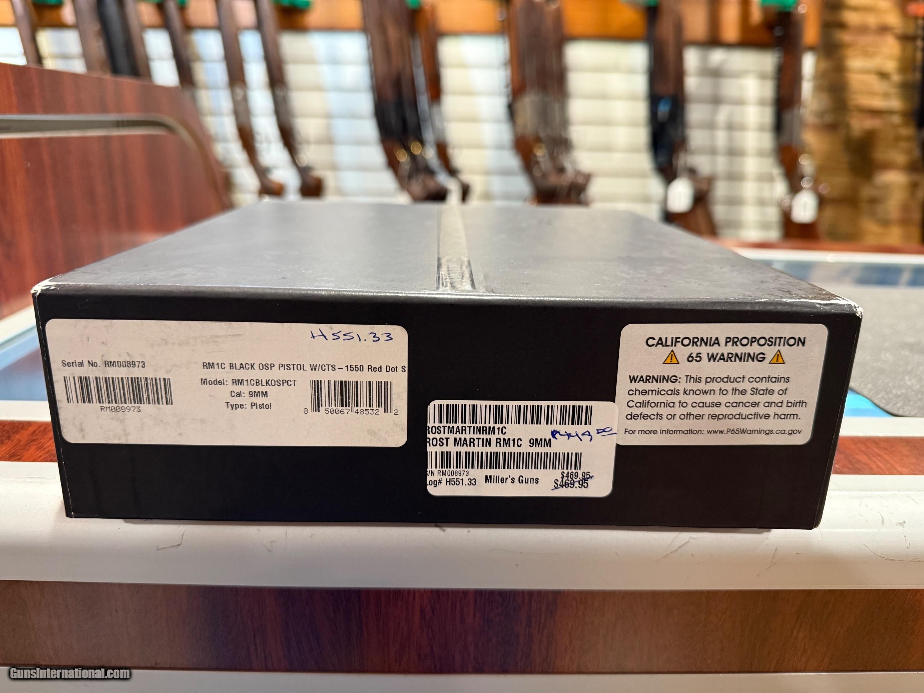 Description: Rost Martin RM1C 9mm (1)17 round and (1)15 round magazine included CTS-1550 optic included Handgun Caliber: 9x19mm Parabellum (9mm Luger, 9x19mm NATO) Manufacturer: Rost Martin Model: RM1C Serial Number: RM008973 Barrel Length: 4” Condition: NEW Price: $449.00 Contact Seller |