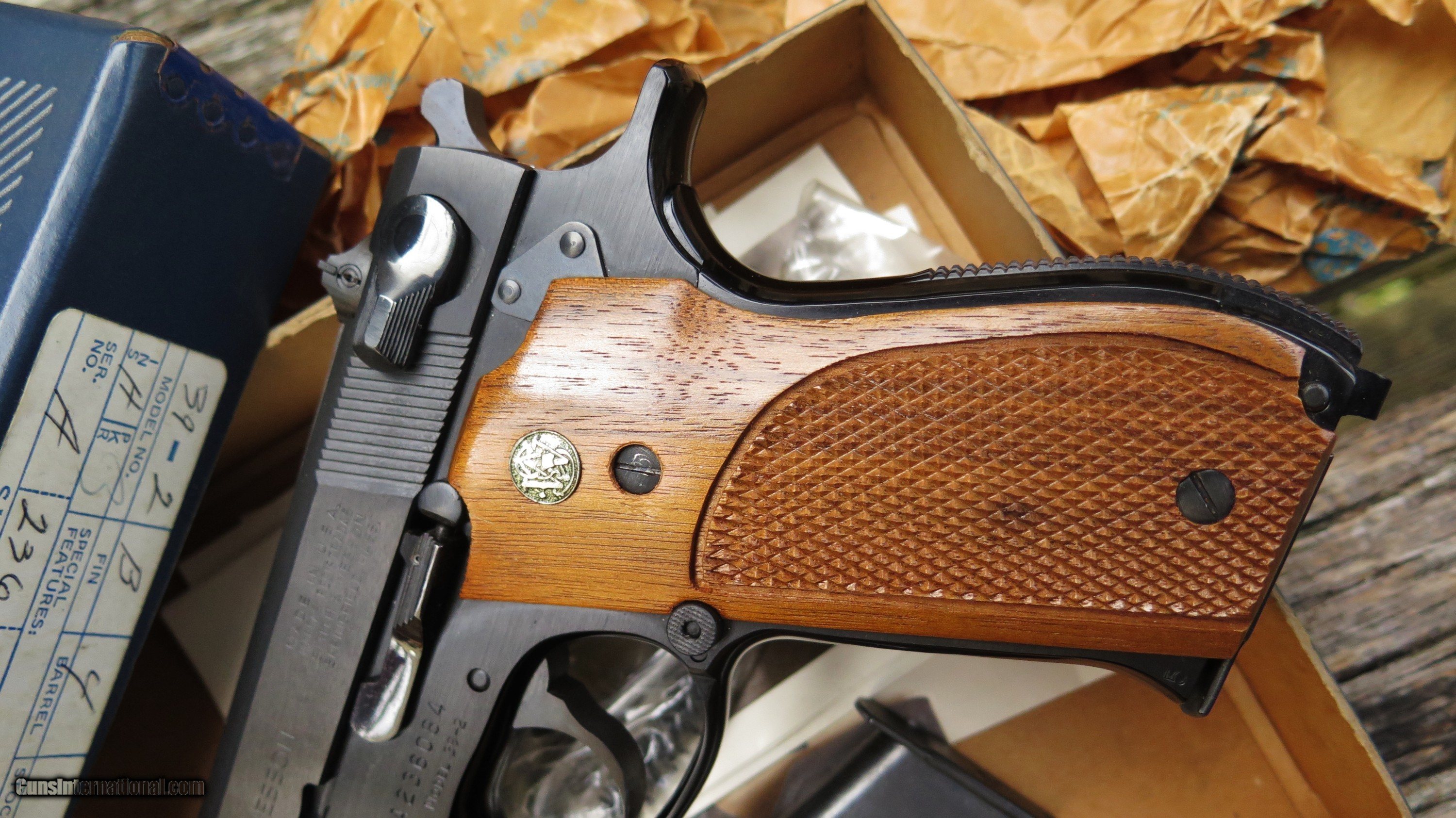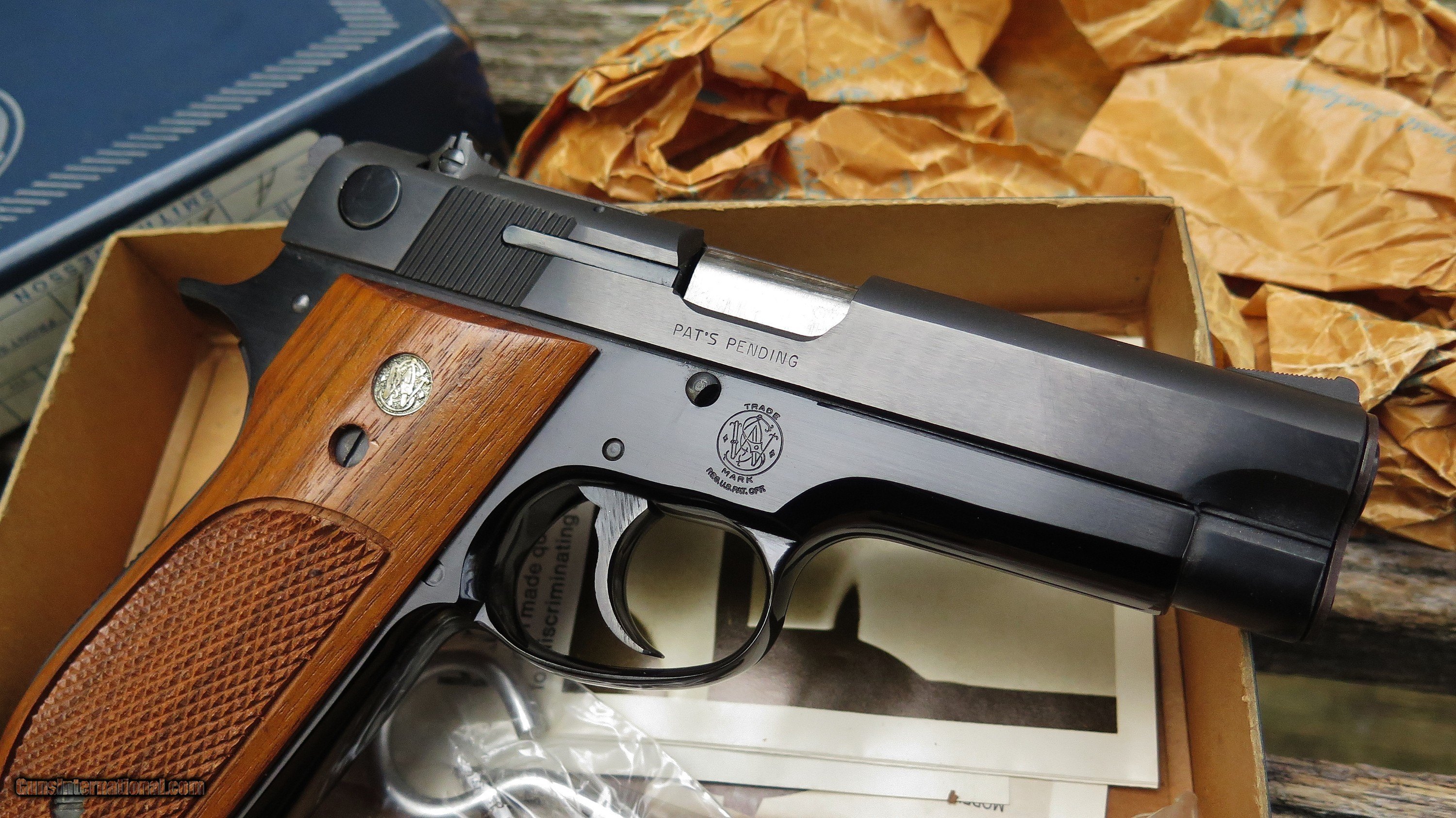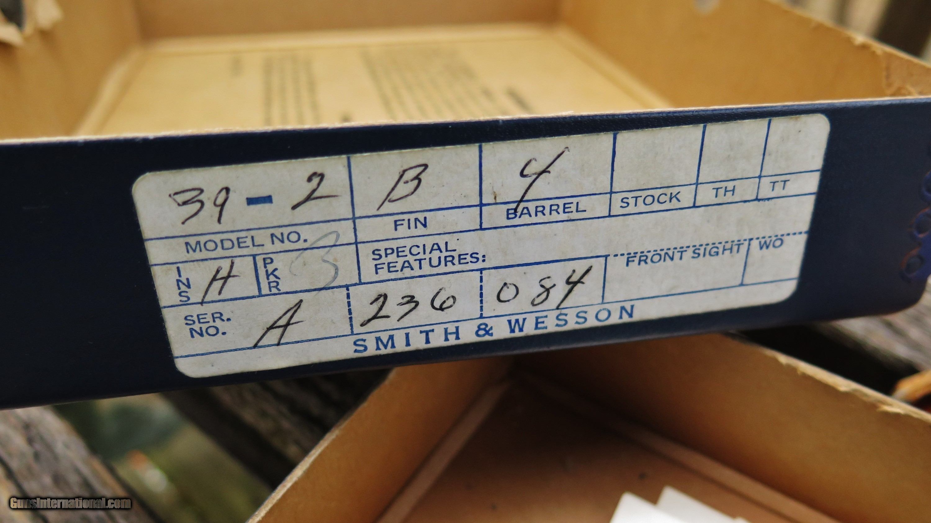Description: This is a S&W Model 39-2 9mm Semi-auto pistol that is New in Box and unfired since factory test fire. Comes in it's original box numbered to the gun. Also has the tools and extra magazine and some papers. The gun and box are original and mint. Just ouf of a local collection. Made back in 1974. Guaranteed to make you very happy. I am Oregon Lumberjack here and on the other big site with 1000's of positive feedbacks. I am a FFL dealer for over 35 years in Connecticut. Shipping is $25 to your dealer. SOLD |