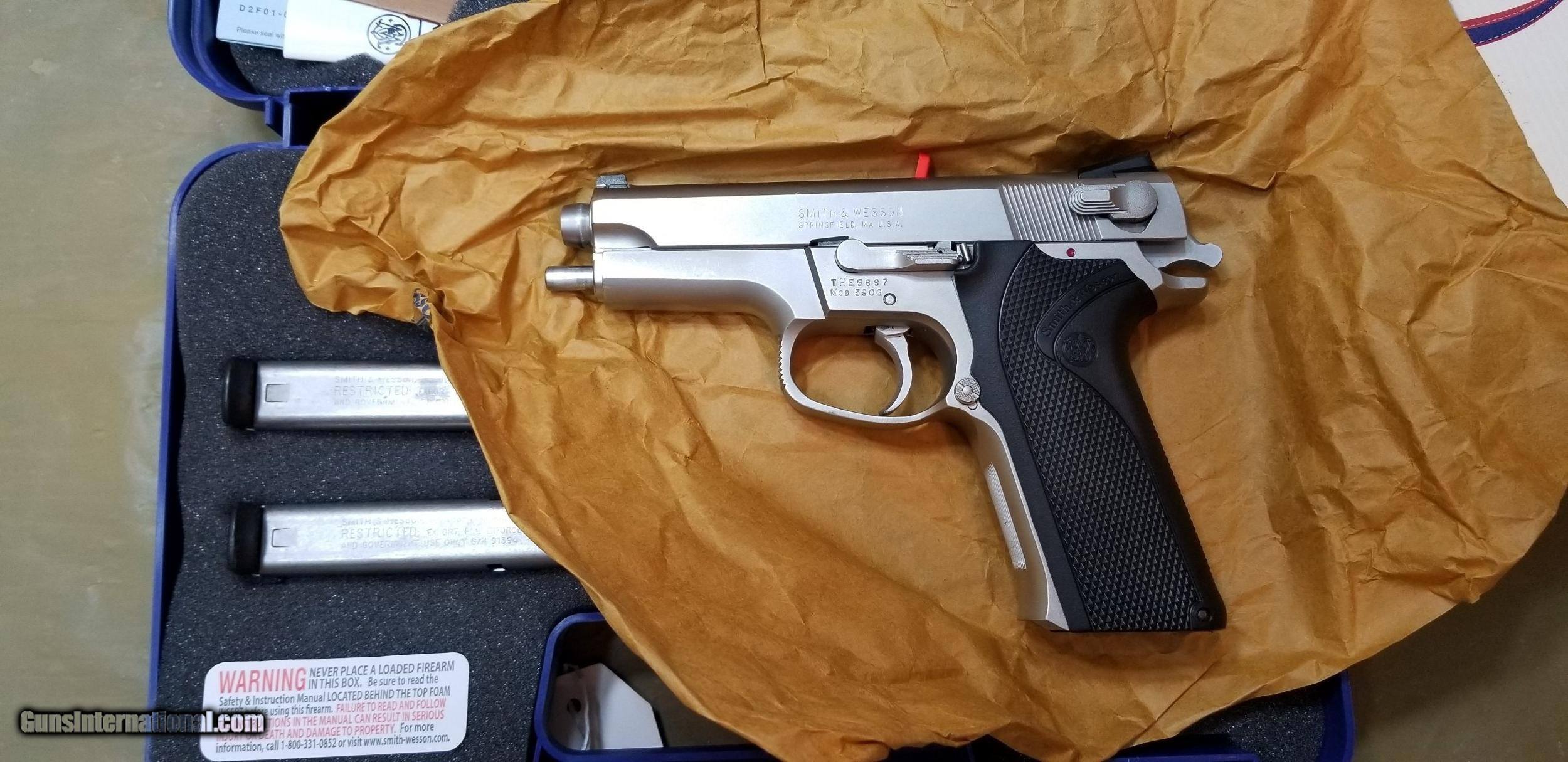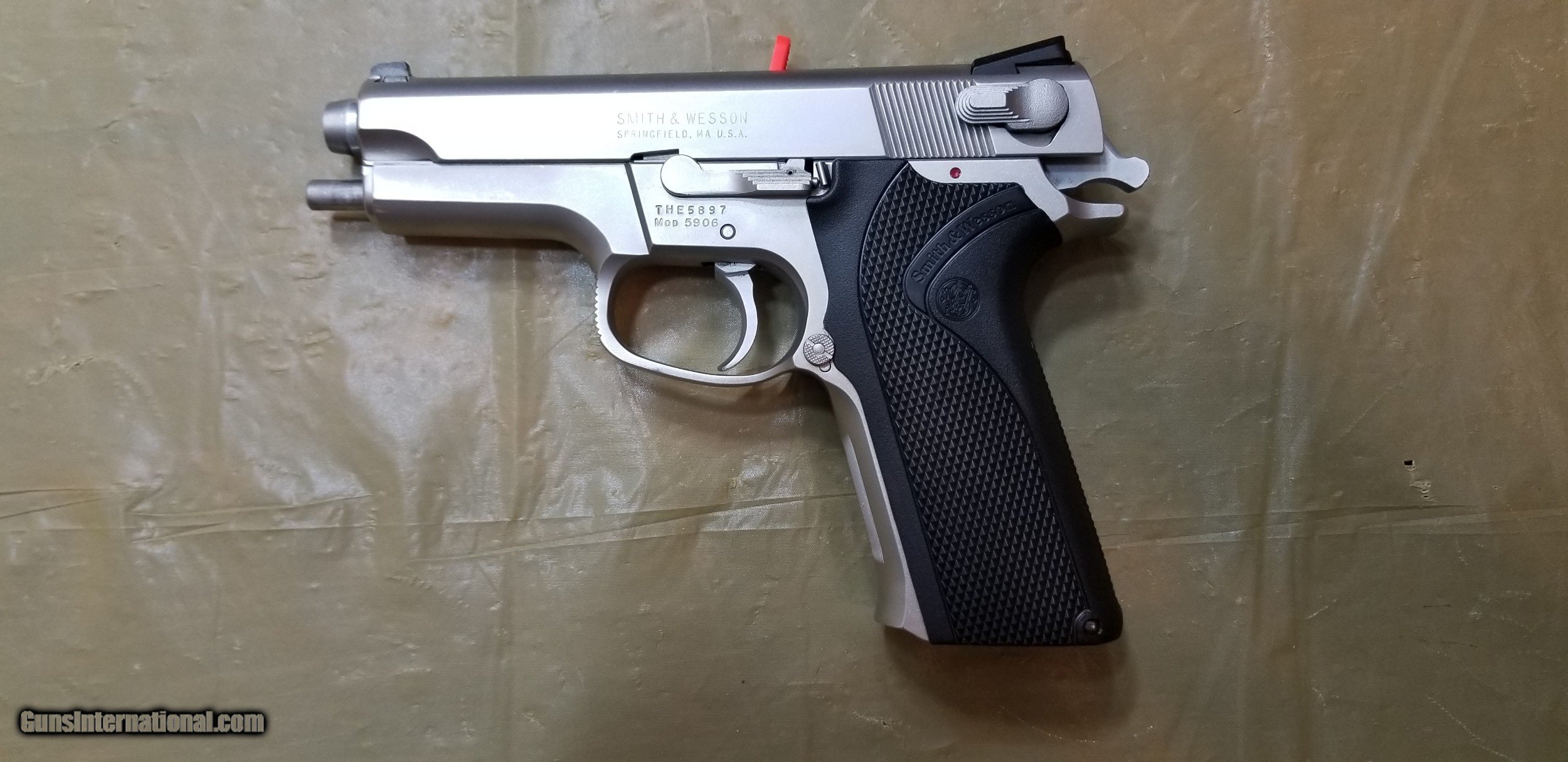 Description: S&W 5906 WITH BOX, PAPERS AND TWO HIGH CAP FACTORY MAGAZINES SOLD Handgun Caliber: 9x19mm Parabellum (9mm Luger, 9x19mm NATO) Manufacturer: SMITH& WESSON Model: 5906 Barrel Length: 4 |