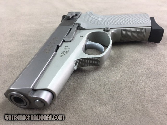Description: This Model 3913 looks about new. It has been fired a little but you would never know from a thorough examination of the pistol itself. A wonderful concealed carry pistol and one of the best ones S&W ever made. Complete with original factory stainless magazine. SOLD |