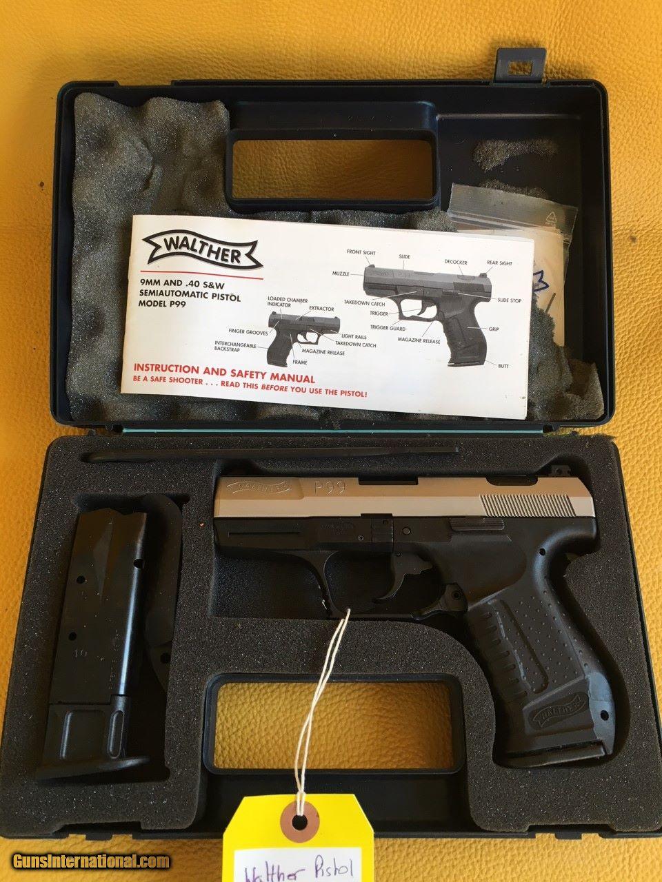 Description: Sale pending!!! #017739 Walther P99 Sil 9mm NIB. Made in 1999 a new unfired pistol in box ( top foam is coming apart) with papers and parts. SOLD |