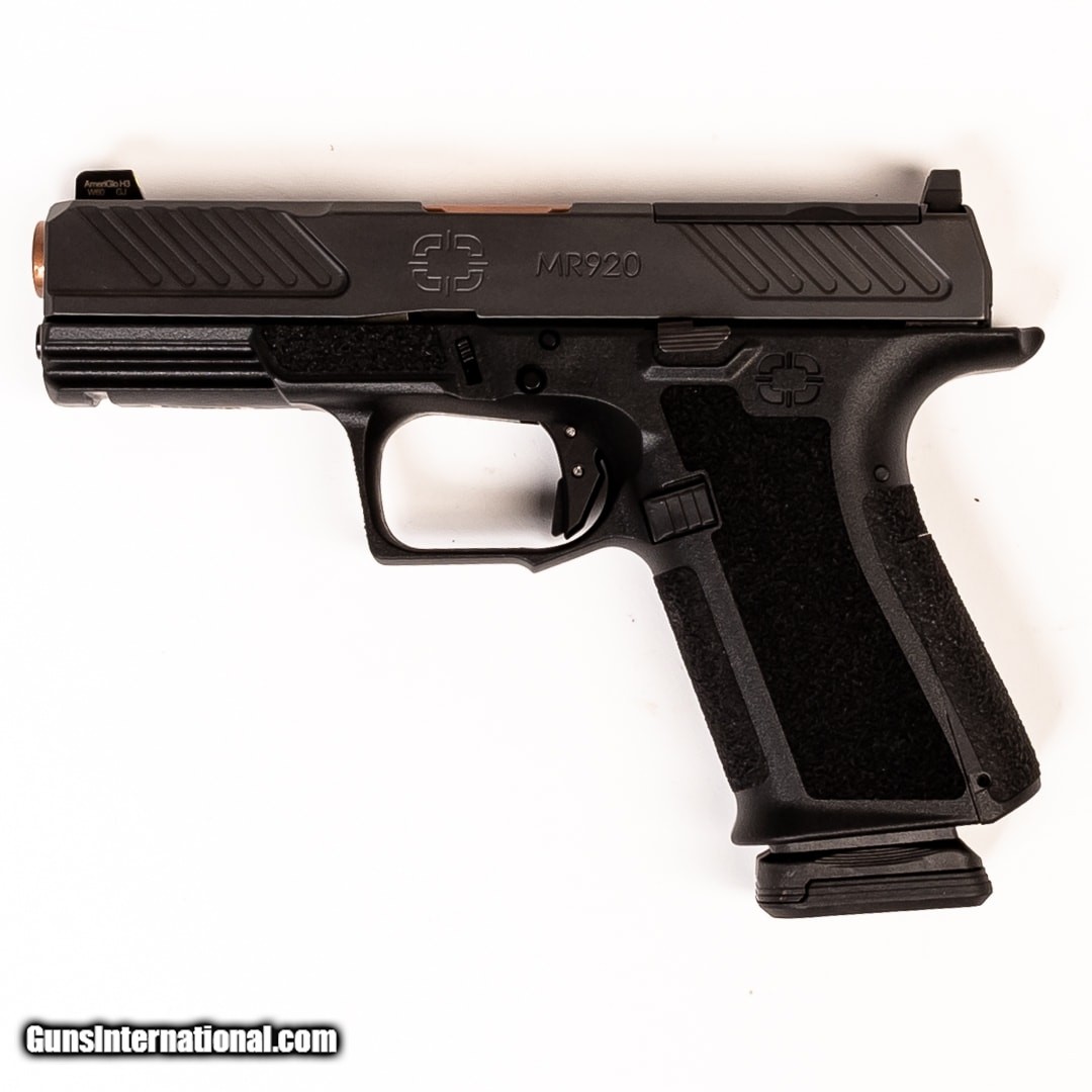 Description: Guns Listing ID: 463516 A lightweight and low recoil semi-automatic pistol, the Shadow Systems MR920 Elite sports a patent-pending optic mounting system. The redesigned internal slide components allow for the strongest, deepest screw placement and direct mounting of multiple optics brands. The ultra-low optic placement permits co-witness with most optics. This MR920 Elite includes the original soft case, manual, five 15-round magazines, three sizes of backstraps, mag well, and optics screw kit. SOLD Manufacturer: SHADOW SYSTEMS Model: MR920 ELITE Caliber Info: 9MM LUGER Condition: Used - Certified Barrels: 4 BARREL Finish: BLACK AND BRONZE |