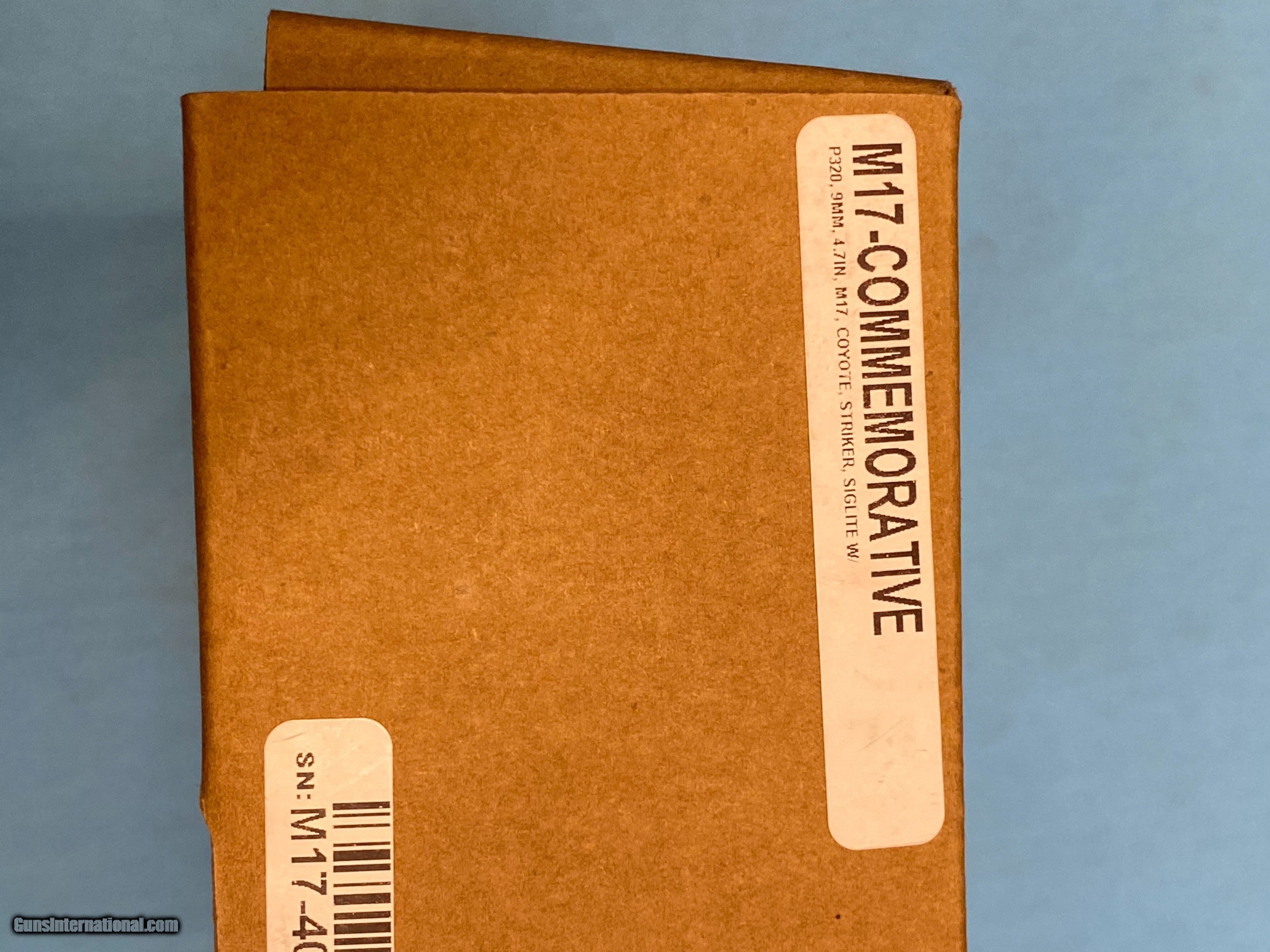 Description: Gorgeous brand new NIB SIG SAUER M17 Commemorative includes original box Factory custom glass case commemorative coin specific to gun #4036 this gun is 1 of 5000 made all 3 magazines (2 extended) This set was a not easy to create, it's a process getting the pieces together from sig sauer. You will be very happy when this bad boy is in your collection! SOLD Manufacturer: Sig sauer Model: M17 commemorative Serial Number: M17-4036 Condition: Nib Metal Condition: Nib |