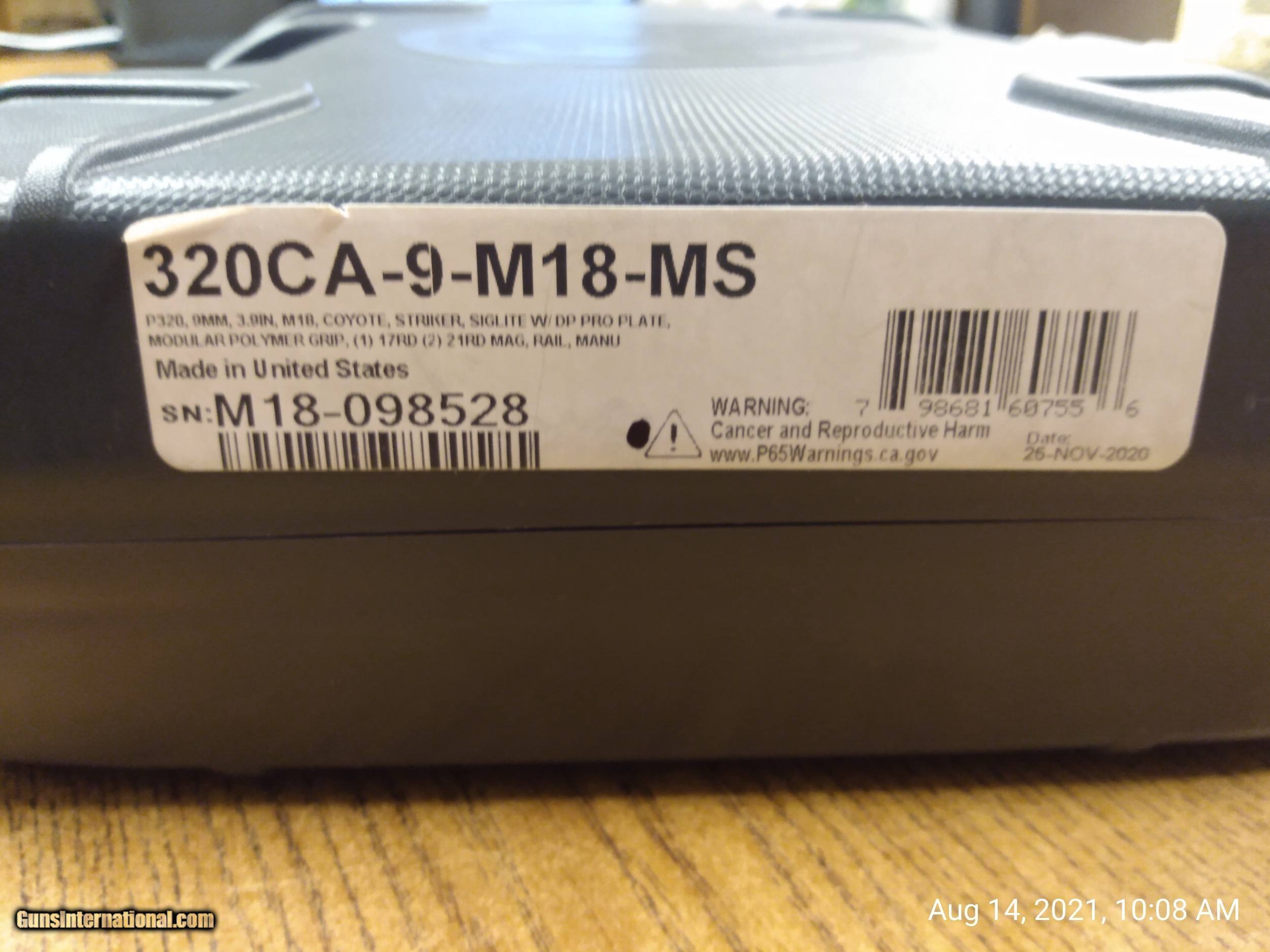 Description: Sig Sauer, M18, Model 320, 9mm, three magazines (21,21,17), original box but no instructions, great condition, contact David for more details and photos Shipping: 30.00 Credit card 2% surcharge if used SOLD Handgun Caliber: 9x19mm Parabellum (9mm Luger, 9x19mm NATO) Manufacturer: Sig Sauer Model: M18 320 Barrel Length: 3.9 Condition: Great Manufacture Date: 26 NOV 2020 |
