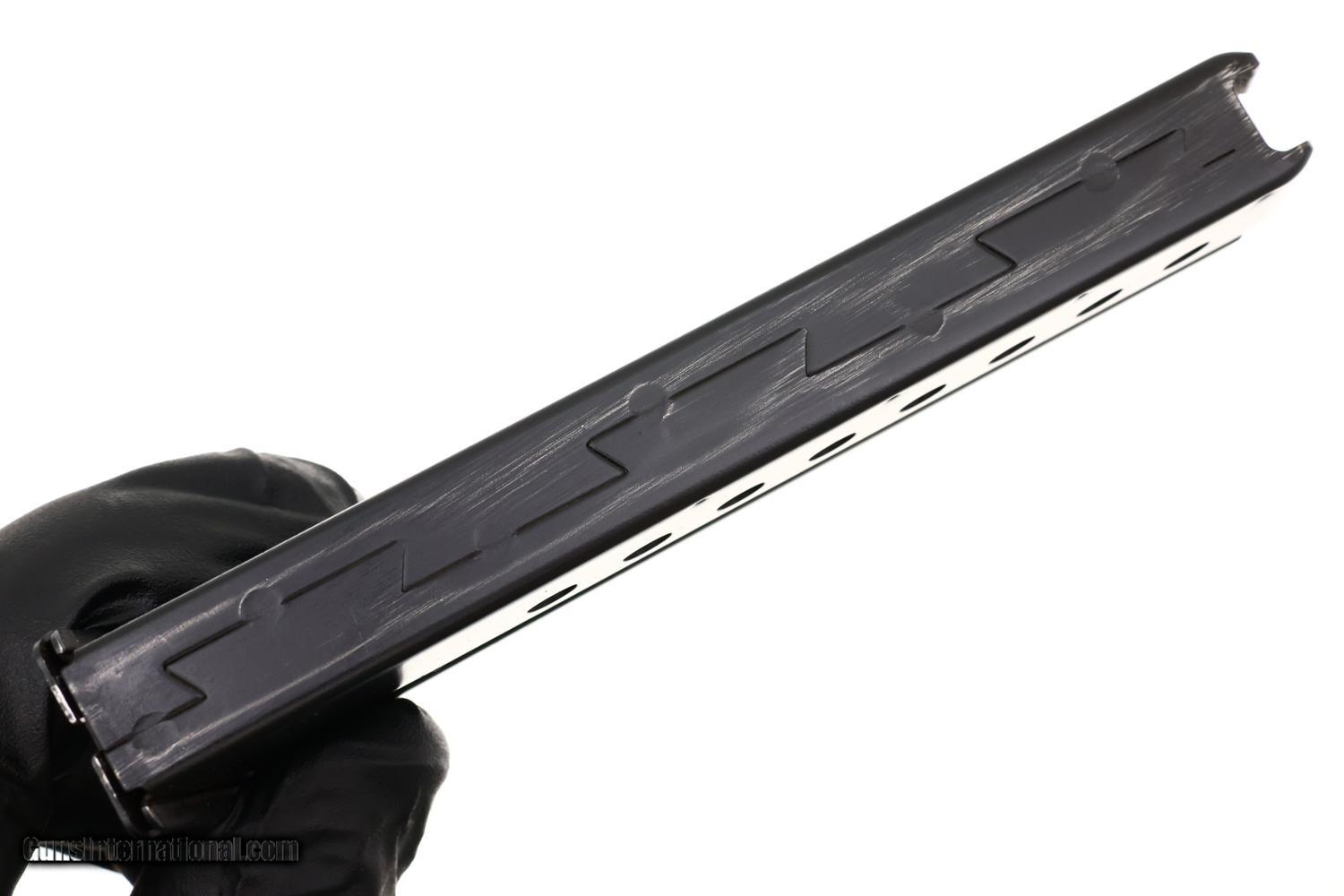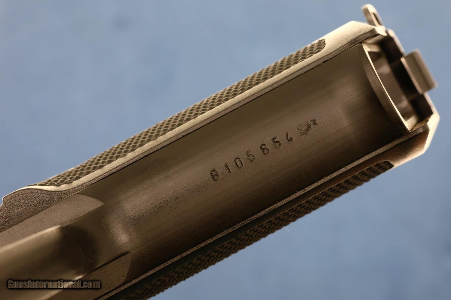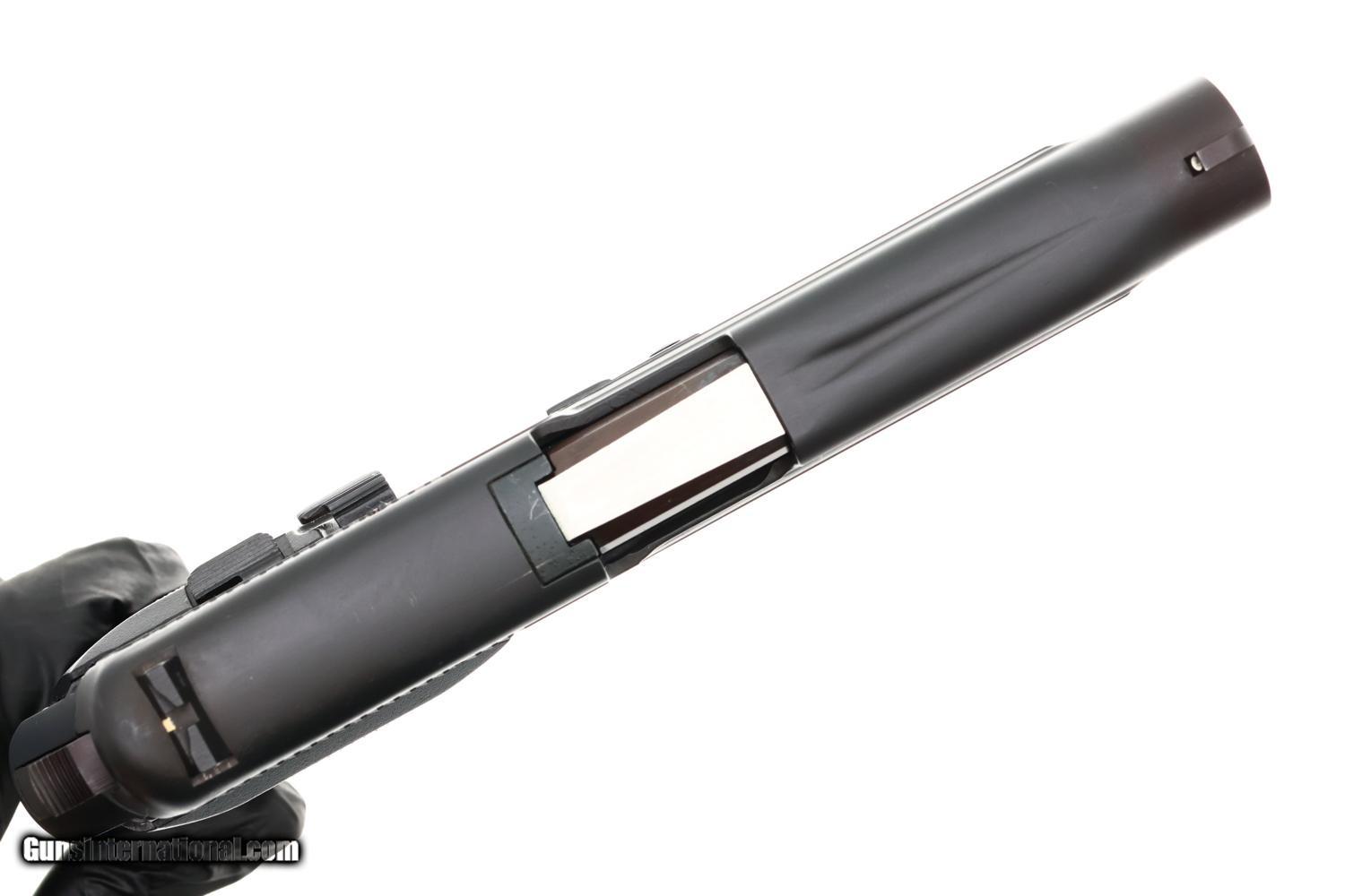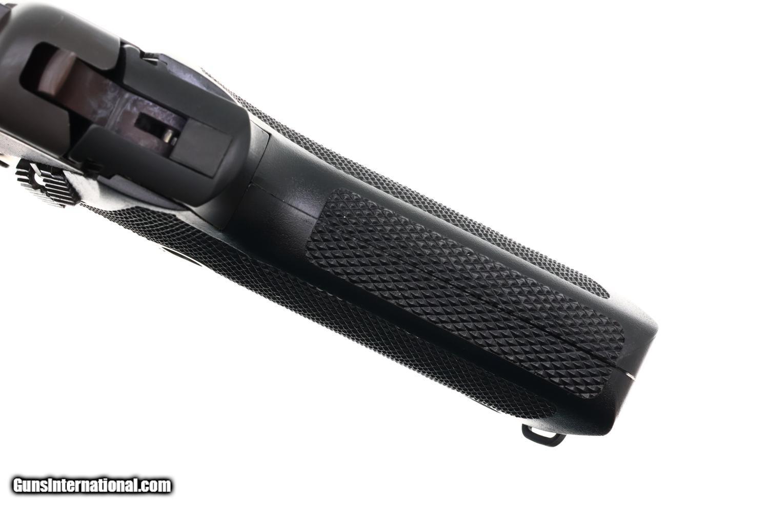 The pistol presents as virtually new. There is no sharp edge wear or areas of thinning. The few marks on the barrel hood reflect normal safety checks. Comparable condition grips, screws, magazine, and instruction booklet. Mirror bore. Correct manual mechanics. The box shell is near excellent, the gray foam liner, crumbling/disintegrating after so many years, has been removed. If you are a serious Sig Sauer pistol collector, this early example would be nearly impossible to upgrade!