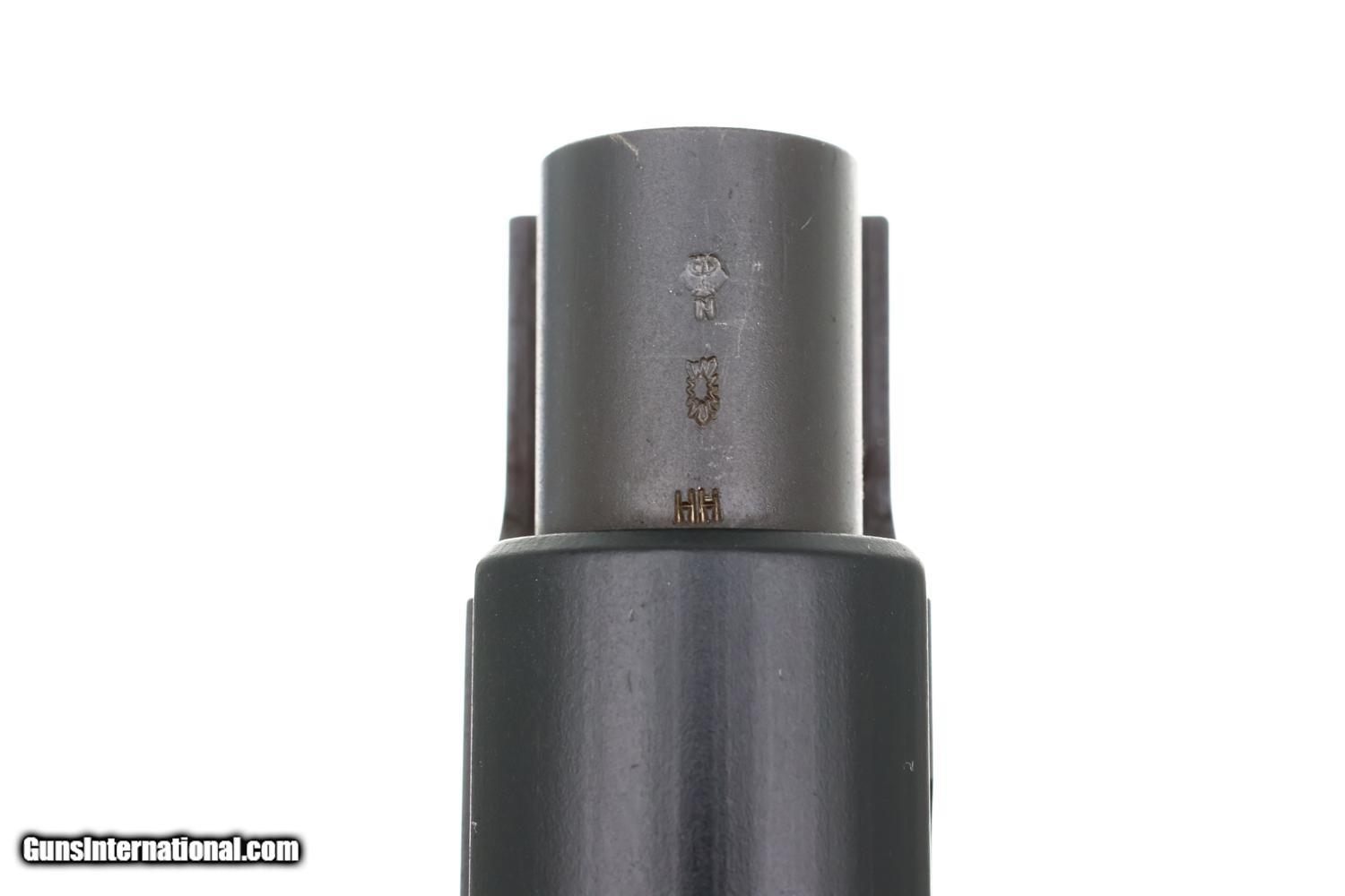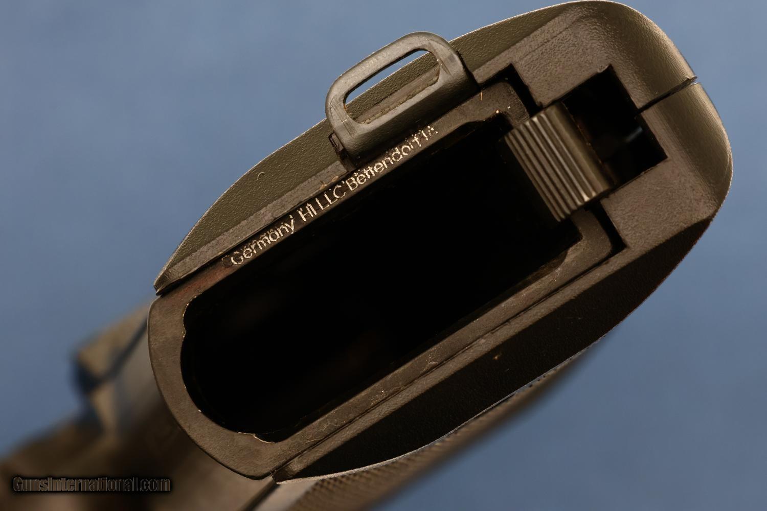 Description: Synopsis: Virtually New SIG Sauer P220, earliest variation 9mmP with folded slide and bottom magazine release, in matching blue box with multi-language instruction booklet. If you collect SIG Sauer pistols, it doesn't get much better! Description: Standard configuration SIG SAUER P220 SA/DA semi-automatic pistol designed in 1975 as a replacement for the SIG P210, cal. 9mmP with 4.4-inch barrel, SN: G105654, with black finish. Fixed front sight and drift adjustable rear sight with white highlights. Left side of slide marked "SIG SAUER". "9mm Para" on chamber of barrel. The right side of the slide is marked with the serial number "G105654" followed by model designation "P220". Frame serial number G105654 is repeated in the grip area. Fitted with black checkered grips. Unmarked magazine with 8 cartridge indicator holes and zippered spine. Complete with original blue cardboard shipping box with matching end label sticker along with instruction manual. The P220 was produced through a partnership between SIG and J.P. Sauer & Sohn of Germany and was the first SIG Sauer handgun sold in the United States, initially marketed by Browning as the Browning BDA. Condition: The pistol presents as virtually new. There is no sharp edge wear or areas of thinning. The few marks on the barrel hood reflect normal safety checks. Comparable condition grips, screws, magazine, and instruction booklet. Mirror bore. Correct manual mechanics. The box shell is near excellent, the gray foam liner, crumbling/disintegrating after so many years, has been removed. If you are a serious Sig Sauer pistol collector, this early example would be nearly impossible to upgrade! Manufacturer: SIG Sauer Model: P220 Serial Number: G105654 Caliber Info: 9mm Condition: As NIB Price: $1,795.00 Contact Seller |
