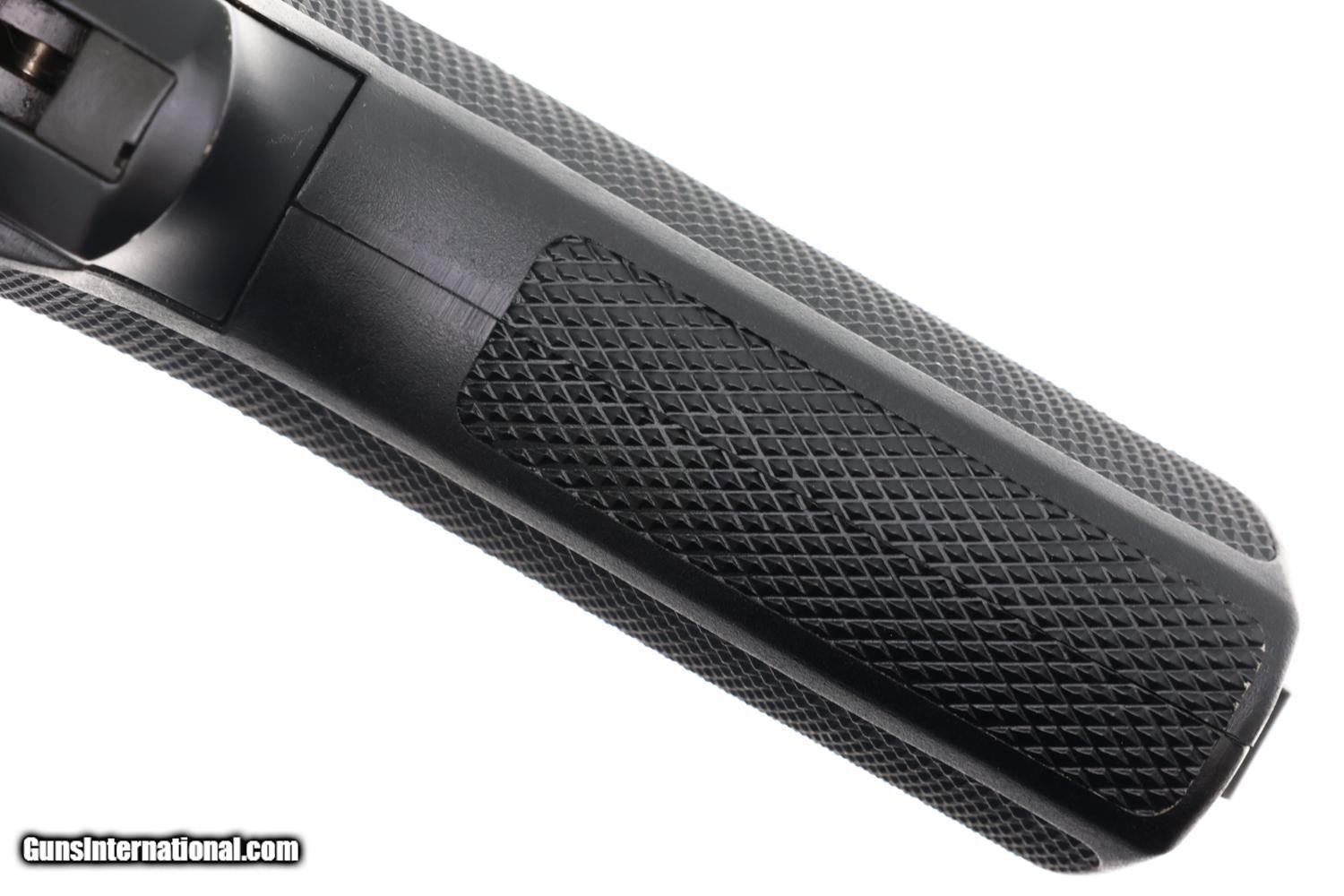EXC+, easily 98% original blue. Light holster wear on slide and sharp edges in expected location. Comparable condition grips. Near excellent magazine. Mirror bore. Perfect manual mechanics. Near EXC holster. A very high condition Aargau police pistol, with traditional bottom magazine release and SIG-marked holster, that would be difficult to upgrade.