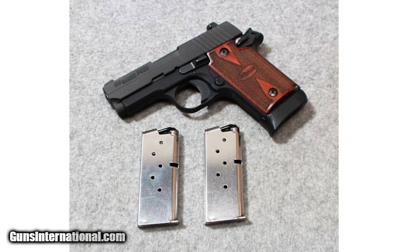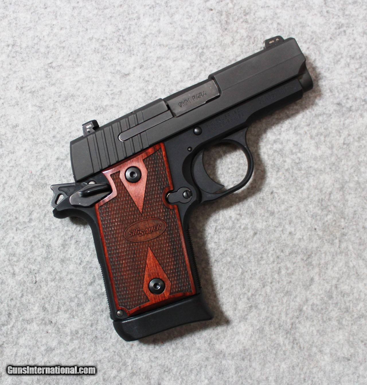 Description: Sig Sauer P938 single action, semiautomatic pistol chambered in 9mm Luger. It has a 3" barrel, with rear slide serrations. The sights are fixed 3-dot, and the safety is ambidextrous. The factory double diamond, wood grip panels have the Sig Sauer logo on each side. Includes one 7-round magazine, and two 6-round magazines. Free shipping to any Bass Pro Shops or Cabela's store. 9mm Luger Metal Condition: Very Good Wood Condition: Very Good Bore Condition: Bright and Clear Barrels: 3 inch Triggers: Single Action Weight: 17 oz Sights: Fixed 3-Dot Item Location: Allen, TX Price: $499.99 Contact Seller |