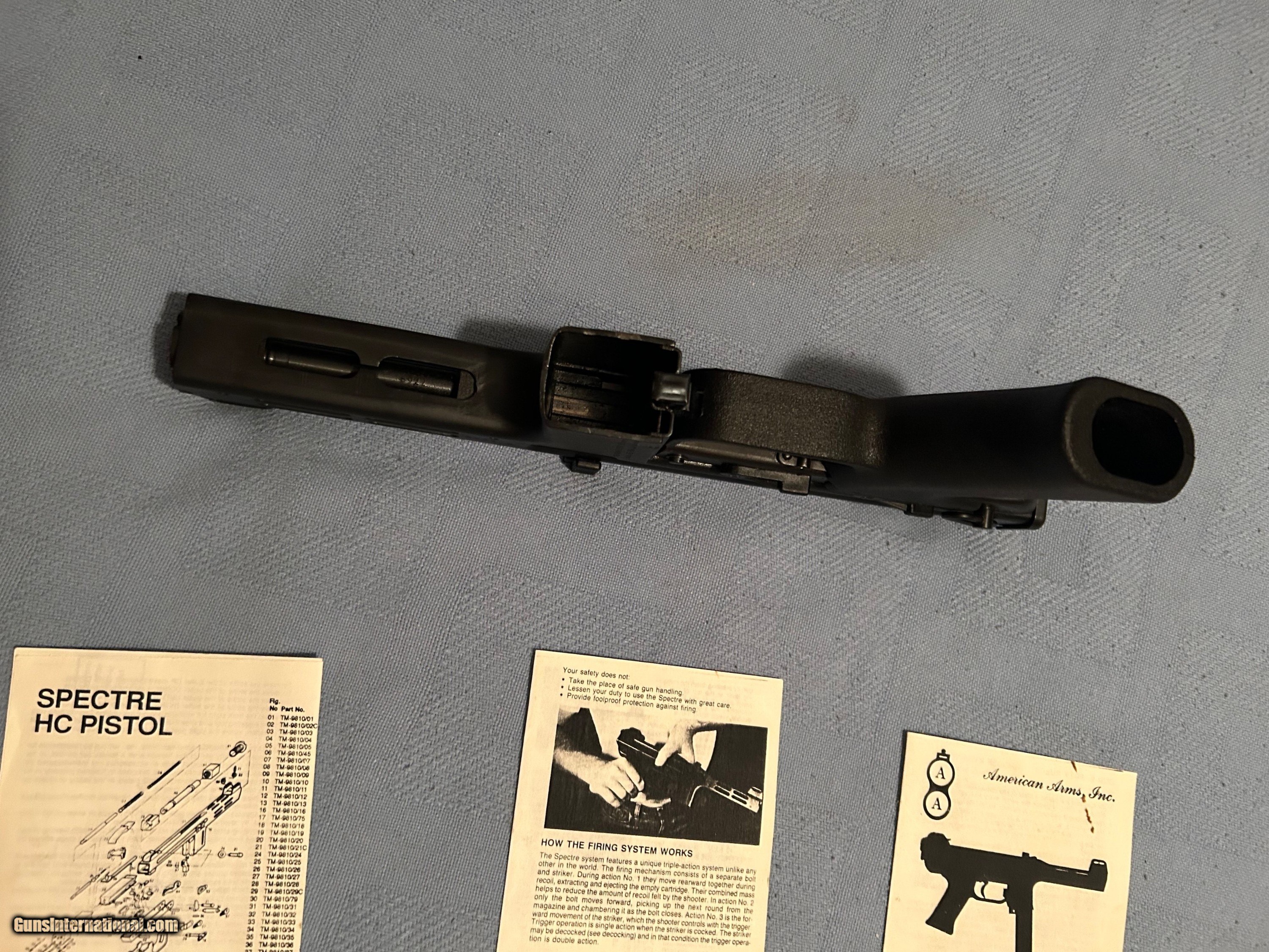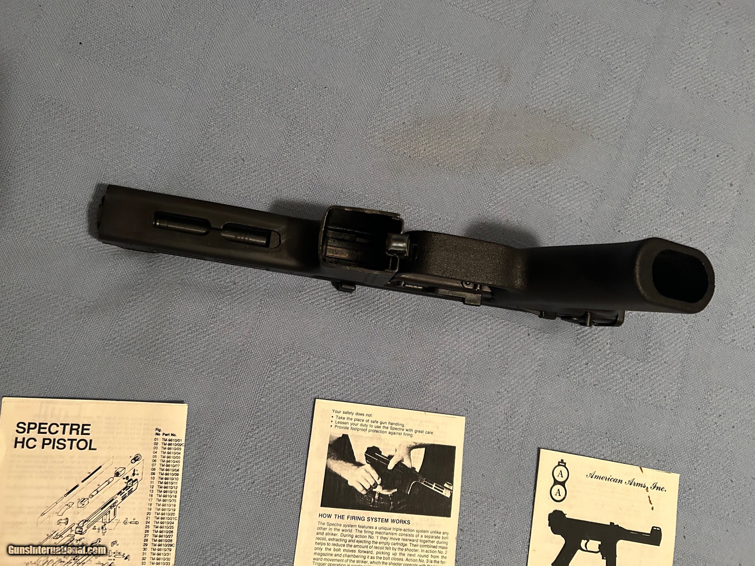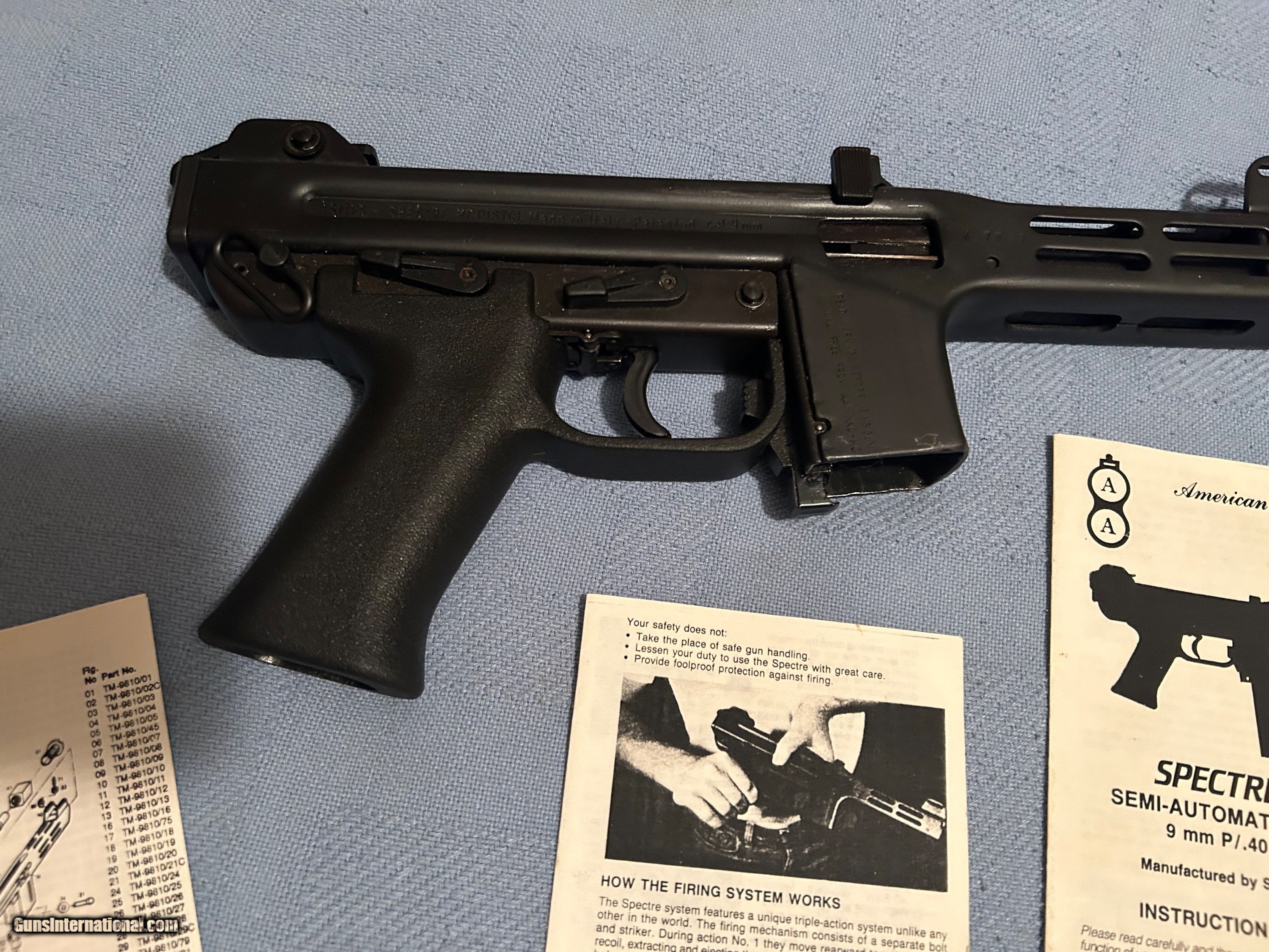 Description: Item listed is one 9mm Sites Spectre minus a magazine . Original box included. Excellent overall condition Fully functional (magazine mlssing but may adopt a magazine from another firearm so I have read on a gun forum) No info. To my knowledge. Is sold as a pistol. No accessories included. Price -$1000.00 email me at fredcamronyahoo.co USPS money order only accepted must be USPS verified before item ships SOLD Rifle Caliber: 9x19mm Parabellum (9mm Luger, 9x19mm NATO) Manufacturer: Sites Model: Spectre Bore: excellent Chambers: ecellent Ejectors: excellent Condition: Excellent Metal Condition: excellent Bore Condition: excellent Finish: very good to excellent some wear showing on bolt cocking surface. Sights: Factory Iron Sights Case: Original box included shows storage wear |