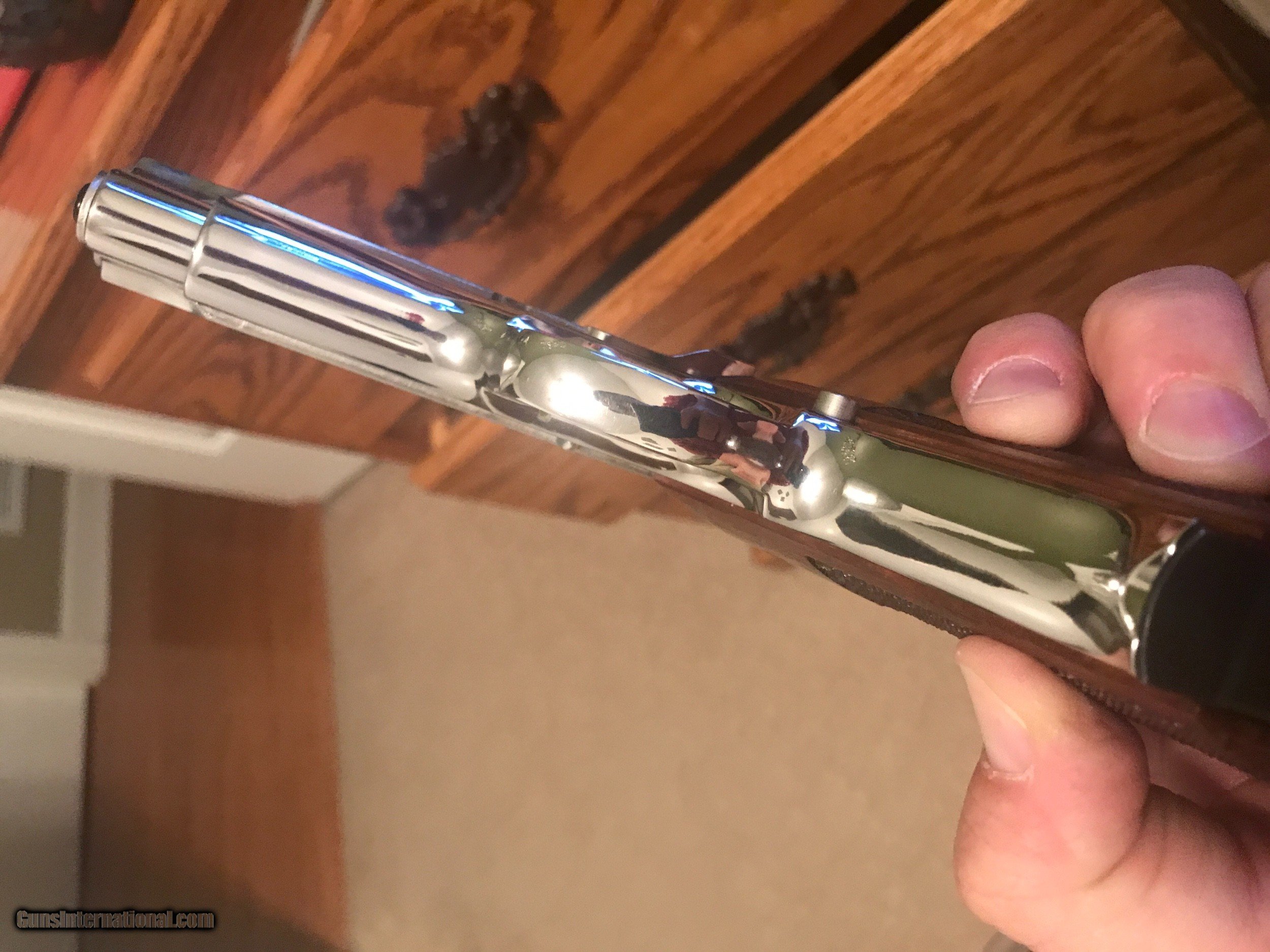 Description: This is one of the most beautiful guns smith ever made. This 9mm features nickel finish, walnut grips, tools, paperwork, and original silver box. Also has an extra magazine. Lightweight frame. Target sights. Double action, safety, and feels great. A great addition to your collection or a fine shooter. Please email with questions. Price includes shipping. SOLD Manufacturer: Smith and Wesson Model: 39-2 Caliber Info: 9mm Condition: Used Metal Condition: Excellent Wood Condition: Excellent Bore Condition: Shiny Action: Double Finish: Nickel Sights: Target Item Location: 37075 |