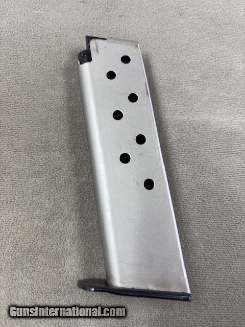 Description: This 39-2 is in excellent condition with a perfect bore and chamber. However, someone has removed all the finish on the slide and slide stop (looks like they used Naval Jelly), an so the gun needs some refinish work. If I were going to keep it I think I would have the slide and slide stop hard chromed as it would make a handsome 2 tone gun. Mazazine has already been refinished and looks like a million dollars (see photo). Or, just use it as is as a "truck gun". The 39-2 was the first double/single action semi auto commercially available in the US after world war II. The first military one was the German P38. The 39 S&W is my favorite carry gun (I just do not need 17 rounds to get the job done). Curio/Relic: Yes Handgun Caliber: 9x19mm Parabellum (9mm Luger, 9x19mm NATO) Price: $450.00 Contact Seller |