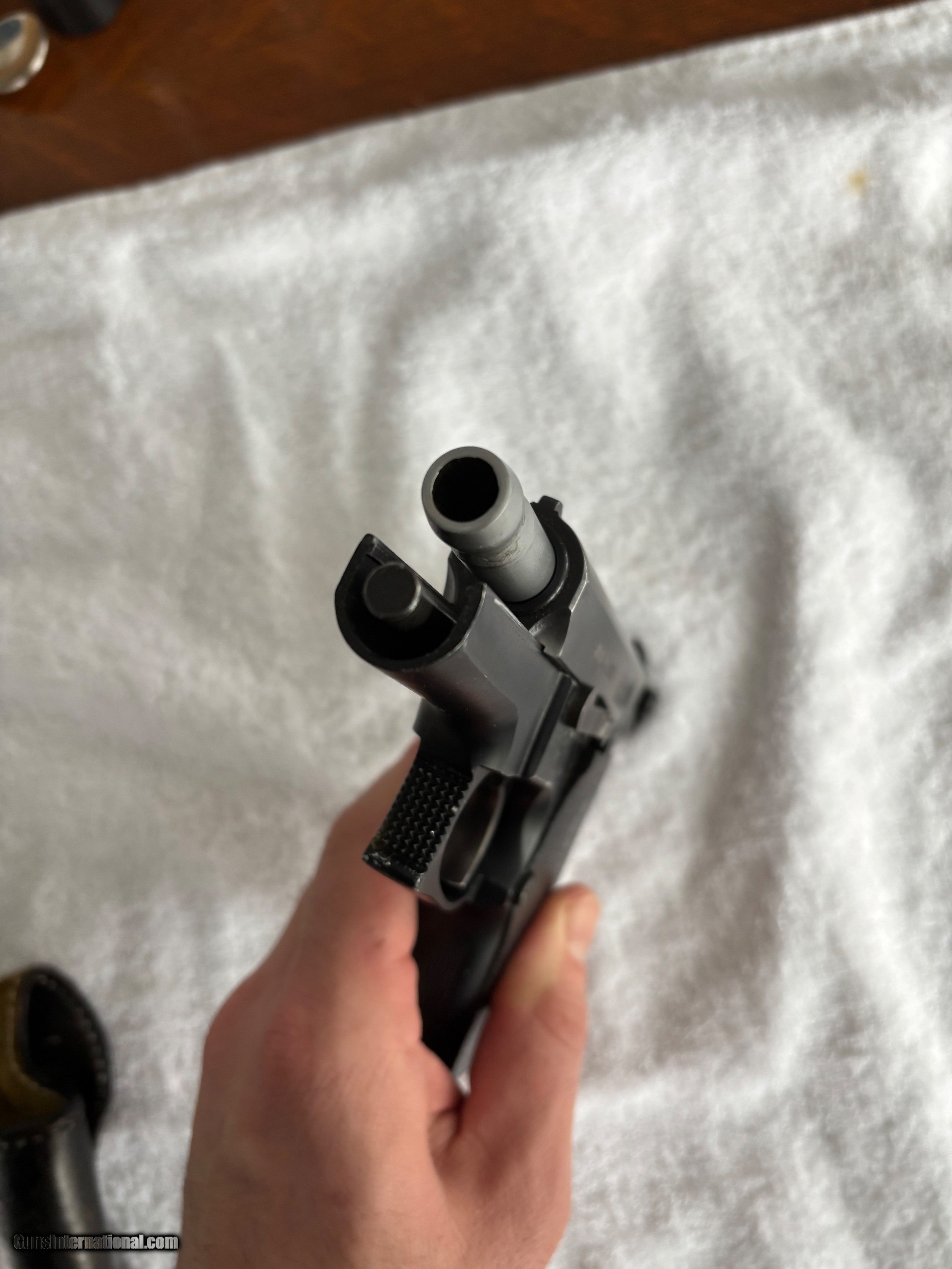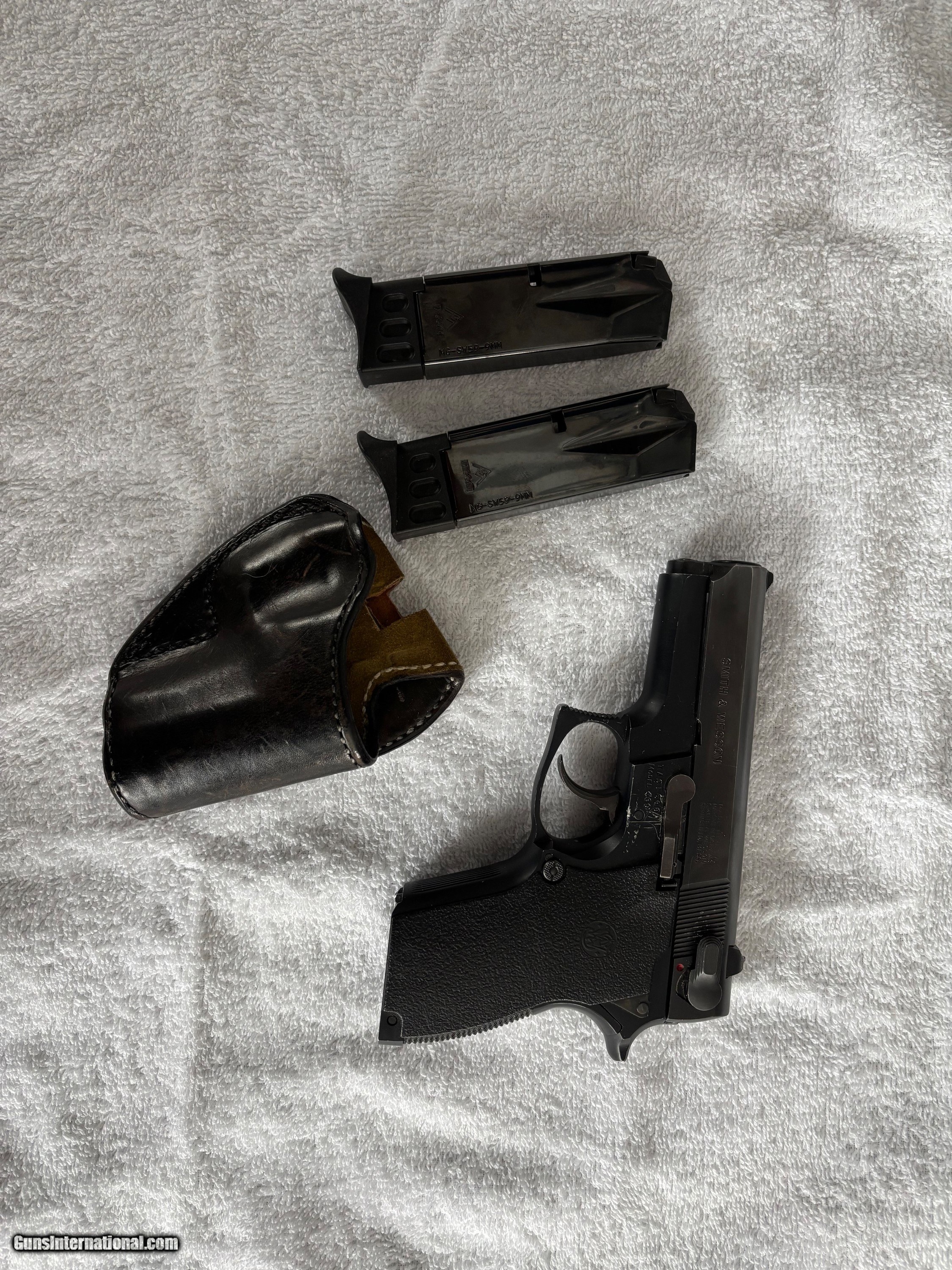 Description: A great 2nd Gen Smith and Wesson 9mm pistol. Fair condition, shoots and functions wonderfully. Will ship with a Safariland OWB holster ($50) and 2 10 round magazines. ($60 value) additional magazines can be purchased at $25/each. These Smiths are a tremendous value for their quality, and are absolute workhorses. please see pics for condition, and don't hesitate to request additional photos. payment via check/MO. Will ship to your FFL from mine, which means I'm eating $50 in fees alone. Shipping cost is $50. Handgun Caliber: 9x19mm Parabellum (9mm Luger, 9x19mm NATO) Manufacturer: Smith & Wesson Model: 469 Condition: Good Metal Condition: Fair Extras: 2 magazines and Holster Price: $379.00 Contact Seller |
