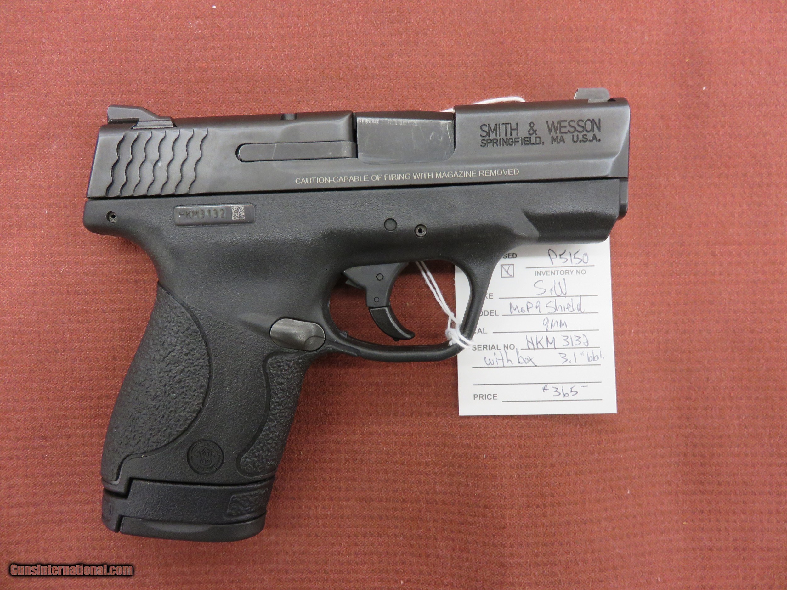 Description: Smith & Wesson M&P9 Shield, 9mm, 3.125" barrel, with box, polymer frame, textured front and back straps, black melonite finish, white dot front & rear sights, no holster wear, used, overall condition 99%. SOLD |