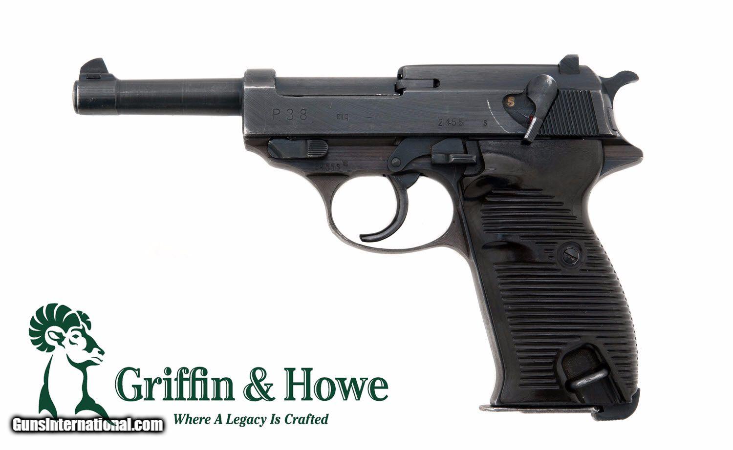 Description: Spreewerke - P-38 - - Item Number: CYQ2455S Barrel length: 5 Finish: Blue Lop: NA Lbs: |/22| Ozs: Overall condition: Very Good Stock condition: Very Good Metal condition: Very Good Stock:Original Metal:Original Type of Case: noneManufactured in: Germany Manufacture Year: Comments: Pistol is in very good condition, numbers match, Waffenamt proofs. HG-13 SOLD |