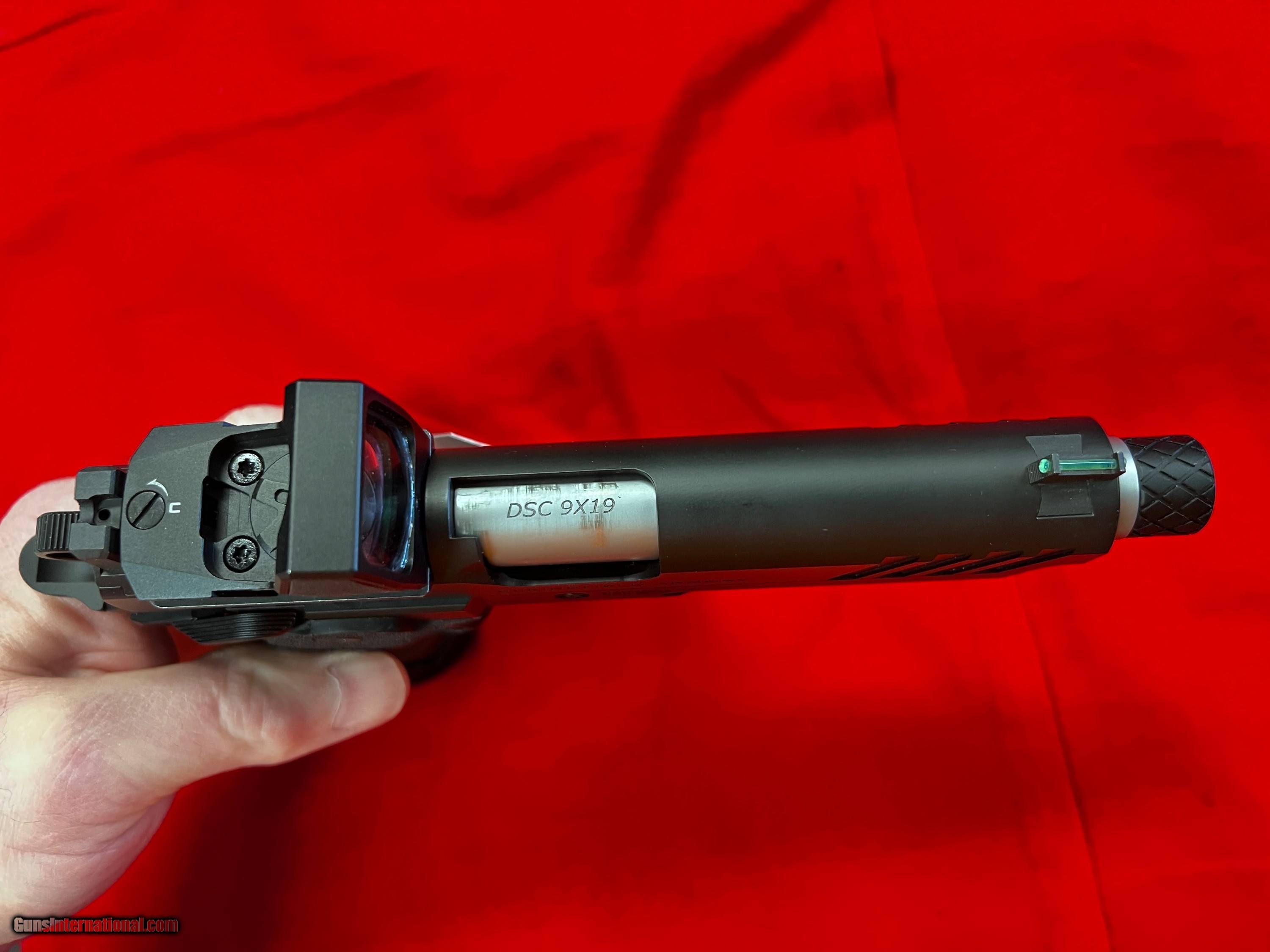 Description: Excellent pre owned 4.25 inch Prodigy with rmr, threaded barrel and mag funnel original non threaded barrel is included SOLD |
