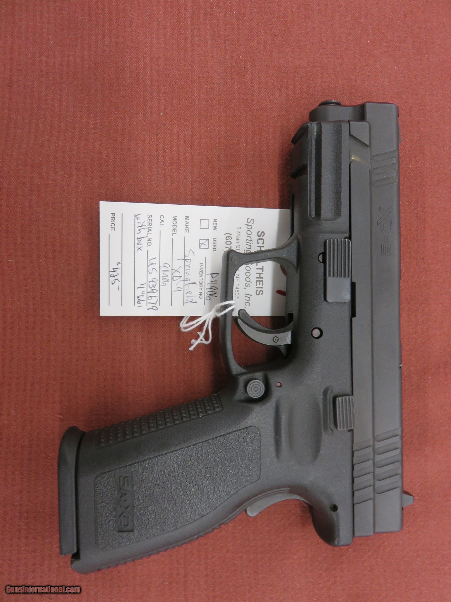 Description: Springfield Armory XD-9, 9mm, with box, 4" barrel, polymer frame with picatinny rail, rear grip safety, 3 white dot sight system. Used, overall condition 98%. SOLD |