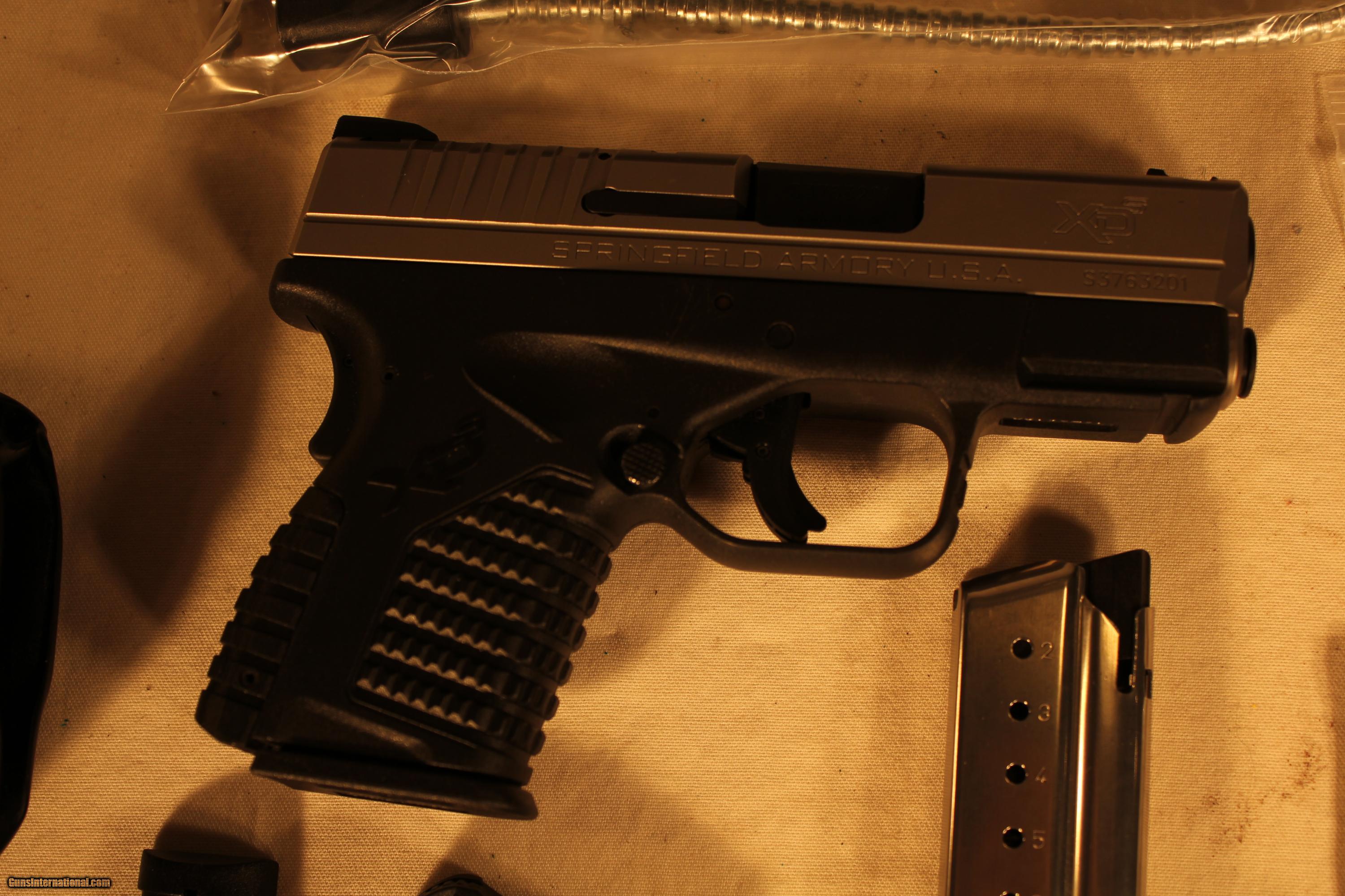 Description: Springfield Armory XDS model in 9mm Para with case and assesories plus 2 holsters. One standard 7 round magazine and one 8 round extended magazine. Extra back strap housing to customize the grip for your hand. this gun is in excellent condition and shows little signs of use. Not legal in California Also, avalible are two more 8 round extended magazines and two more 9 round extended magazines for $27.50 each or all four for $100.00. FFL required $30.00 Shipping and insurance via Priority Mail. I take plastic for 3% SOLD |