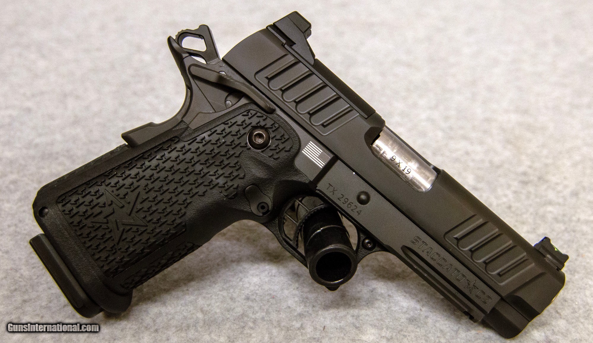 Description: Staccato C2 Carry, chambered in 9 mm. Features include: lightweight alloy frame, 3.9 in. bull barrel w/flush fit 11 degree crown, 3.9 Recoil Master Light recoil system, 16 shot mags., fiber optic front sight, Dawson Universal Optic system and rear sight, 2011 Officer length G2 black grips, ambi safety levers, Picatinny accessory rail, black DLC finish. 9mm Luger Chambers: 9 mm Metal Condition: Excellent Bore Condition: Excellent Barrels: 3.9'' Sights: 3 Dot Green Fiber Optic Front Item Location: Fort Mill, SC Price: $2,099.99 Contact Seller |