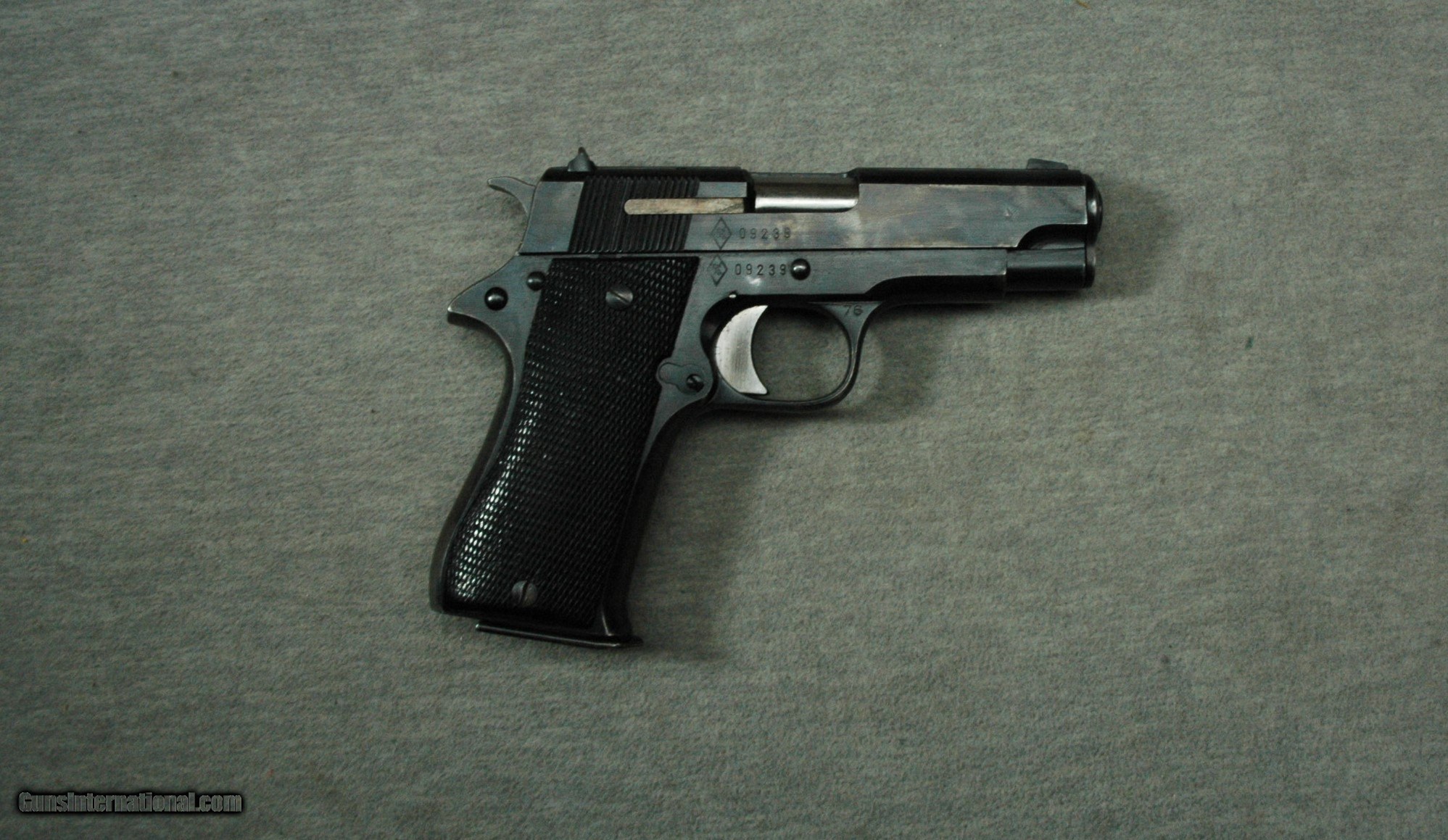 Description: Star Model BM chambered in 9mm Luger. This is a single-action semi-automatic pistol produced by Star Bonifacio Echeverria, S.A. in Spain. It is a compact version of the full-size Star Model B. Although its external appearance resembles the classic M1911, its design is different in several respects. For example, the Star does not have 1911's grip safety. In addition, the thumb safety on the Star BM blocks the hammer, whereas it blocks the motion of the sear on a 1911 and the Star's trigger pivots on a roll pin rather than moving straight back like a 1911A1's trigger to trip the sear. The pistol is fed by an 8-round detachable box magazine. Original box and 3 mags. 9mm Luger Metal Condition: Good Bore Condition: Bright Barrels: 3 3/4 Inches Triggers: Factory Weight: 2 lbs 4 oz Sights: Fixed notch and blade Item Location: La Vista, NE Price: $349.99 Contact Seller |