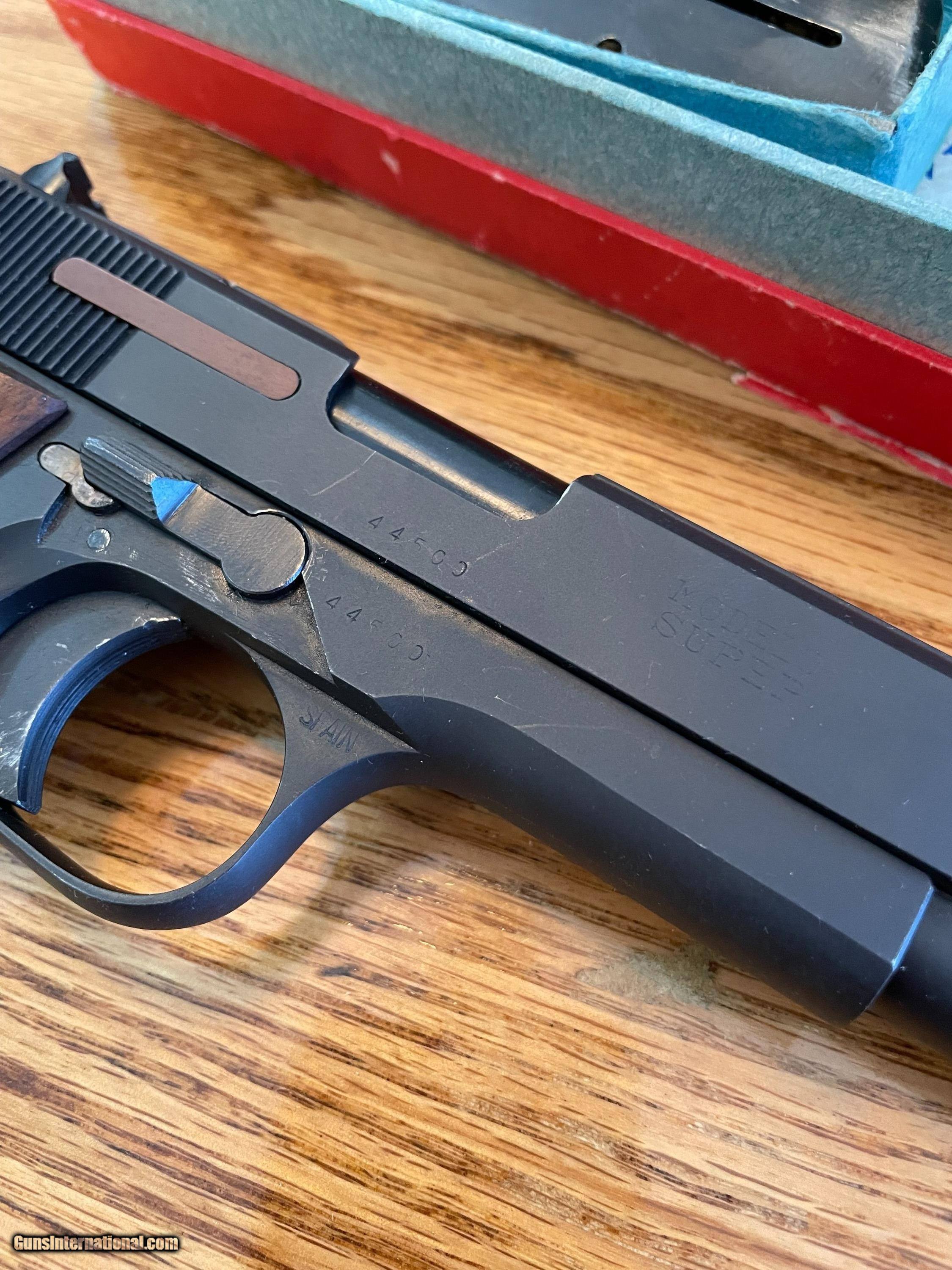 Description: Star Model Super B, 9mm (parabellum) pistol, matching box, original owner's manual, extra magazine and cleaning rod. Over-all very good condition, manufactured in 70's. Functionally sound, dark finish, bore has good rifling. Original plastic grips and wooden grips. Private seller with C&R license. Must ship to FFL. $30.00 shipping charge. SOLD Curio/Relic: Yes Handgun Caliber: 9x19mm Parabellum (9mm Luger, 9x19mm NATO) Manufacturer: Star Model: Super B Serial Number: 44500 Barrel Length: 5 inches Condition: Very good Metal Condition: Very good Wood Condition: Veri good Bore Condition: Good |