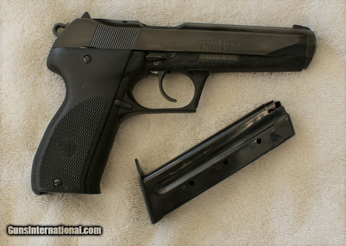 Description: very good,exc. perfect mechanics,18 rd mag. SOLD Manufacturer: steyr Model: gb Serial Number: p11396 Caliber Info: 9 mm Bore: exc. Condition: excellent Metal Condition: v.g.-exc |