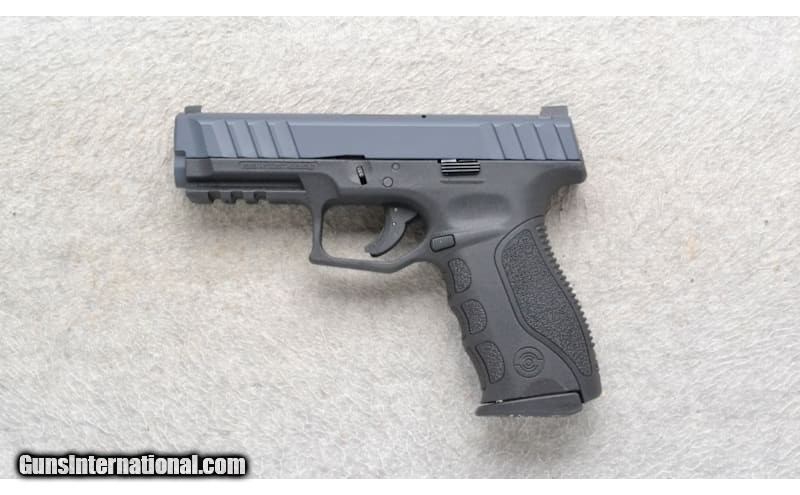 Description: This Stoeger Model STR is a right hand semi-auto pistol in 9mm Cal. It has a 4 inch barrel with a front and rear serrated slide. A blade front sight and notch rear sight, both with white sight dots. The grip is a textured black polymer with molded finger grooves. It has a lower accessory rail. 9mm Parabellum Barrels: 4 inch Weight: 26 oz. Item Location: Richfield, WI Price: $249.99 Contact Seller |