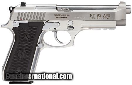 After Taurus purchased the Beretta factory in Brazil in 1980, the Taurus 92 9mm pistol was created to improve on the Beretta design. The specially-designed drop hammer-forged ordnance-grade alloy frame won't crack or allow the slide to come off, and a three-position frame-mounted ambidextrous safety allows for a classic SA "cocked-and-locked" mode and also functions as a DA decocking lever. The Taurus 92 also features a loaded chamber indicator, the Taurus Security System, a Picatinny rail, and fixed sights.