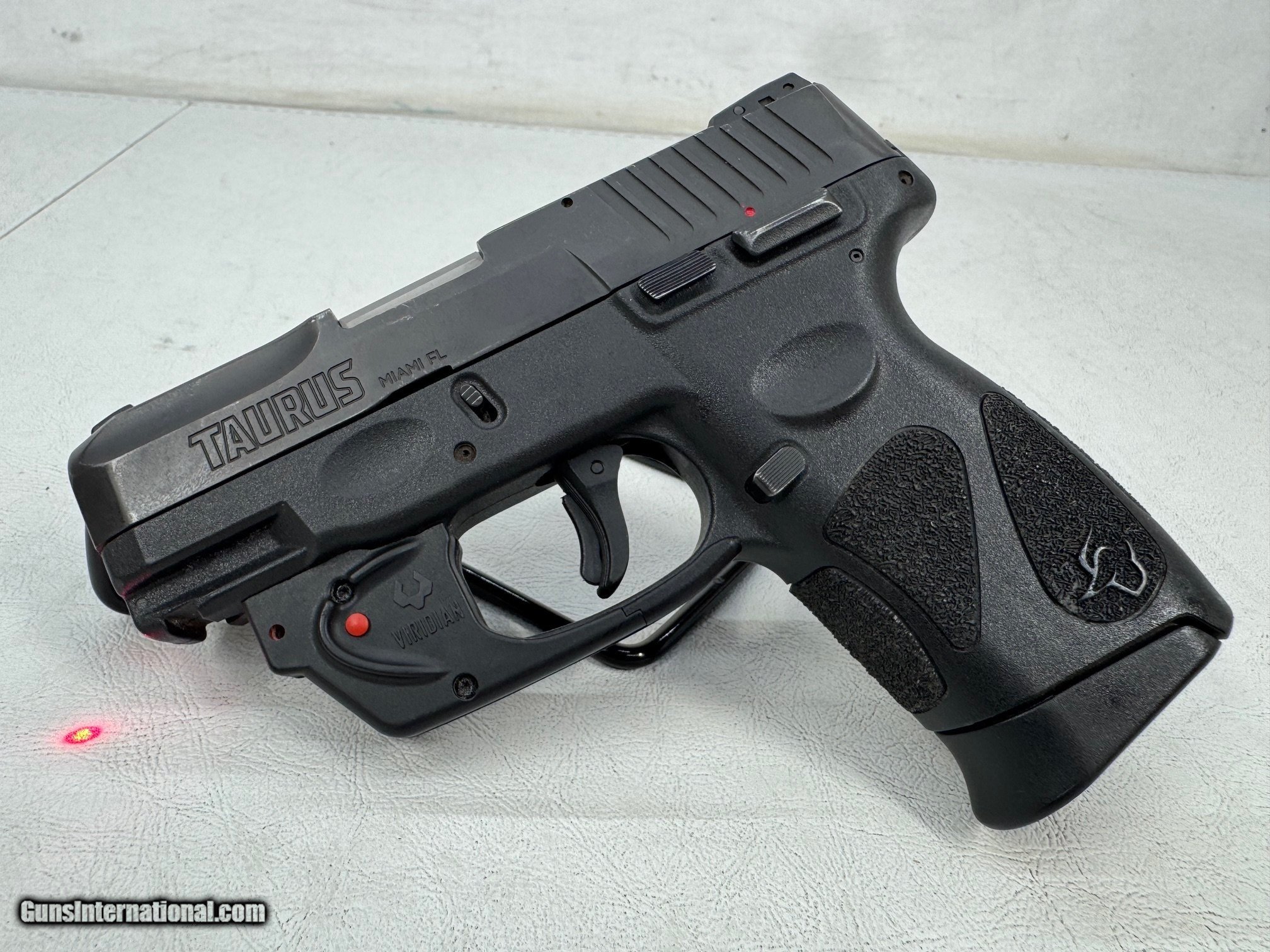 Description: Guns Listing ID: 586906 This Is A TAURUS G2C COMPACT 9MM WITH VIRIDIAN RED LASER. IN GOOD CONDITION WITH SOME SIGNS OF WEAR. THIS WOULD MAKE A GREAT ADDITION TO A COLLECTION. PLEASE SEE PICTURE‚S FOR MORE DETAILS ON CONDTION. PLEASE FEEL FREE TO CONTACT WITH ANY QUESTIONS. I HAVE UP FOR THE FIREARM LISTED BELOW. All SALES ARE FINAL. Please, ask any questions BEFORE you buy. All firearms ship Fed Ex ground. We do not ship directly to C&R license holders. This is a Taurus G2c Compact Black 9mm pistol. This pistol is in good condition with some signs of use. It has 2 - 12 round magazine. Has 3 white-dot front and rear sights. Loaded indicator on top of slide for easy visability. Right Handed (RH) Saftey switch, Right Handed (RH) slide lock. Has Viridian red laser attached to trigger guard, Black nylon soft holster. MAKE: Taurus MODEL: G2c ACTION: Semi-Automatic CALIBER: .9mm FINISH: Black CONDITION: Good Barrel: 3.26\" Hight: 5.1\" OVERALL LENGTH: 6.5\" L.O.P. (Length Of Pull): 2.75\" SCOPE: N/A NUMBER OF MAGS: 2 CAPACITY: 8 rounds CASE: N/A ACCESSORIES: 2 12round magazines, Black nylon soft holster. Viridian red laser ADDITIONAL DESC: A good condition pistol. The bore is in great shape with some , bright and shiny. It will make someone a nice shooter. SKU# 312852 RR Manufacturer: TAURUS Model: G2C Caliber Info: 9MM LUGER (9x19 PARA) Condition: Used - Non-Certified Barrels: 3.260" BARREL Action: SEMI AUTOMATIC Finish: black Price: $299.99 Contact Seller |