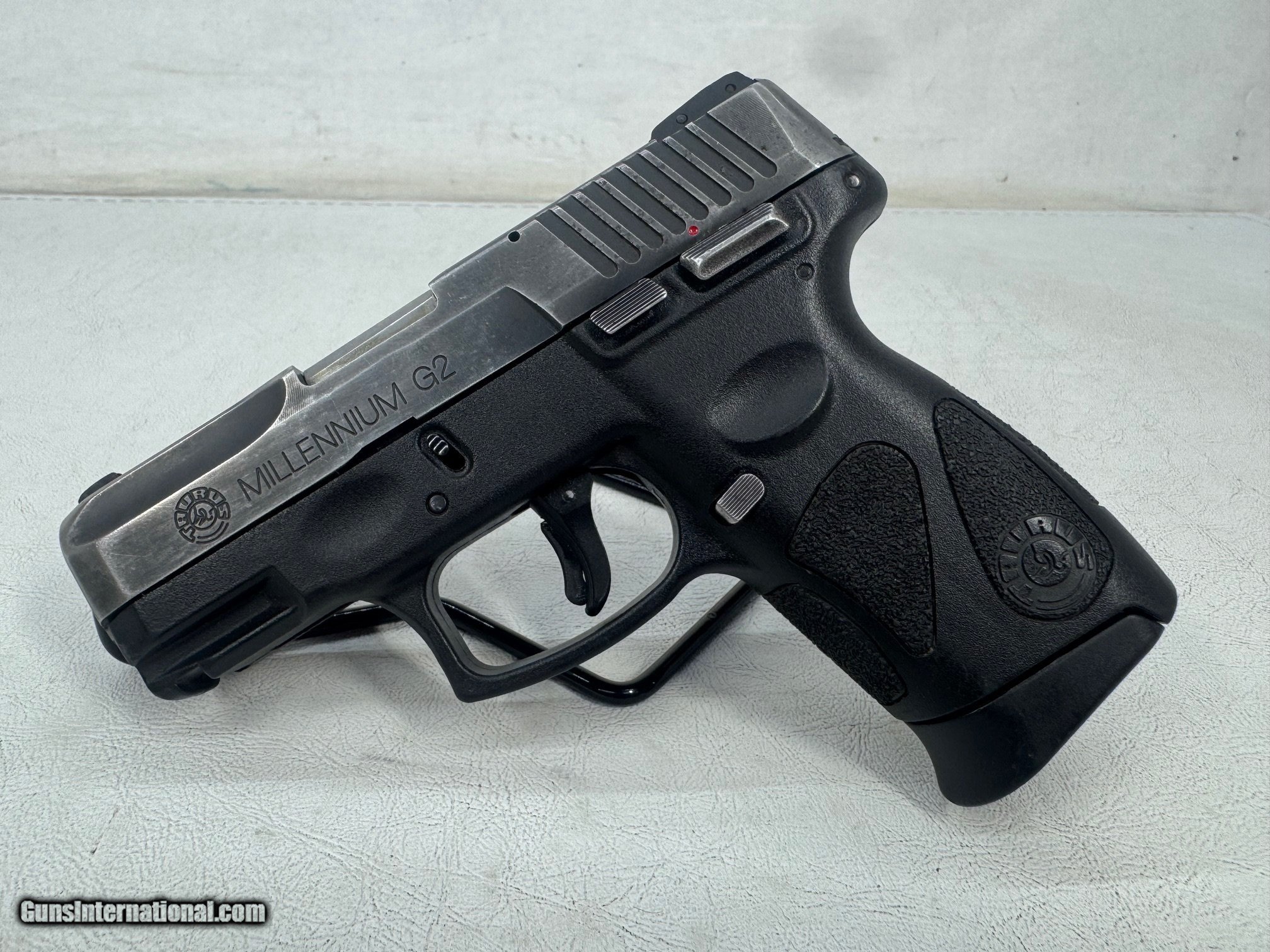 Description: Guns Listing ID: 597720 THIS IS A TAURUS MILLENNIUM G2 PT-111 9mm LUGER HAS STAINLESS BLACK SLIDE (FINISH IS WARN), BLACK POLYMER FRAME WITH ROUGH TEXTURE GRIPS FOR BETTER GRIP. FRONT RIGHT IS WHITE DOT, REAR SIGHT IS 2 WHITE DOT (REAR SIGHTS ARE WARN, MISSING WHITE DOTS.), HAS TRIGGER SAFETY AND RIGHT HANDED (RH) THUMB SAFETY. OVERALL CONDITION IS FAIR. Includes: Galco Gun Holster Magazine(s): 2 Capacity: 12 rounds Original Box Features: Manufacture: Taurus Model: PT-111 G2 Series: Millennium Caliber: 9mm Luger Barrel Length: 3.25\" Full Length: 6.25\" Length Of Pull: 2.62\" Slide Finish: Black Stainless (Warn) Frame: Black Stainless Barrel Finish: Stainless SKU# 317008 RR Manufacturer: TAURUS Model: PT-111 MILLENIUM G2 Caliber Info: 9MM LUGER (9x19 PARA) Condition: Used - Non-Certified Barrels: 3.25" BARREL Action: SEMI AUTOMATIC Finish: black Price: $229.99 Contact Seller |