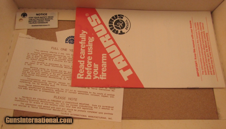 Description: Serial #B63610, 9mm Para., 4 3/4” barrel with an excellent, bright bore. This is an early pistol with low mounted magazine release at the heel of the butt on the left side. The metal retains about 90% of the original blue finish with even silvering along the exposed edges, projections, and at the muzzle. There is some further fading and silvering along the sides of the barrel around the locking block. The smooth walnut grips are in very good shape with some very light flaking of the varnish. The pistol is housed in its original two-piece box with two high capacity magazines (one original and one Mec-Gar aftermarket). This is a nice PT-99 and would make a nice shooter. FFL SOLD Manufacturer: Taurus Model: PT-99 Serial Number: B63610 Caliber Info: 9mm Gauge Info: 9mm |