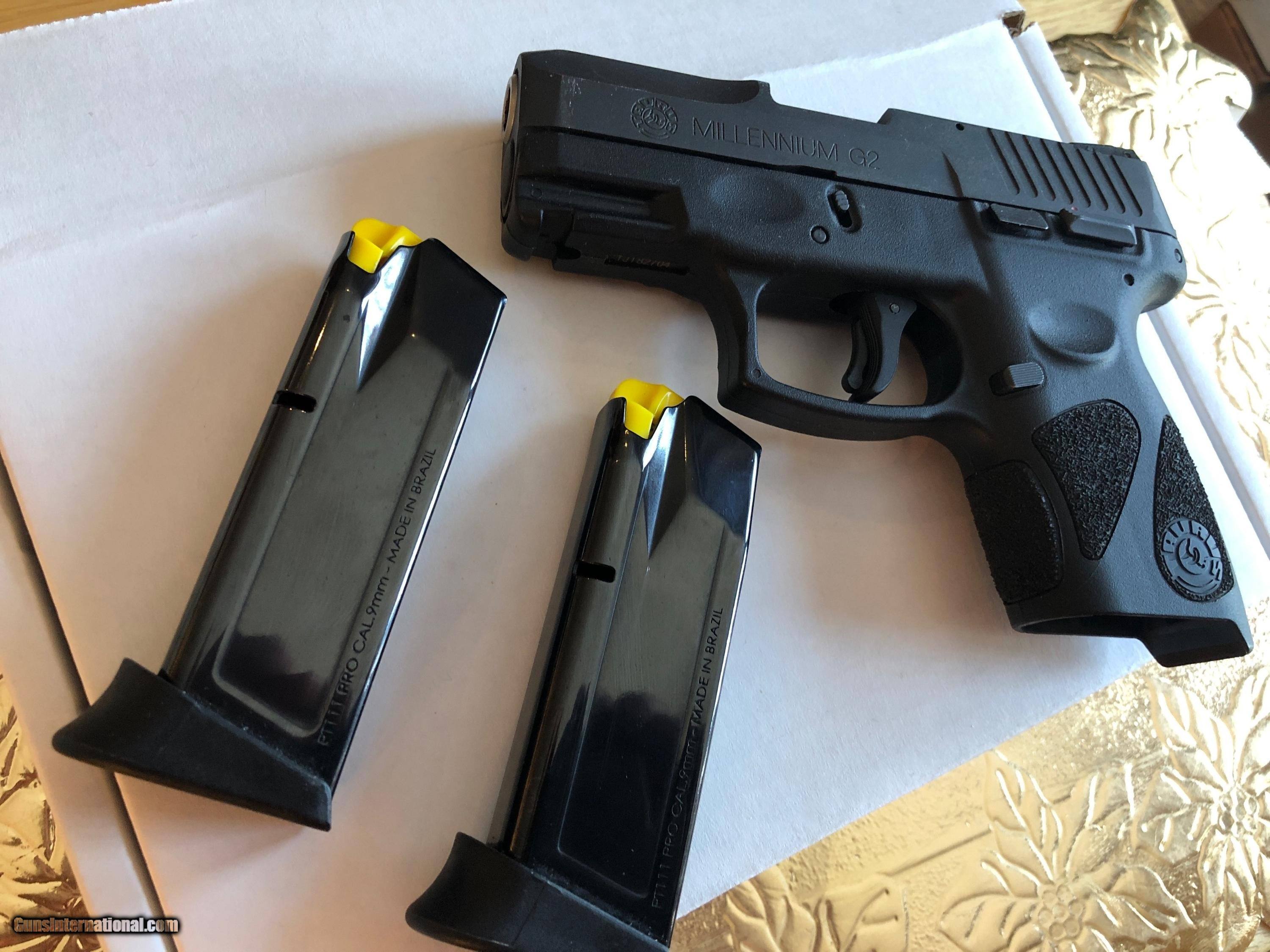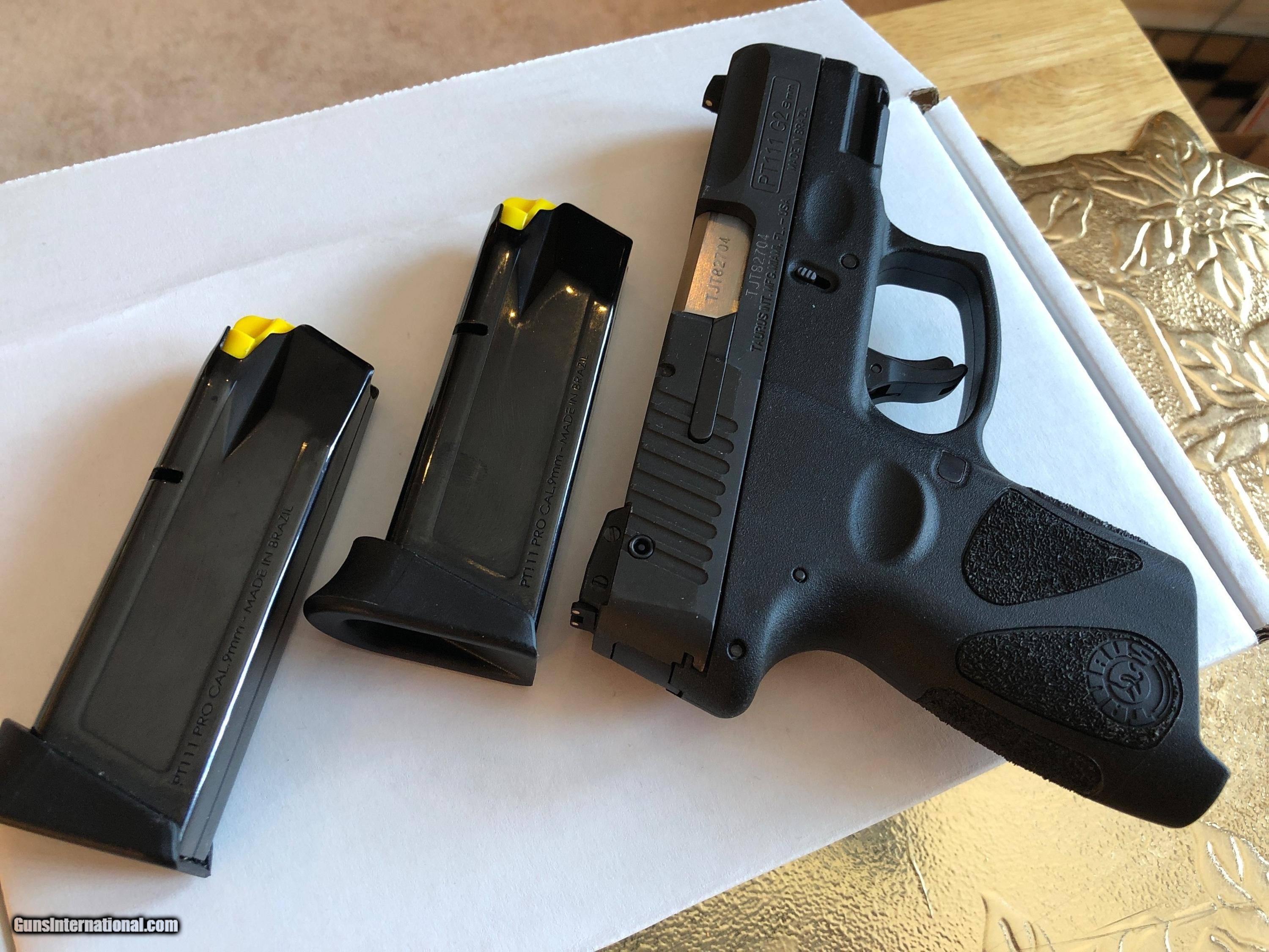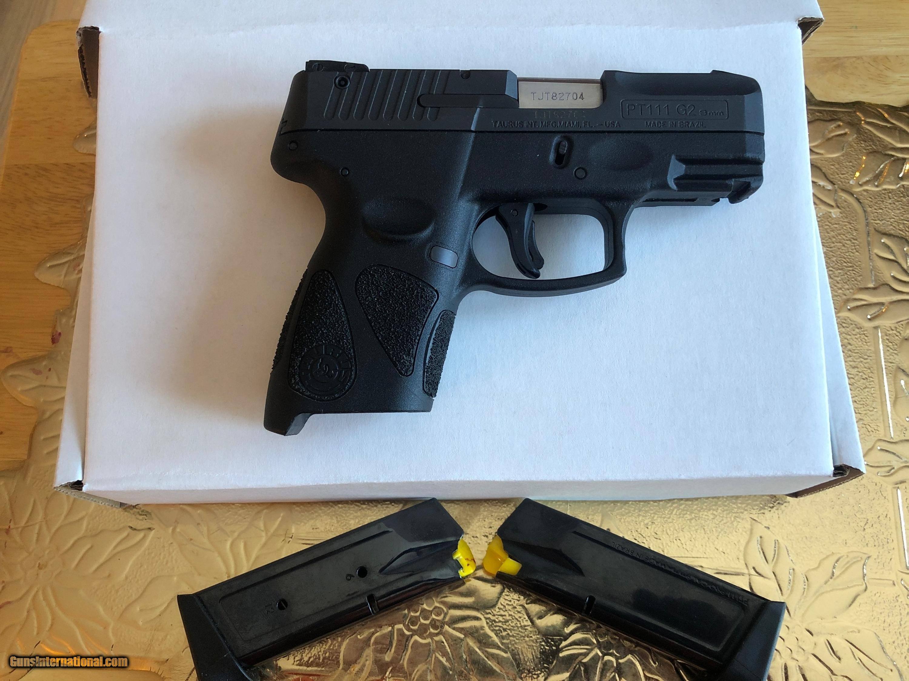 Description: EXCELLENT TAURUS PT111 , 9MM , SEMI AUTO WITH TWO MAGS PLASTIC BOX 3 1/8" BARREL BLACK FINISH PLEASE LOOK AT PICTURES AND ASK QUESTION SOLD Handgun Caliber: 9x19mm Parabellum (9mm Luger, 9x19mm NATO) Manufacturer: TAURUS Model: PT111 G2 Serial Number: TJT82704 Barrel Length: 3 1/8' Condition: EXCELLENT Metal Condition: EXCELLENT Bore Condition: EXCELLENT |