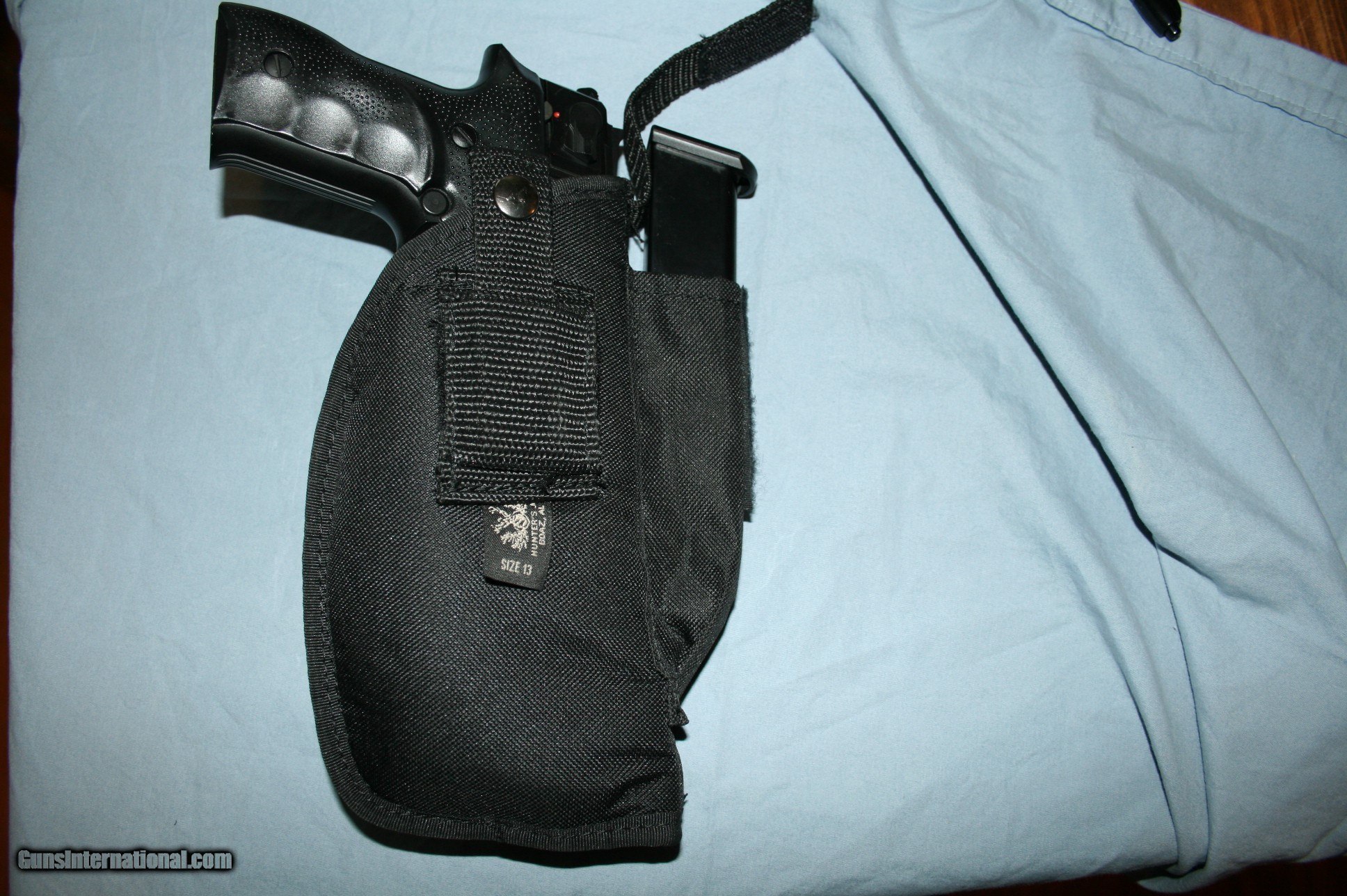 Description: TISAS ZIGANA SPORT 9MM 5" BLACK semi auto with NcSTAR Flashlight and Red Laser Pistol 200 Lumen CREE LED CR123A Batteries Quick Release Mount Aluminum and Reinforced Nylon Black, 2-15 round and 5- 17 round Mags, Condition: Used, Like New. Comes original shipping box and paperwork. And a outside the belt holster that also holds one Mag Manufacturer's Part #: TZSPB TISAS ZIGANA SPORT 9x19 mm One of the meanest looking 9mm semi auto pistols you will ever see.....period ! Made in Turkey by Tisas, manufacturers of only the highest quality handguns according to NATO and ISO standards. Amazing fit and finish, top notch workmanship and a price to value ratio that you simply cannot beat ! Tisas pistols are raising the bar in the firearms industry with their superior products at refreshingly reasonable prices SOLD |
