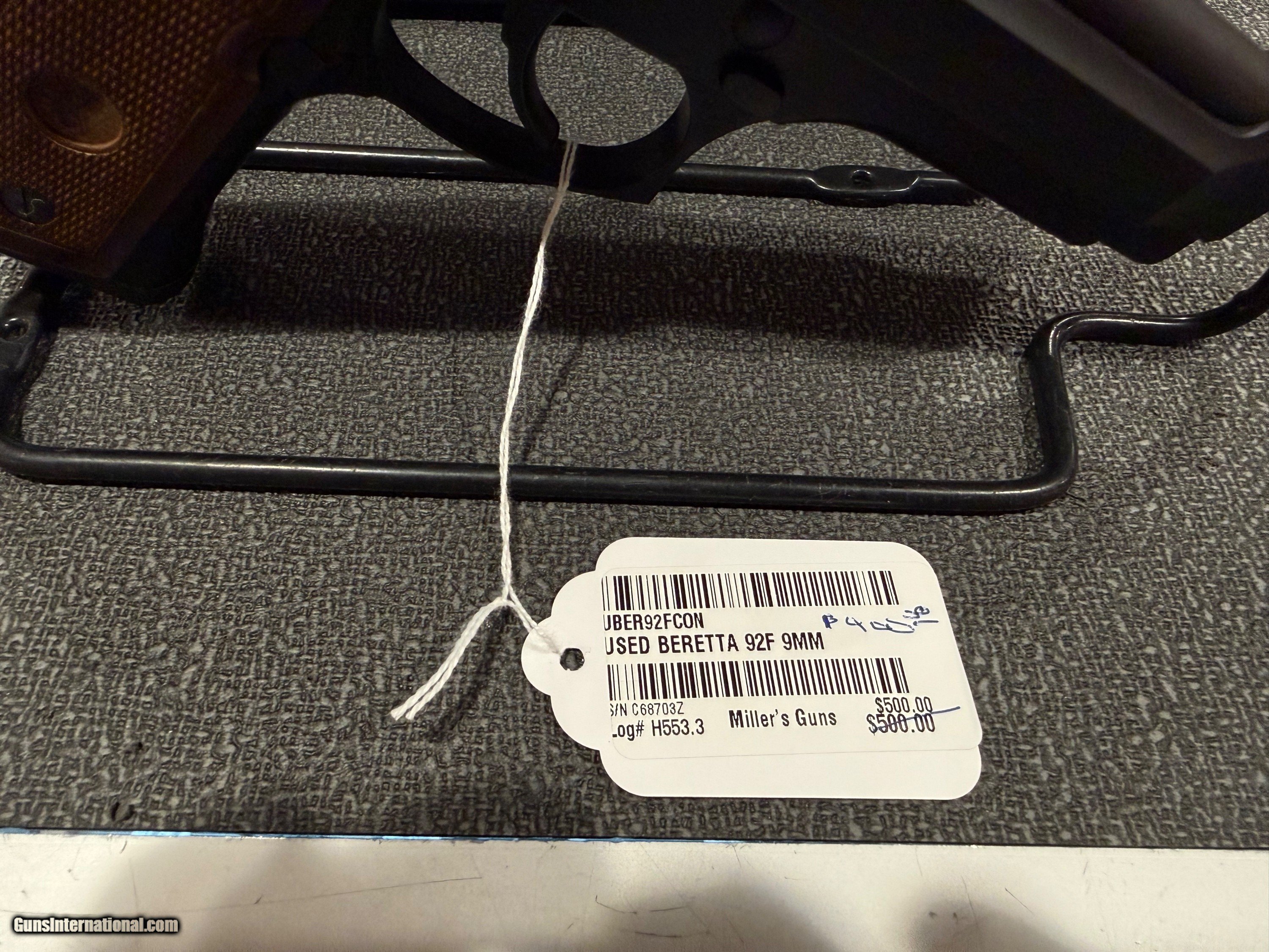 Description: USED Beretta 92F 9mm DA/SA 15 round capacity (3) magazines included Missing medallion from (1) grip panel Factory hard case included Handgun Caliber: 9x19mm Parabellum (9mm Luger, 9x19mm NATO) Manufacturer: Beretta Model: 92F Serial Number: C68703Z Barrel Length: 4.9 Condition: GOOD Price: $400.00 Contact Seller |