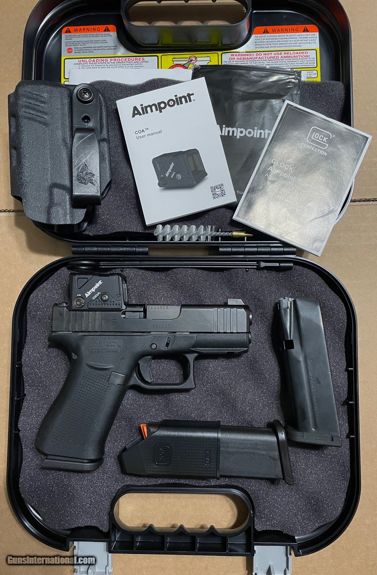 Used/Like New Unfired Glock 43X 9mm MOS8 W/ Aimpoint COA- 1 Shield Arms 15 round/2 10 round Glock mags