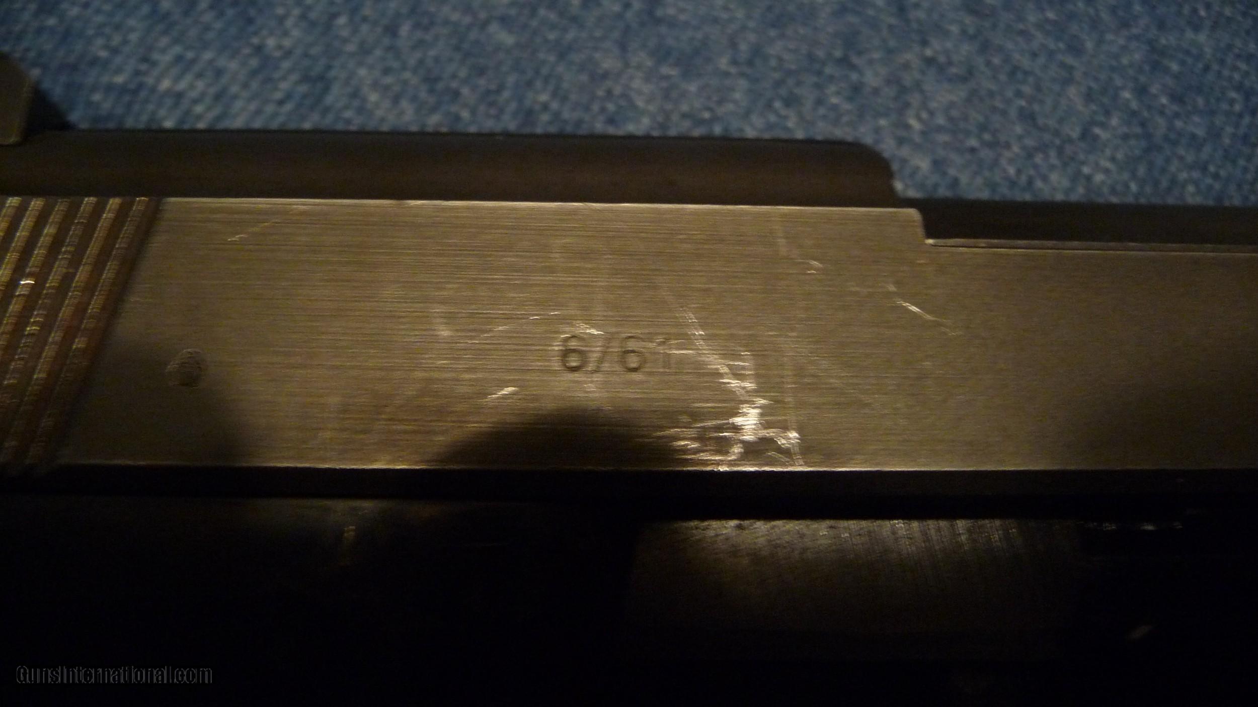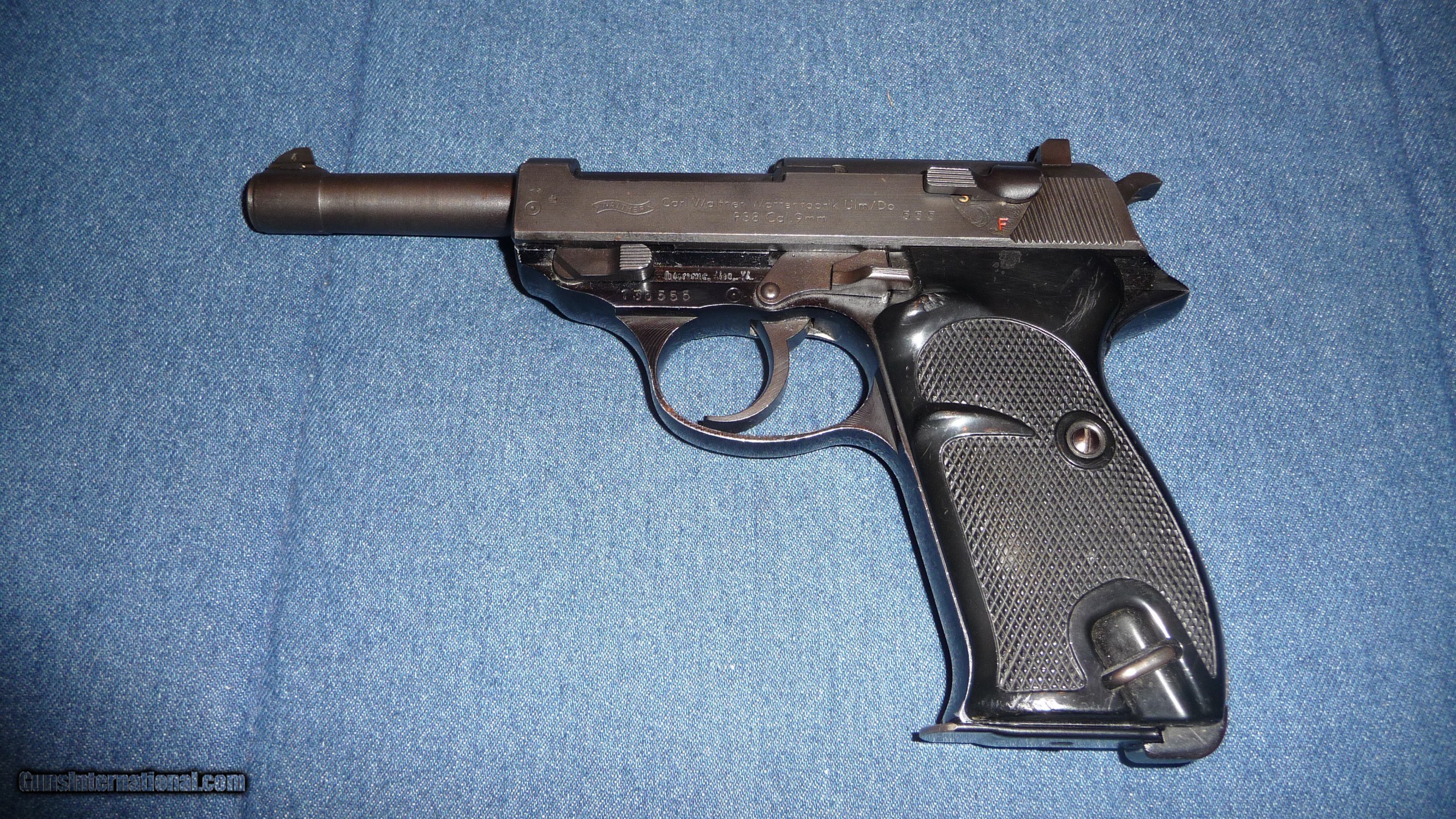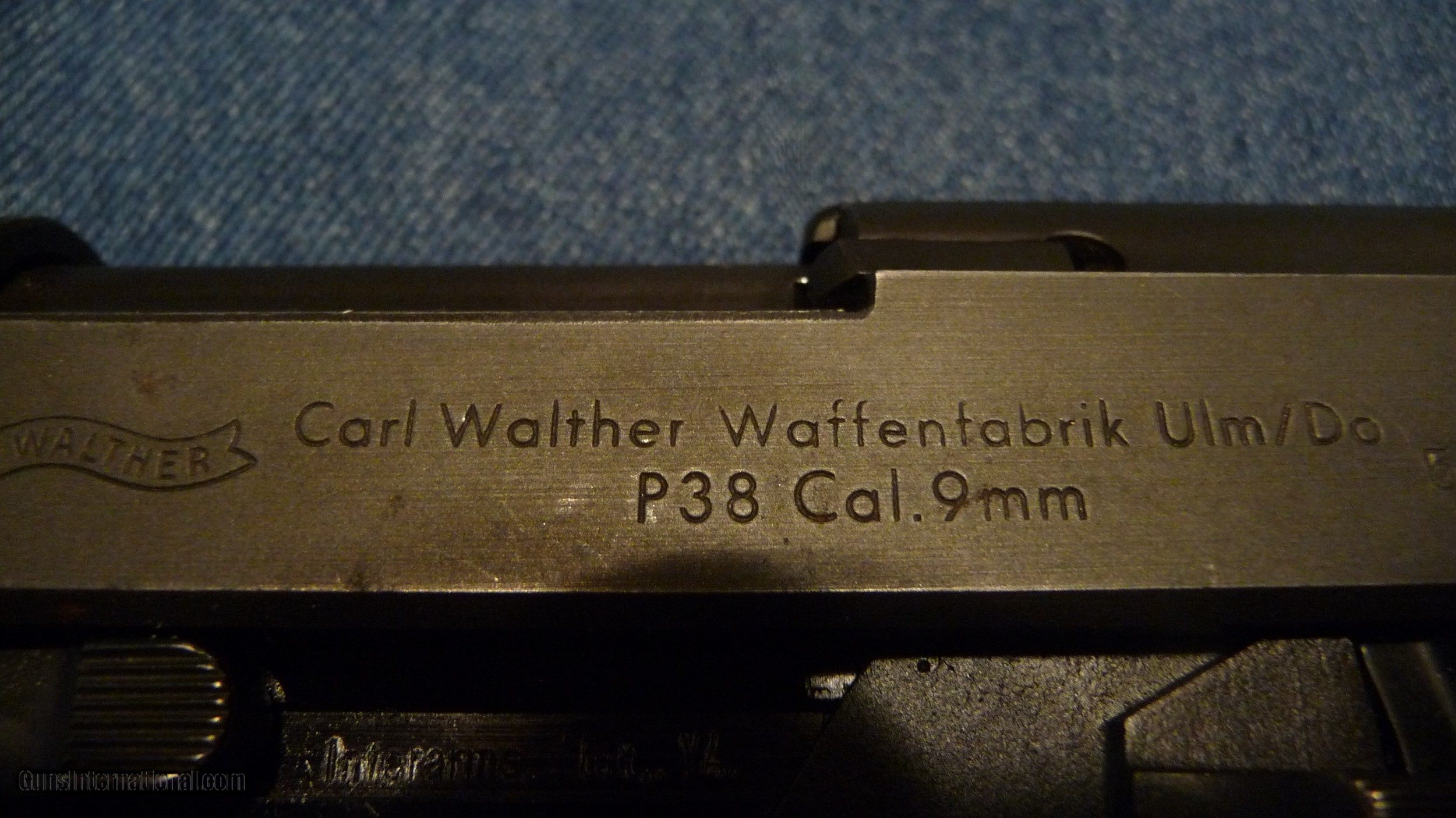 Description: Carl Walther P.38 Post War (mfg 1961) by Carl Walther Waffenfabrik ULM/DO 9mm semi-automatic Pistol. Serial # 136555, 5 inch barrel. Hammer fire action, manual thumb safety, 8 + 1 cartridge capacity. Blued steel frame, blued steel slide, raised front and rear sights. This old pistol is in very good condition. Shipping is $25 to Your FFL. SOLD Handgun Caliber: 9x19mm Parabellum (9mm Luger, 9x19mm NATO) Manufacturer: Walther Model: P.38 Serial Number: 136555 Barrel Length: 5 inches Condition: very good Metal Condition: very good Bore Condition: very good |