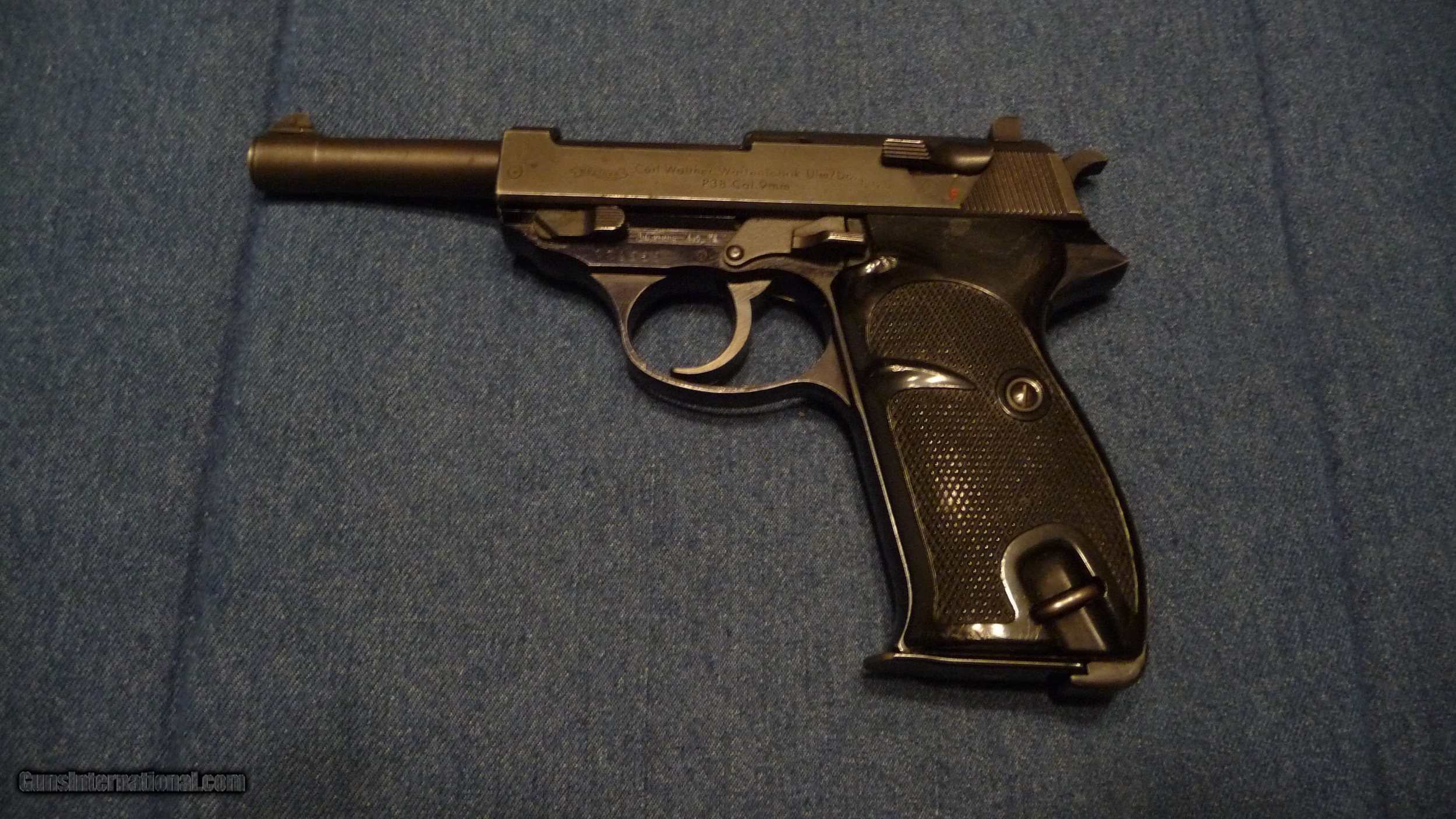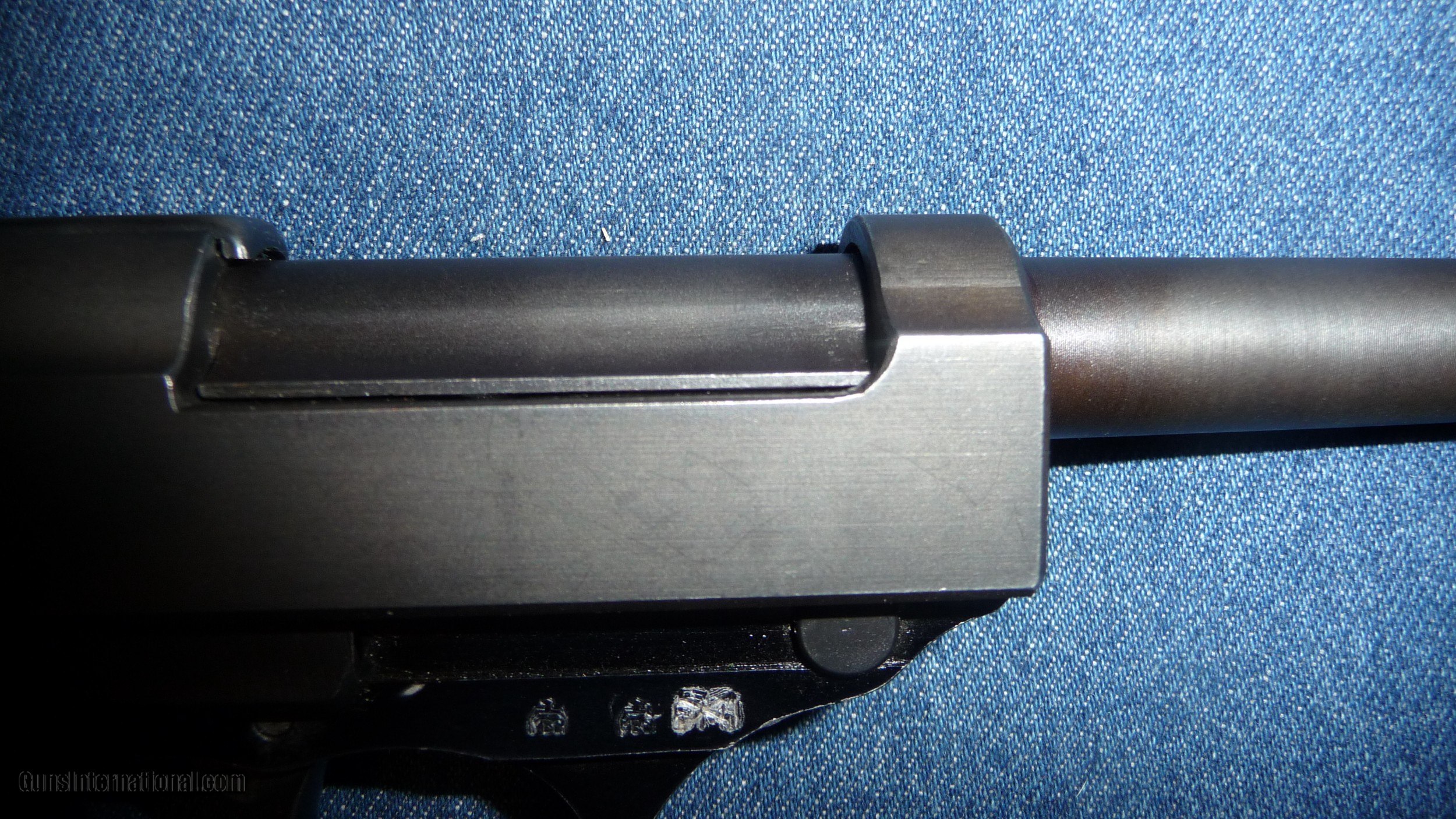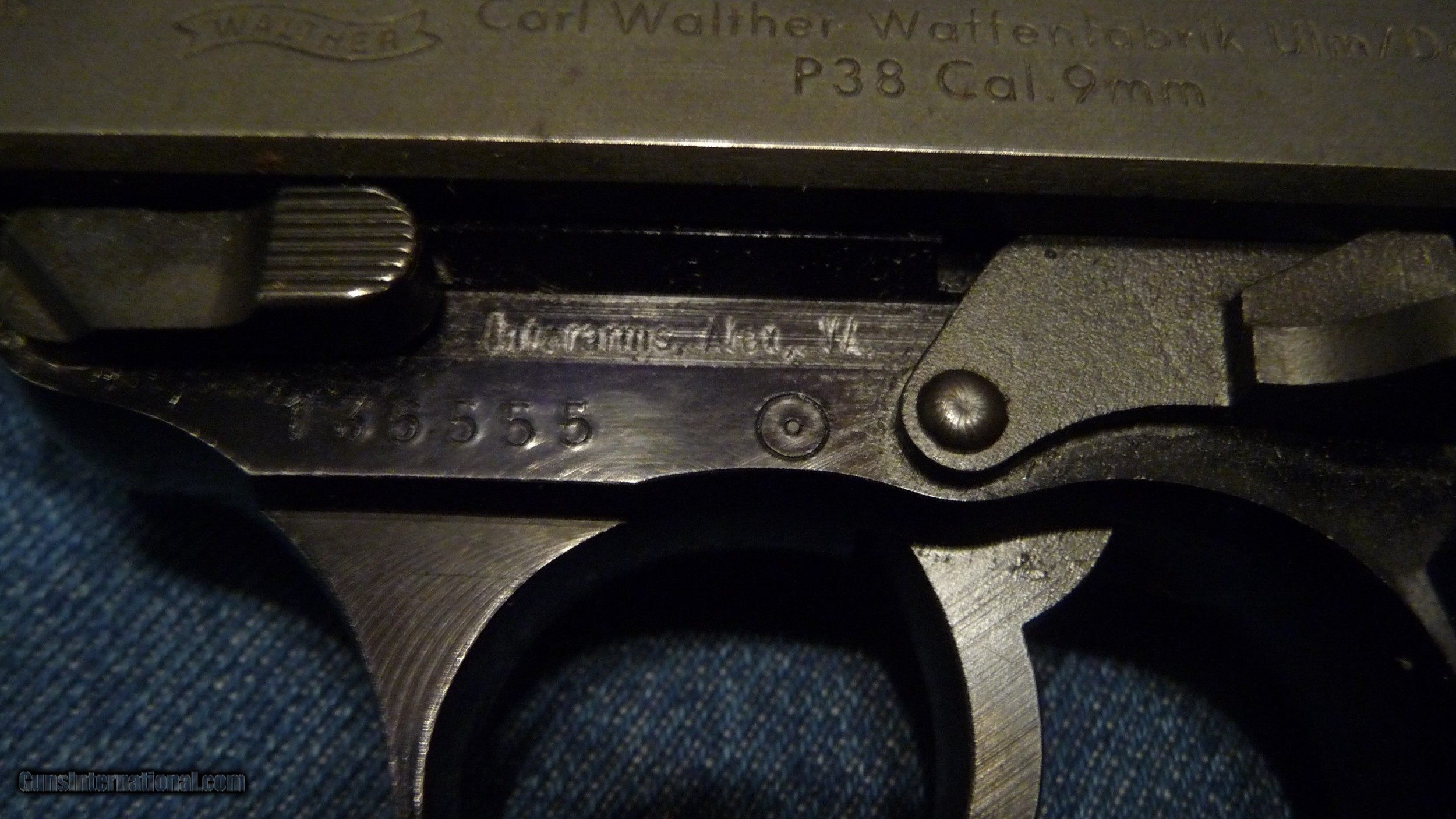 Description: Carl Walther P.38 Post War (mfg 1961) by Carl Walther Waffenfabrik ULM/DO 9mm semi-automatic Pistol. Serial # 136555, 5 inch barrel. Hammer fire action, manual thumb safety, 8 + 1 cartridge capacity. Blued steel frame, blued steel slide, raised front and rear sights. This old pistol is in very good condition. Shipping is $25 to Your FFL. SOLD Handgun Caliber: 9x19mm Parabellum (9mm Luger, 9x19mm NATO) Manufacturer: Walther Model: P.38 Serial Number: 136555 Barrel Length: 5 inches Condition: very good Metal Condition: very good Bore Condition: very good |