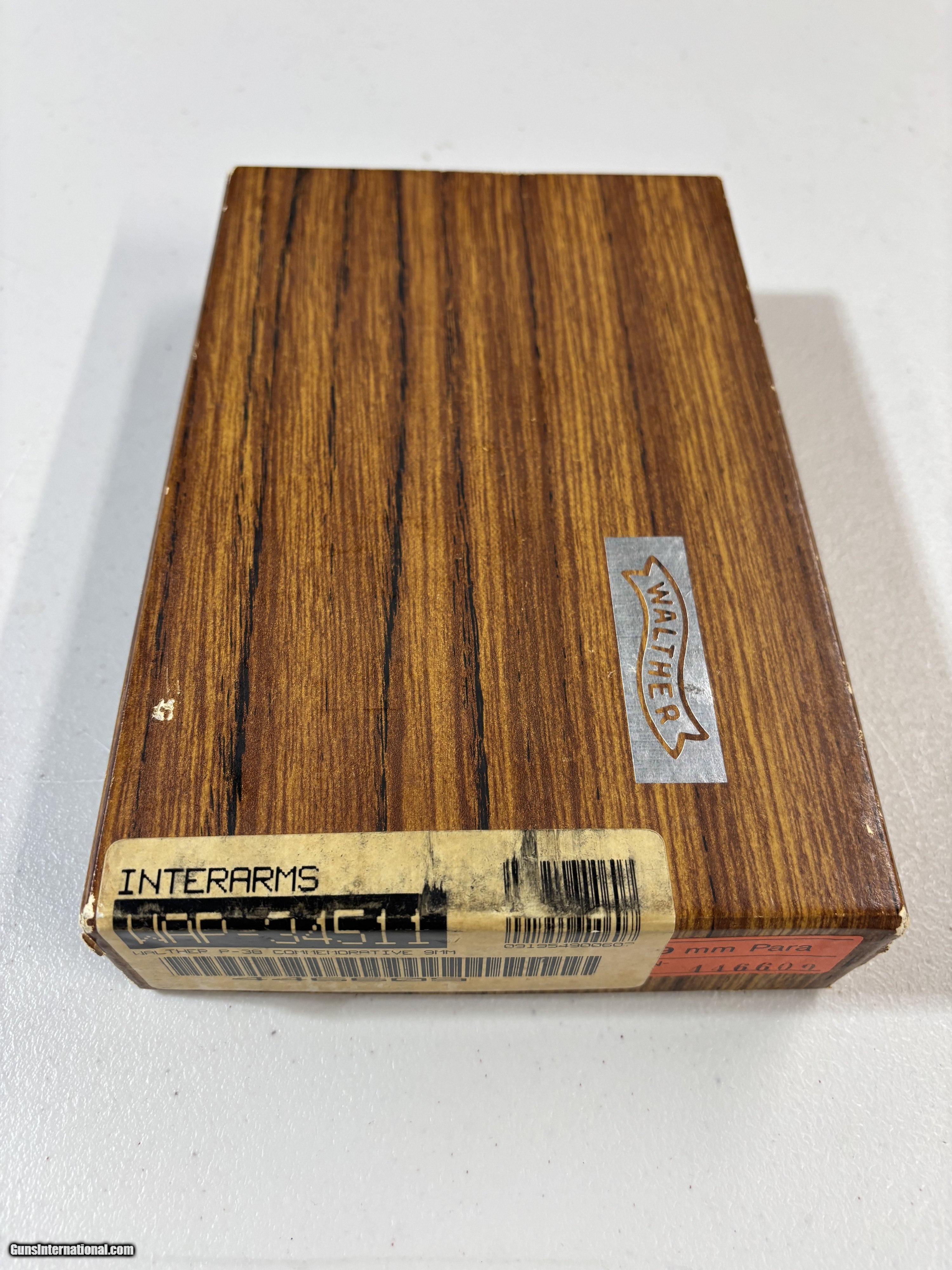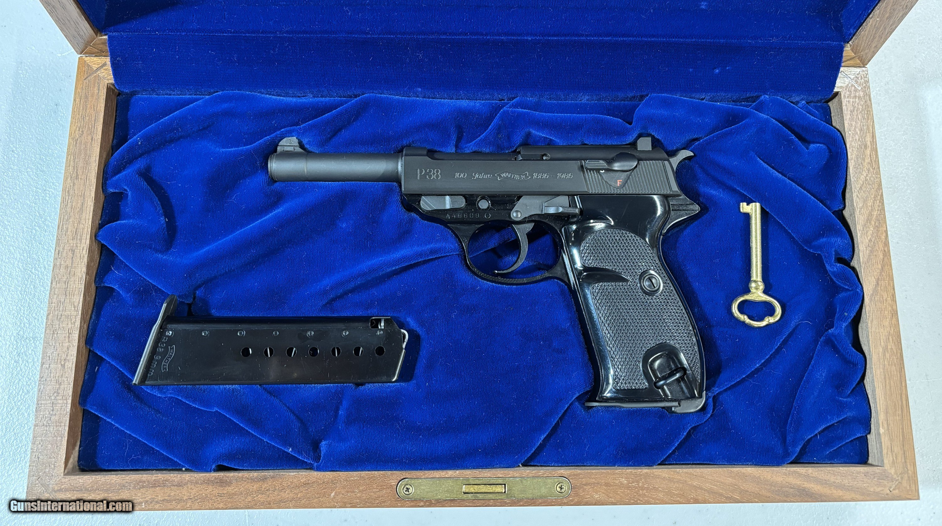 Description: This is a like-new example of a Walther P38 9mm manufactured in 1986. This is a special issue gun to commemorate the 100th year of the Walther factory. It is all matching and has the proper German proofs. "Made in Germany" export proof. The gun comes with the original matching cardboard box, factory test target, owners manual, and two magazines. It also comes with a very nice 100 year anniversary oak presentation locking case with gold key. The gun is in like-new condition with no signs of wear. The bore is mint. I was told it was unfired except for the factory test when i purchased, and I have never fired it. Please contact me with questions or requests for additional pictures. Shipping USPS Priority 2-Day: $50.00 No shipping to CA, NY, Hawaii, or any other restrictive states. Know you gun laws. Thanks for looking! Handgun Caliber: 9x19mm Parabellum (9mm Luger, 9x19mm NATO) Manufacturer: Walther Model: p38 100 Year Anniversary Barrel Length: 5 Bore Info: Excellent Condition: Excellent Metal Condition: Excellent Bore Condition: Excellent Action: SA/DA Manufacture Date: 1986 Grips: Black Composite Price: $1,099.00 Buy Now Contact Seller |