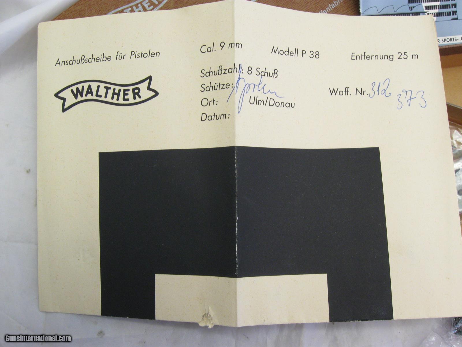 Description: This is a spectacular, "as new in the box" Walther P38 in scarce "high polished" finish, made in 1968 and in 9mm Para(Luger) caliber, made in West Germany. It is a complete set that comes with an original serial numbered box in excellent condition, a serial numbered test target, spare mag, cleaning rod, manual, warranty card. The gun and the spare mag are still in the original plastic sleeves! There is no wear on the gun. It looks to be unfired after leaving the factory,as if it spent the last 48 years in a time capsule. 3-day inspection. FFL is required for purchase. No sales to NY CITY or CHICAGO!. All applicable state and federal laws will be followed. Flat rate insured Next day air shipping in CONUS: $40.If transfer to NY State is required, there will be an additional $40 charge from my FFL dealer. SOLD |