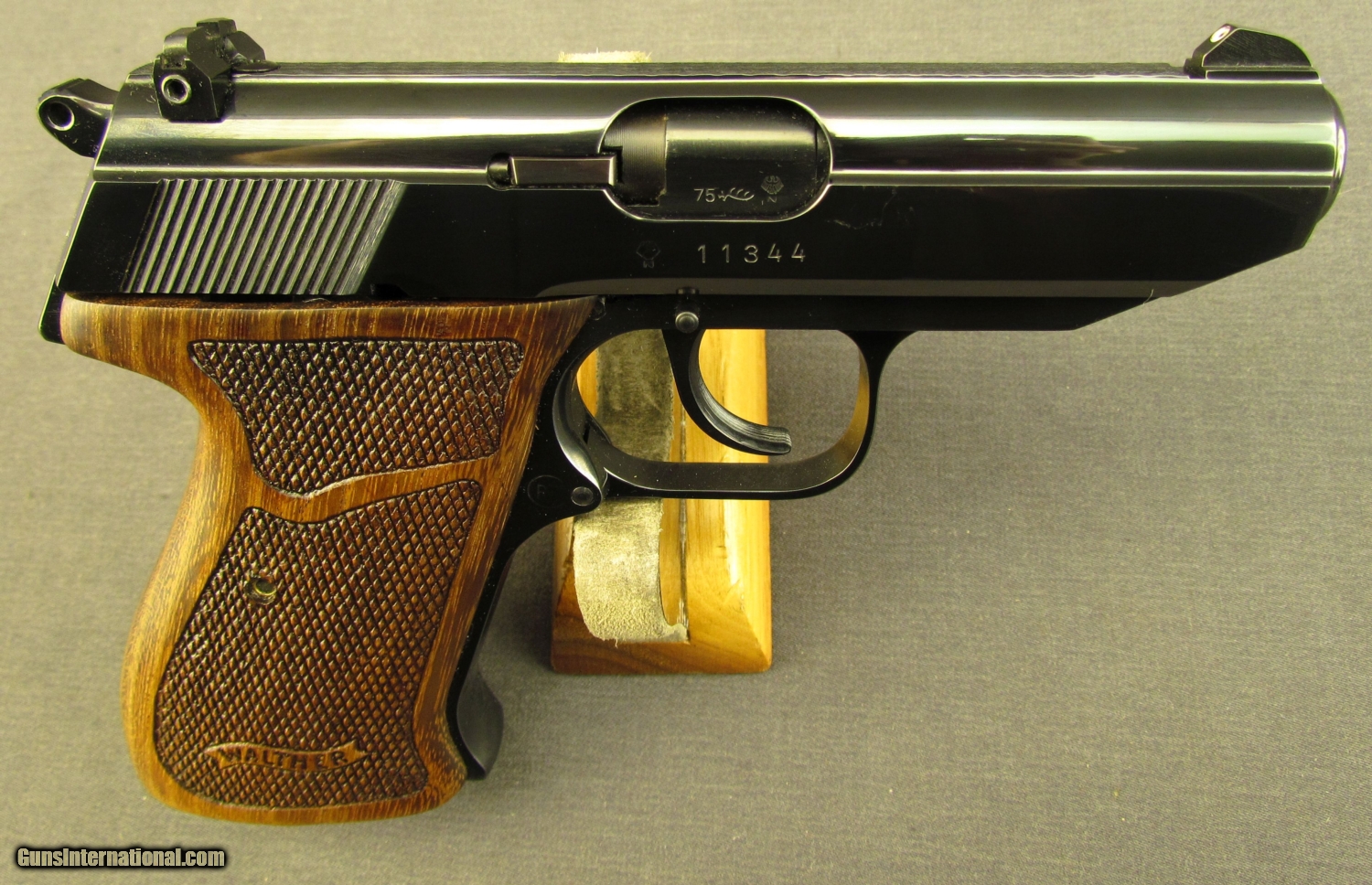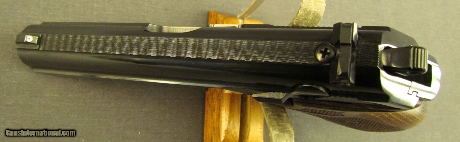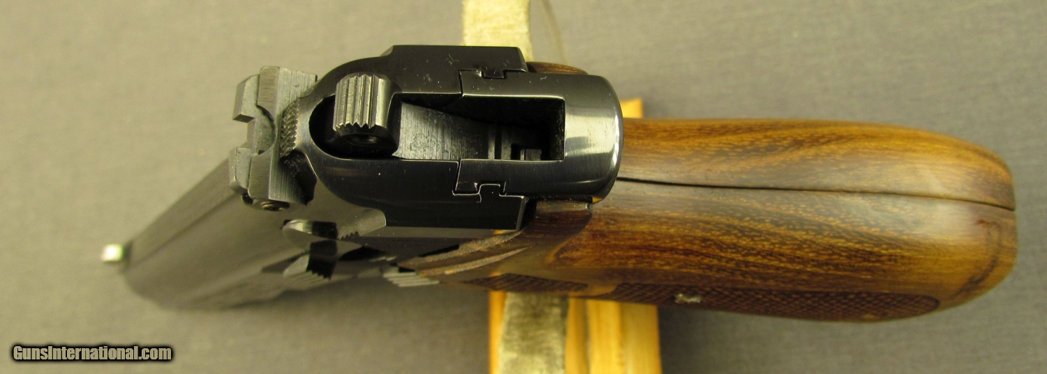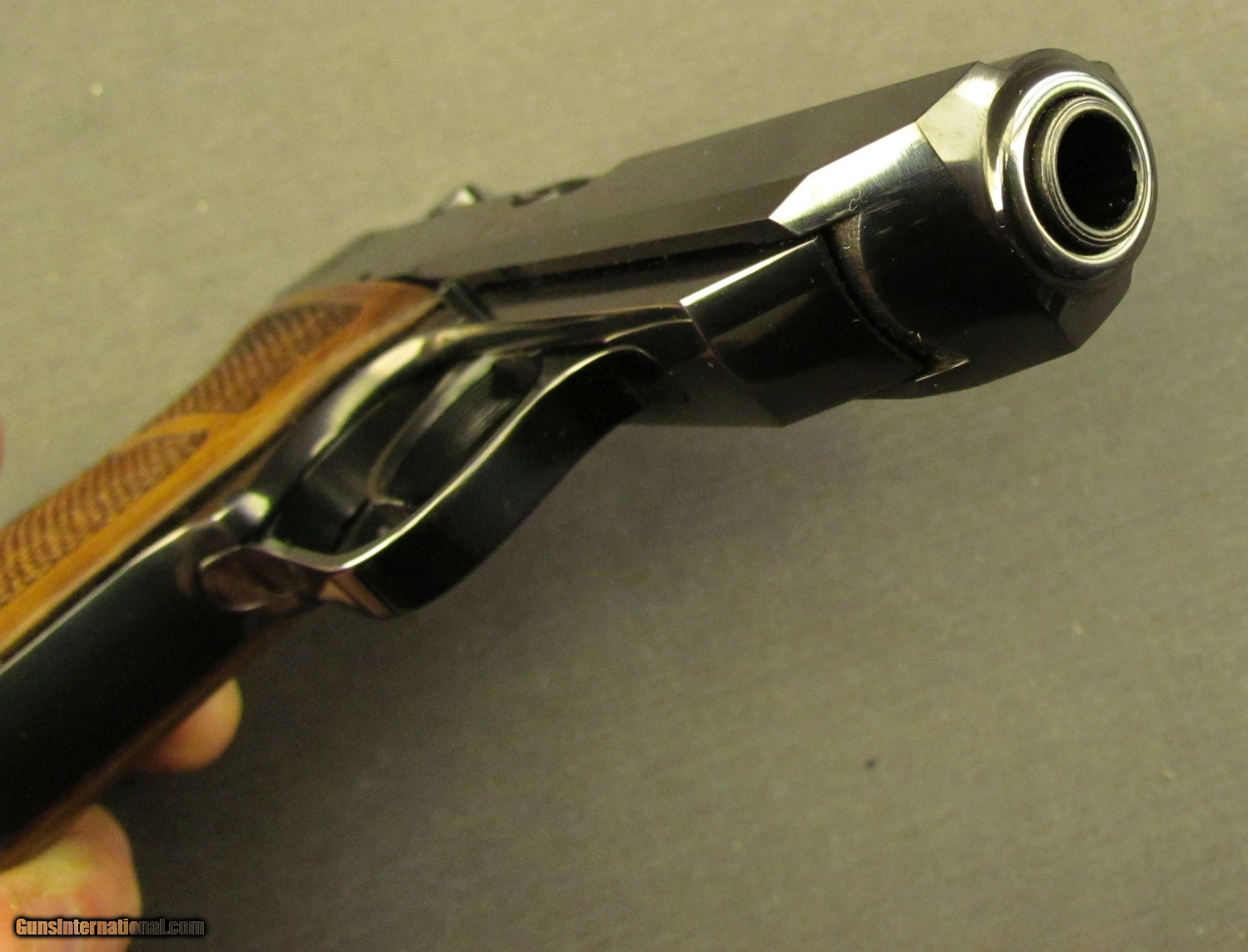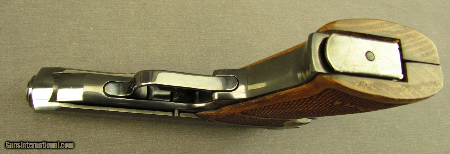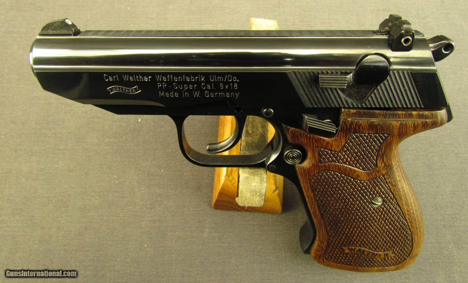 Description: Serial #11344, 9mm Ultra (9x18mm), 3 1/2” barrel with an excellent, bright bore. This West German-made pistol has 98-99% of the original high lustre blue remaining with some very faint surface scratches along the lower edge of the slide on the left side and just ahead of the ejection port on the right. The pistol is outfitted with excellent Walther banner Marschal grips and is housed in its original black plastic Walther case with two magazines. The 9mm Ultra was developed for European police agencies as a more powerful alternative to the .380 ACP/9mm Kurz pistols then in common use. The muzzle energy and velocity of the Ultra is closer to the 9mm Makarov, but the round never gained much popularity. This pistol is in excellent condition and would make a great addition to any collection. FFL SOLD Manufacturer: Walther Model: PP Super Serial Number: 11344 Caliber Info: 9mm Gauge Info: 9mm |