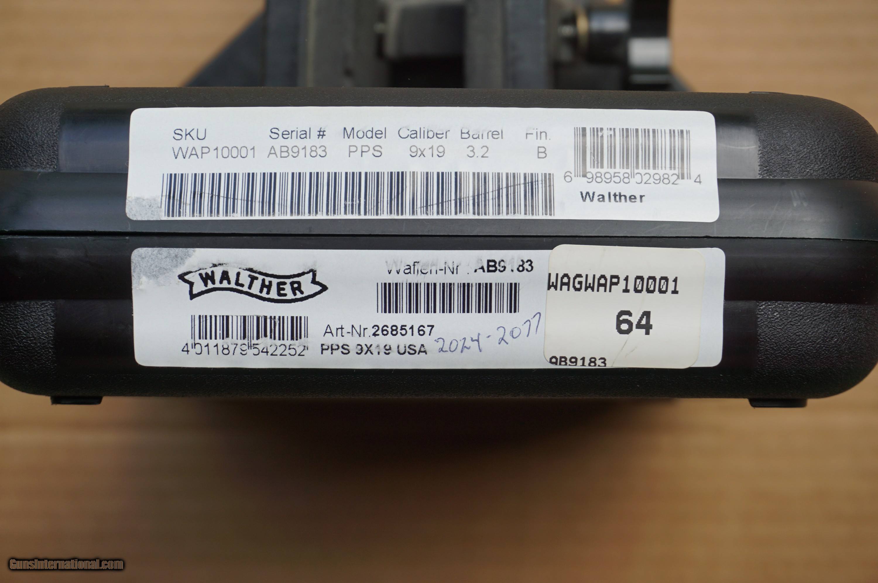Description: NIB Walther PPS 9MM, 3.2" barrel, 2 mags, case, all accessories as shown, No California sales. Buyer pays actual shipping. SOLD Handgun Caliber: 9x19mm Parabellum (9mm Luger, 9x19mm NATO) Manufacturer: Walther Model: PPS Serial Number: AB9183 Barrel Length: 3.2 Condition: NIB |