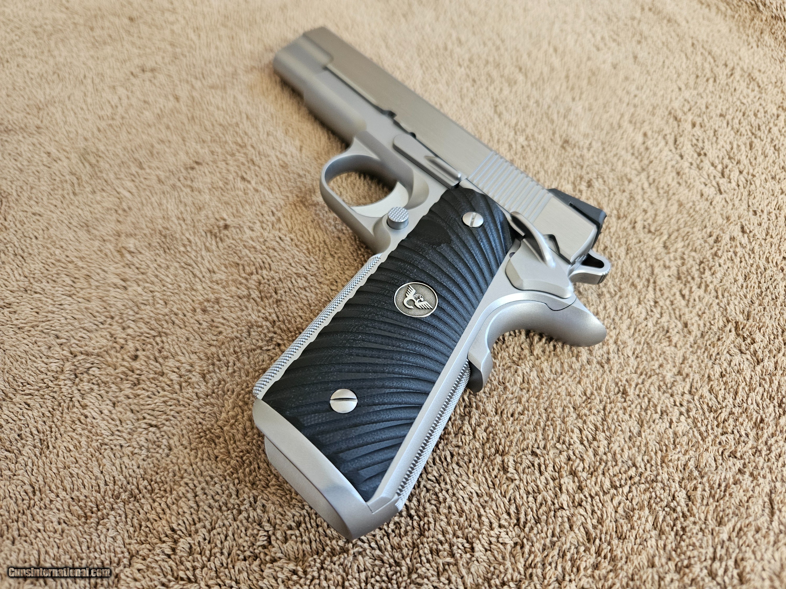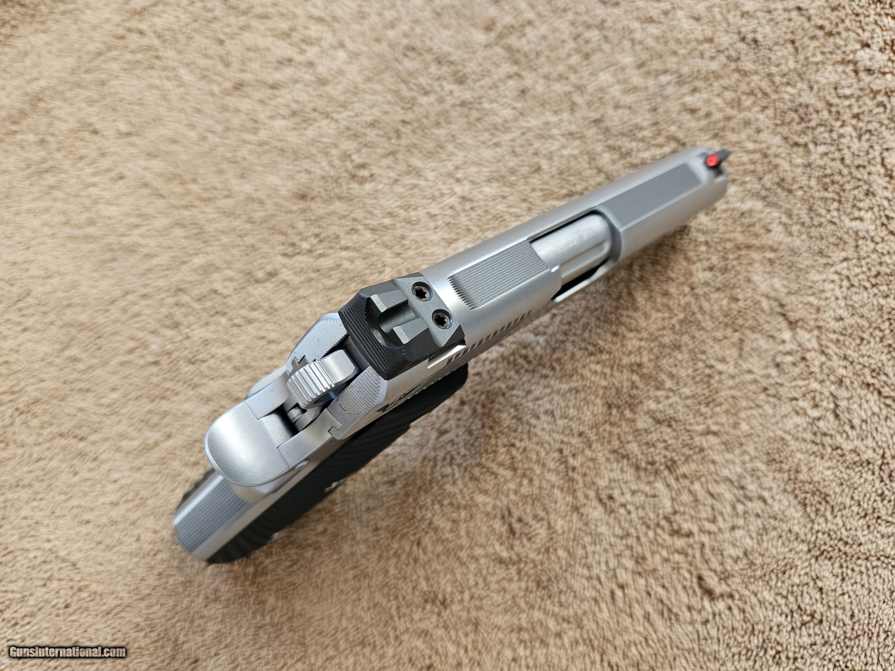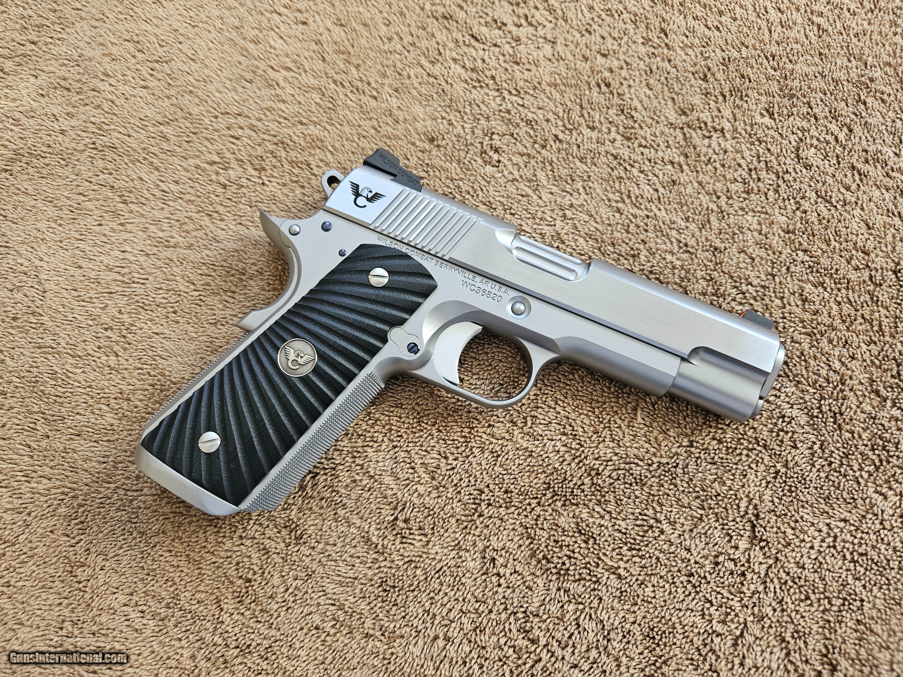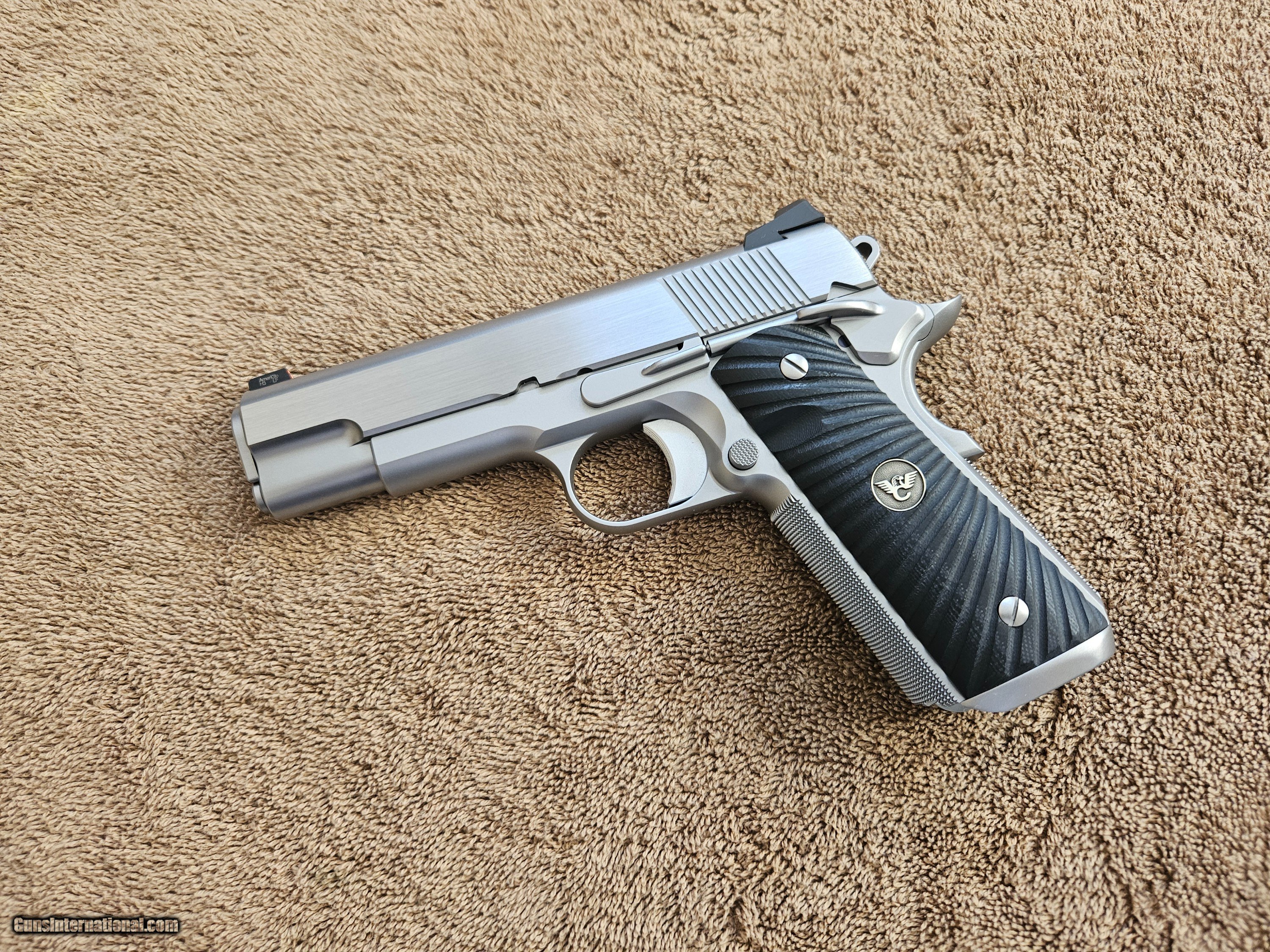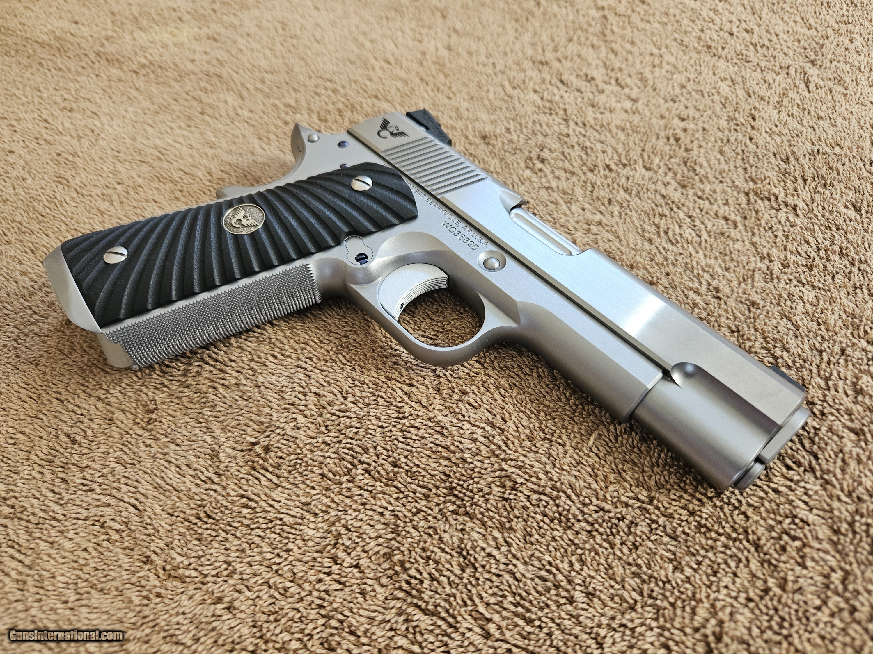 Description: For your consideration is my Wilson Combat Hackathorn Special Commander 9mm in stainless steel. The pistol is unfired after leaving Wilson and comes with all of the standard features. The exception is that the slide has no markings other than the Wilson logo. The hammer / sear pin and magazine catch lock are blued. It will come with everything shown. Shipping will be FREE to the lower 48 from my FFL to yours fully insured. No trades please. All forms of payment must clear before shipping. This is my first listing on Guns International but I have been selling on other sites for many years with 100% positive feedback. I can provide you with my user name on each site for verification upon request. I appreciate you taking the time to look at my listing. SOLD Handgun Caliber: 9x19mm Parabellum (9mm Luger, 9x19mm NATO) |