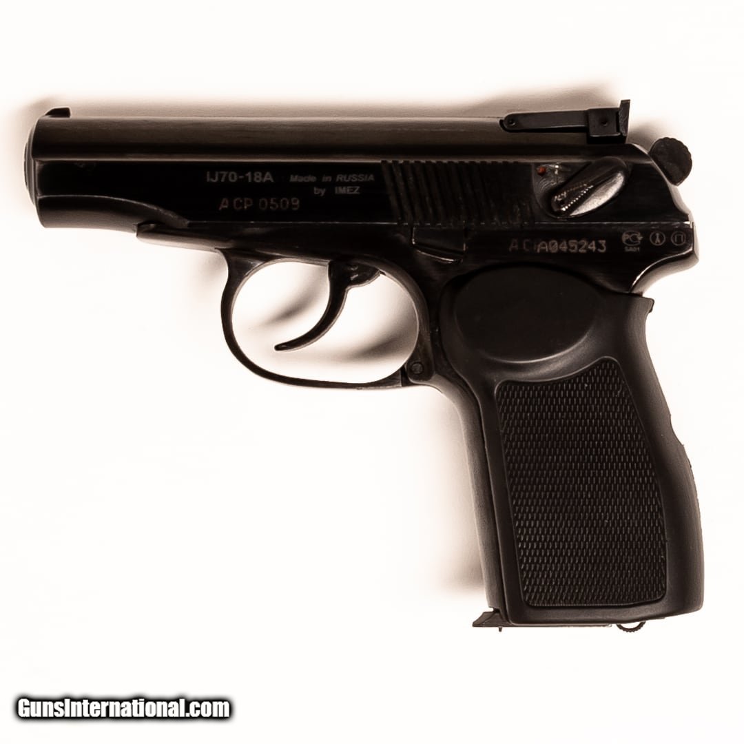 Description: Guns Listing ID: 628632 The IJ70-18A (Made in Russia by IMEZ) is a Russian \"Makarov\" chambered in 9X18 Makarov. This is one of the most iconic weapons of the Cold War and served the Soviets well for decades. This IJ70-18A comes with two magazines. Serial number: A045243 SOLD Manufacturer: BAIKAL Model: IJ70-18A Caliber Info: 9X18MM MAKAROV Condition: Used - Certified Barrels: 3.50 barrel Finish: BLACK |