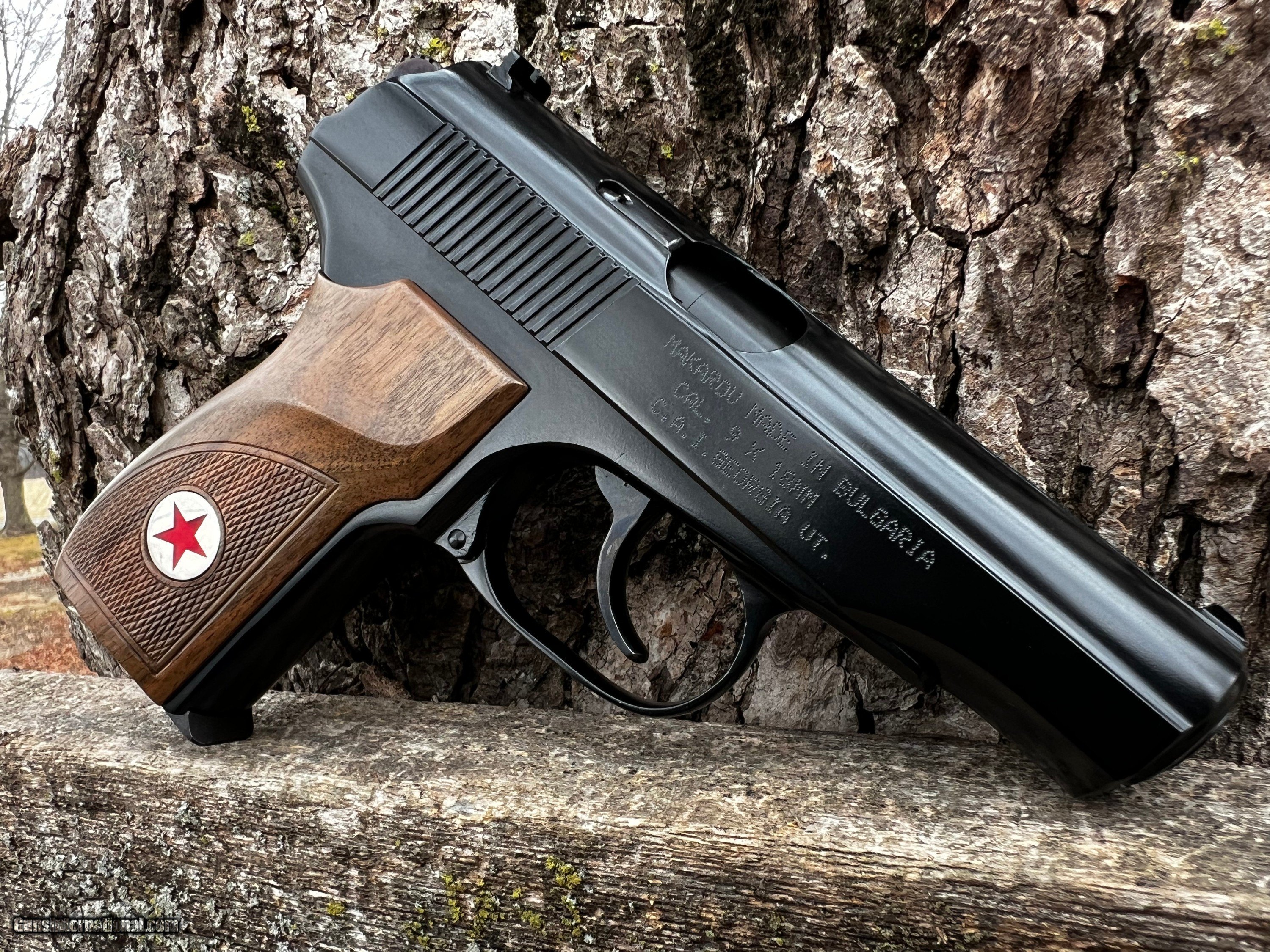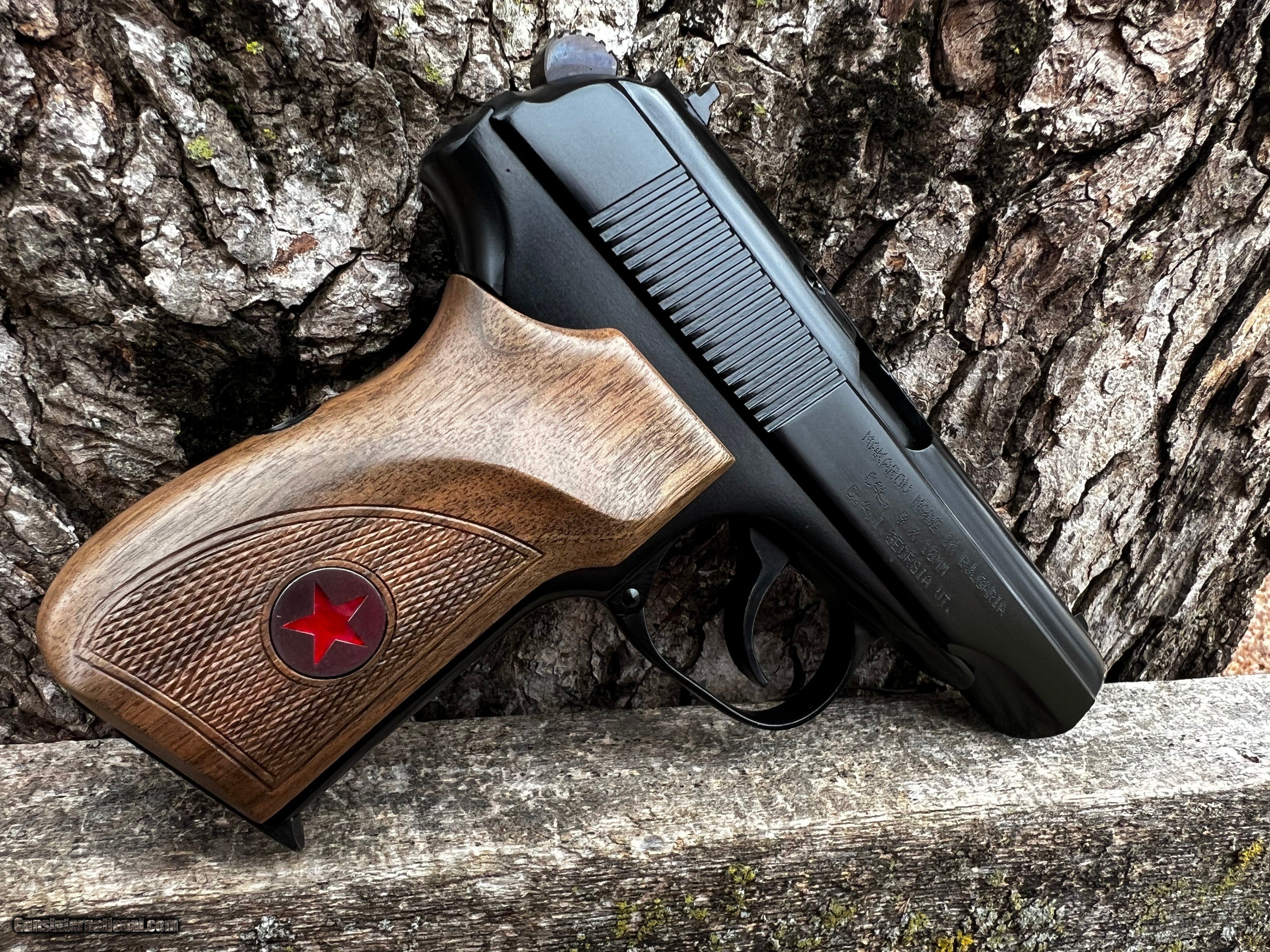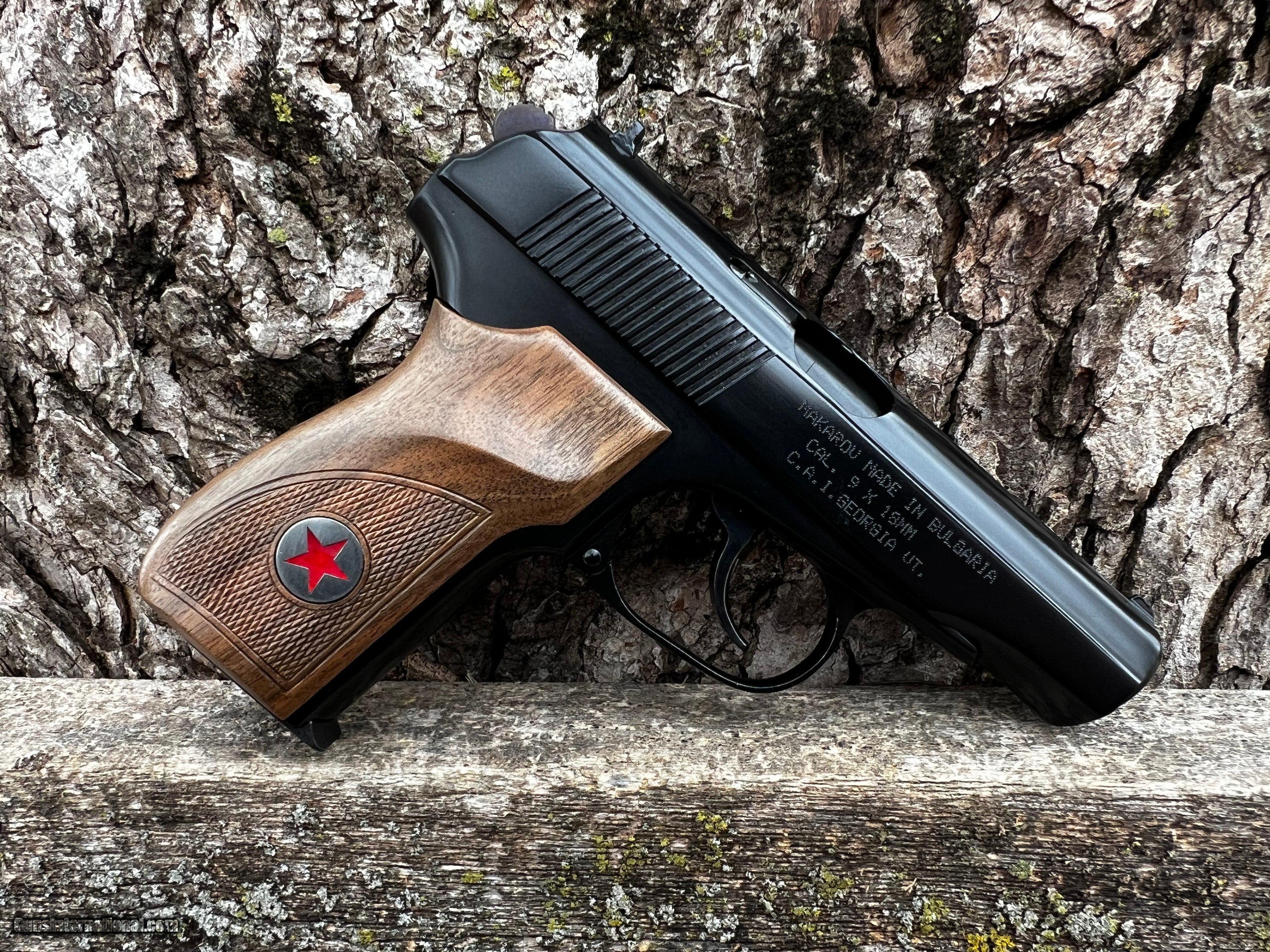 Description: From the BHCustomShop Service Dept. BHAdvanced Makarov from the BHCustomShop Service Dept / BHSpringSolutions LLC Frame and Slide Refinished in BHPerformance BLACK. All components fully inspected. BHSpringSolutions' Optimized Makarov Springs installed throughout. BHSpringSolutions' BHMastersGrips for Makarov (Red Star Version) - A BHSpringSolutions Exclusive, 1-Piece Walnut that improves everything about the "feel in the hand" of the Makarov design. The surface area of the grip contact with the palm of the hand is increased compared to OEM Makarov grips that produces a "softer shooting" impulse in the shooting hand because the forces are distributed across a larger area. The Contoured Grip design enhances grip hold and facilitates faster / correct hand placment on the grip during acquisition from a holster. Includes 2 Magazines and Original Leather Holster. Fully Test Fired exhibiting no malfunctions or irregularities. From the World's Hi-Power Specialists! BHSpringSolutions LLC / BHSpringSolutions / BHCustomShop Service Dept. SOLD Handgun Caliber: 9x18mm Makarov |