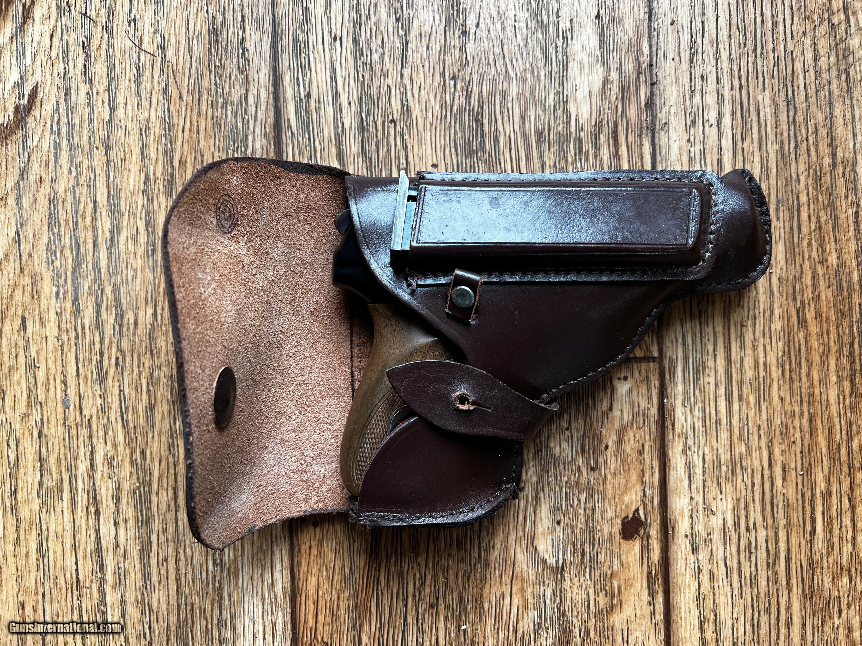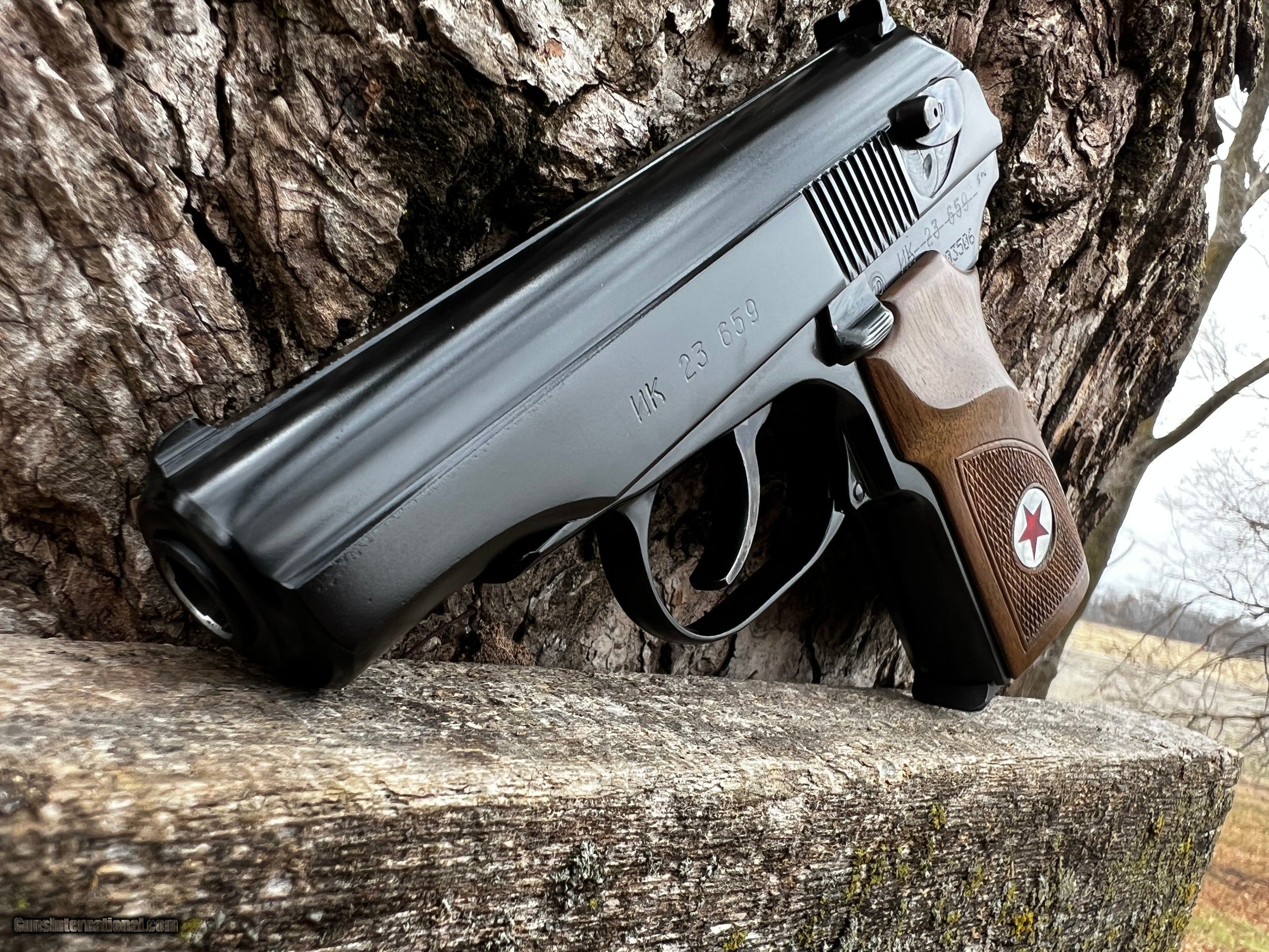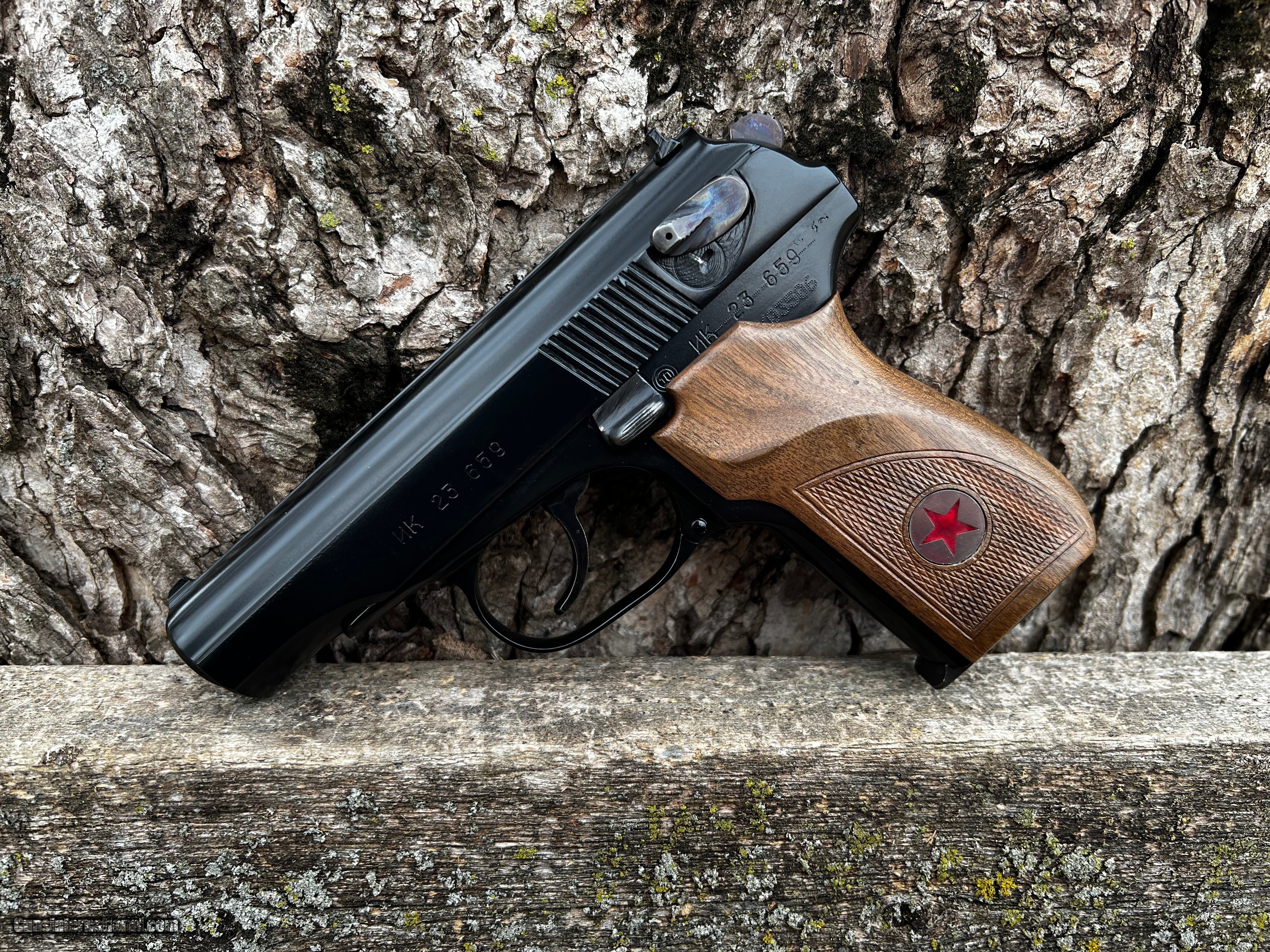 Description: From the BHCustomShop Service Dept. BHAdvanced Makarov from the BHCustomShop Service Dept / BHSpringSolutions LLC Frame and Slide Refinished in BHPerformance BLACK. All components fully inspected. BHSpringSolutions' Optimized Makarov Springs installed throughout. BHSpringSolutions' BHMastersGrips for Makarov (Red Star Version) - A BHSpringSolutions Exclusive, 1-Piece Walnut that improves everything about the "feel in the hand" of the Makarov design. The surface area of the grip contact with the palm of the hand is increased compared to OEM Makarov grips that produces a "softer shooting" impulse in the shooting hand because the forces are distributed across a larger area. The Contoured Grip design enhances grip hold and facilitates faster / correct hand placment on the grip during acquisition from a holster. Includes 2 Magazines and Original Leather Holster. Fully Test Fired exhibiting no malfunctions or irregularities. From the World's Hi-Power Specialists! BHSpringSolutions LLC / BHSpringSolutions / BHCustomShop Service Dept. SOLD Handgun Caliber: 9x18mm Makarov |
