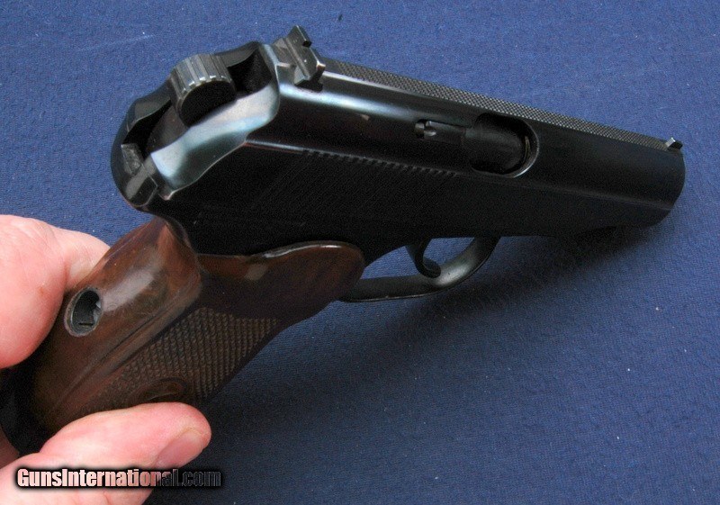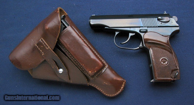 Description: Very nice East German Makarov rig. Both magazines are electro pencil numbered and do not match the gun. Excellent overall, excellent bore, nice finish and grips. Holster excellent as well and unmarked. Nice rig. $35 shipping to the lower 48, 3% surcharge for using a CC. If you choose to pay with a personal check, we will hold the item for up to 10 days to make sure that it clears. Please expedite such pymts as we will hold an item on your word for 5 days. SOLD Handgun Caliber: 9x18mm Makarov |