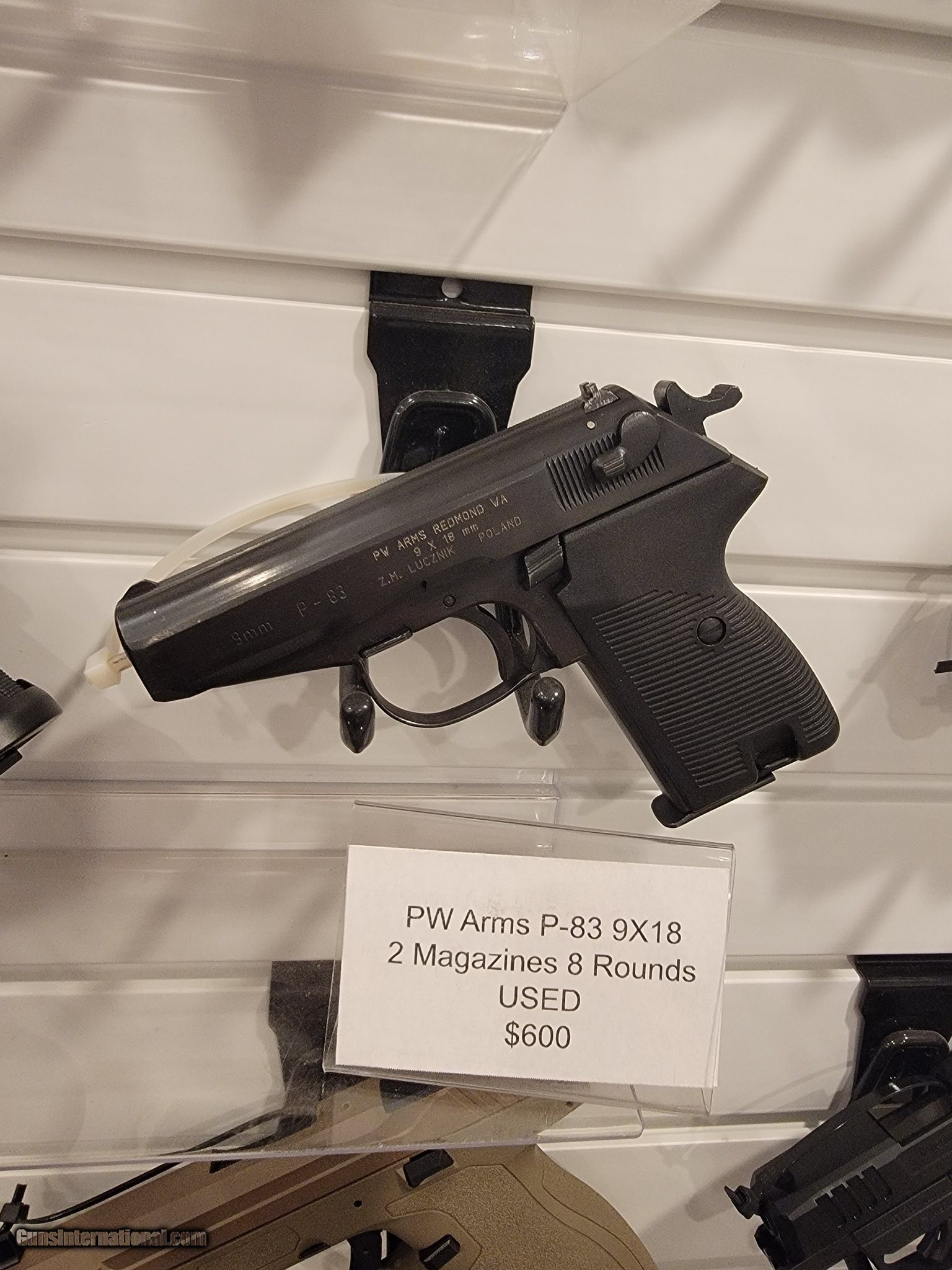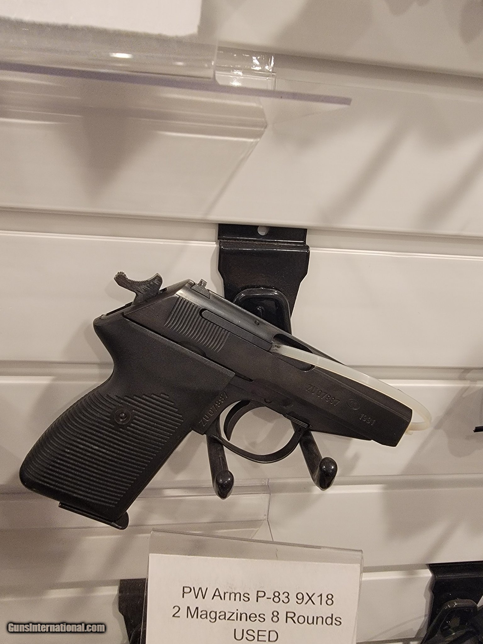 Description: Guns Listing ID: 602525 2 MAGAZINE SOFT CASE Manufacturer: PW ARMS Model: P-83 Caliber Info: 9x18MM MAKAROV Condition: Used - Non-Certified Barrels: 4.5" BARREL Action: SEMI AUTOMATIC Finish: black Price: $600.99 Contact Seller |